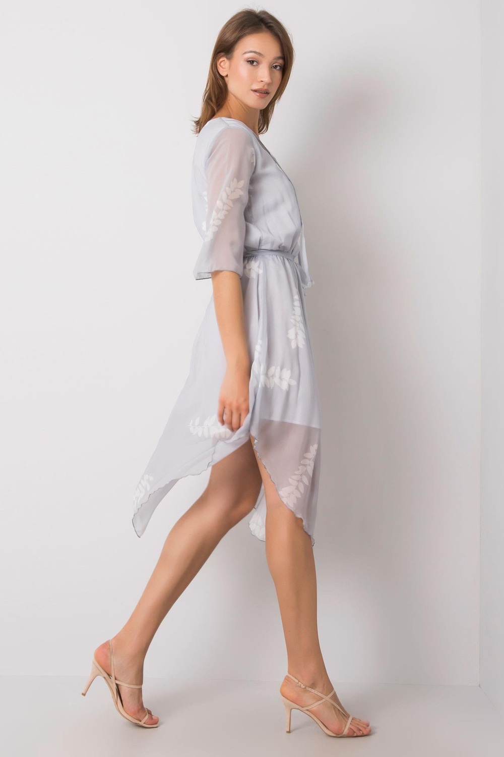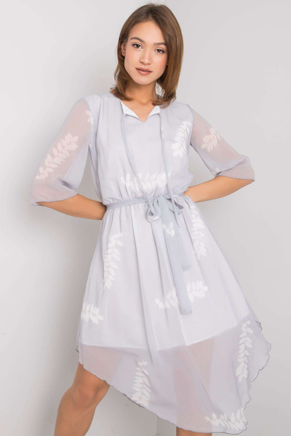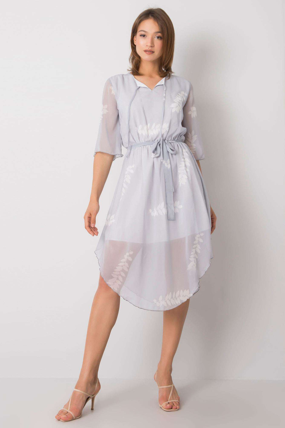 Yareli pilka suknelė. priedai: dirželio medžiagasudėtis: 65% medvilnė, 30% poliesteris, 5% elastanas skalbimo būdas: skalbimas mašinoje 30°C Modelis dėvi 36 dydį. Modelio išmatavimai: aukštis 180 cm, krūtinė 89 cm, juosmuo 63 cm, klubai 93 cm . Dre