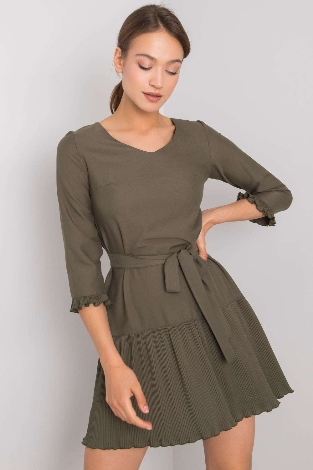 36 dydžio suknelės matmenys išmatuoti plokščiai: plotis po pažastimis - 44 cm, bendras ilgis - 88 cm, rankovių ilgis - 47 cm