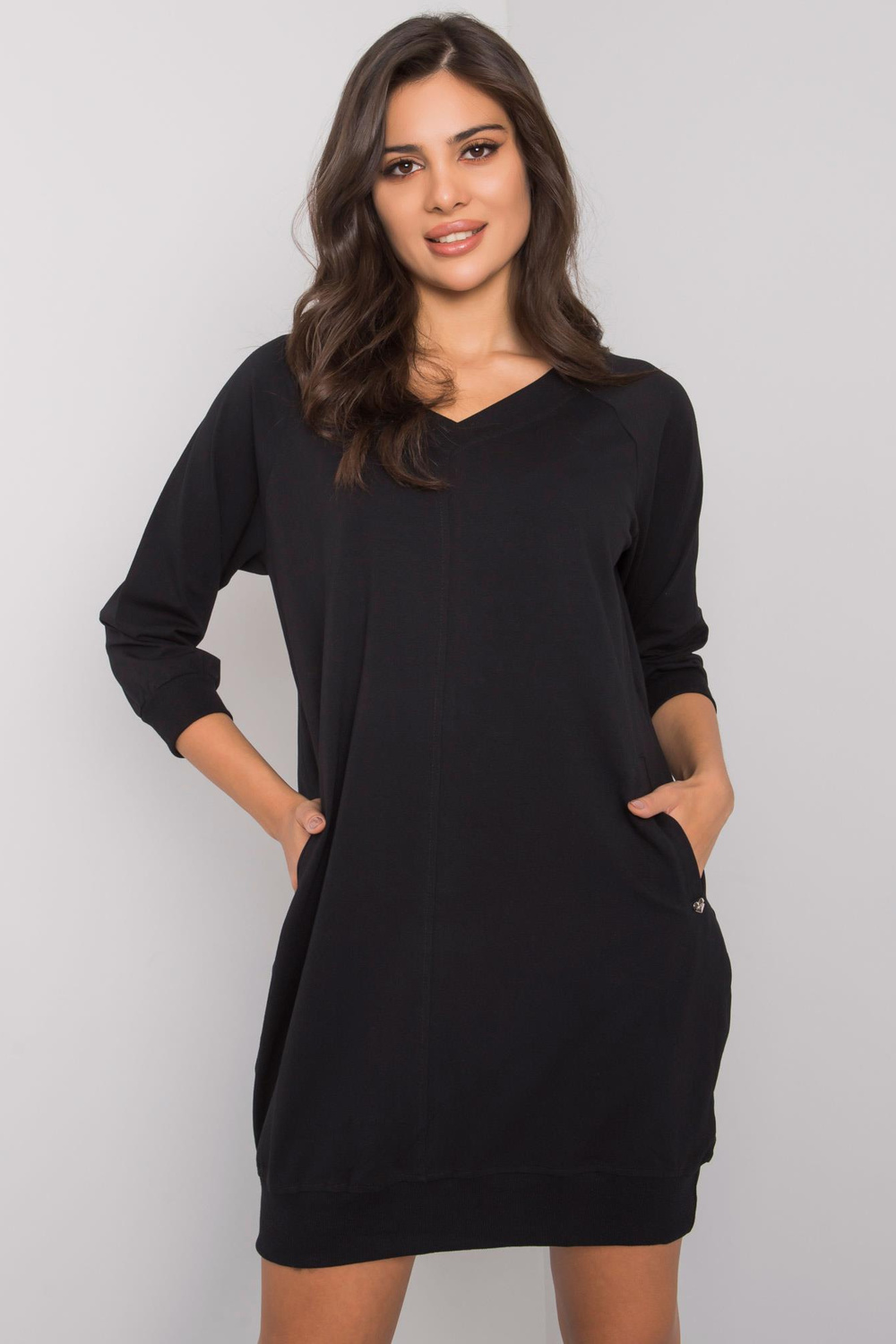 Paprasta juoda suknelė iš Salerno medvilnės.