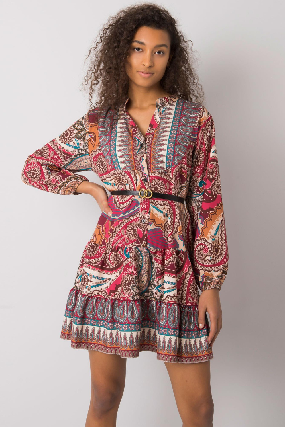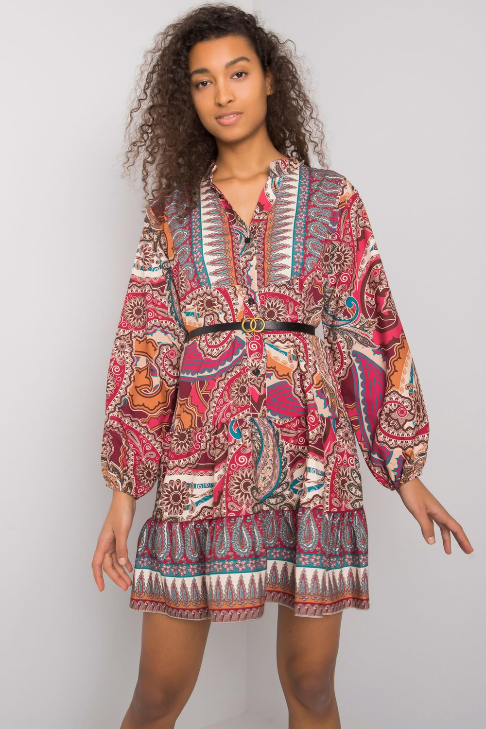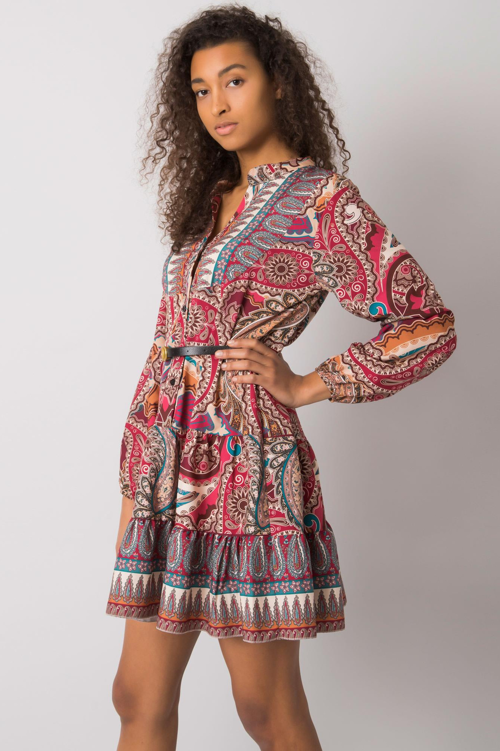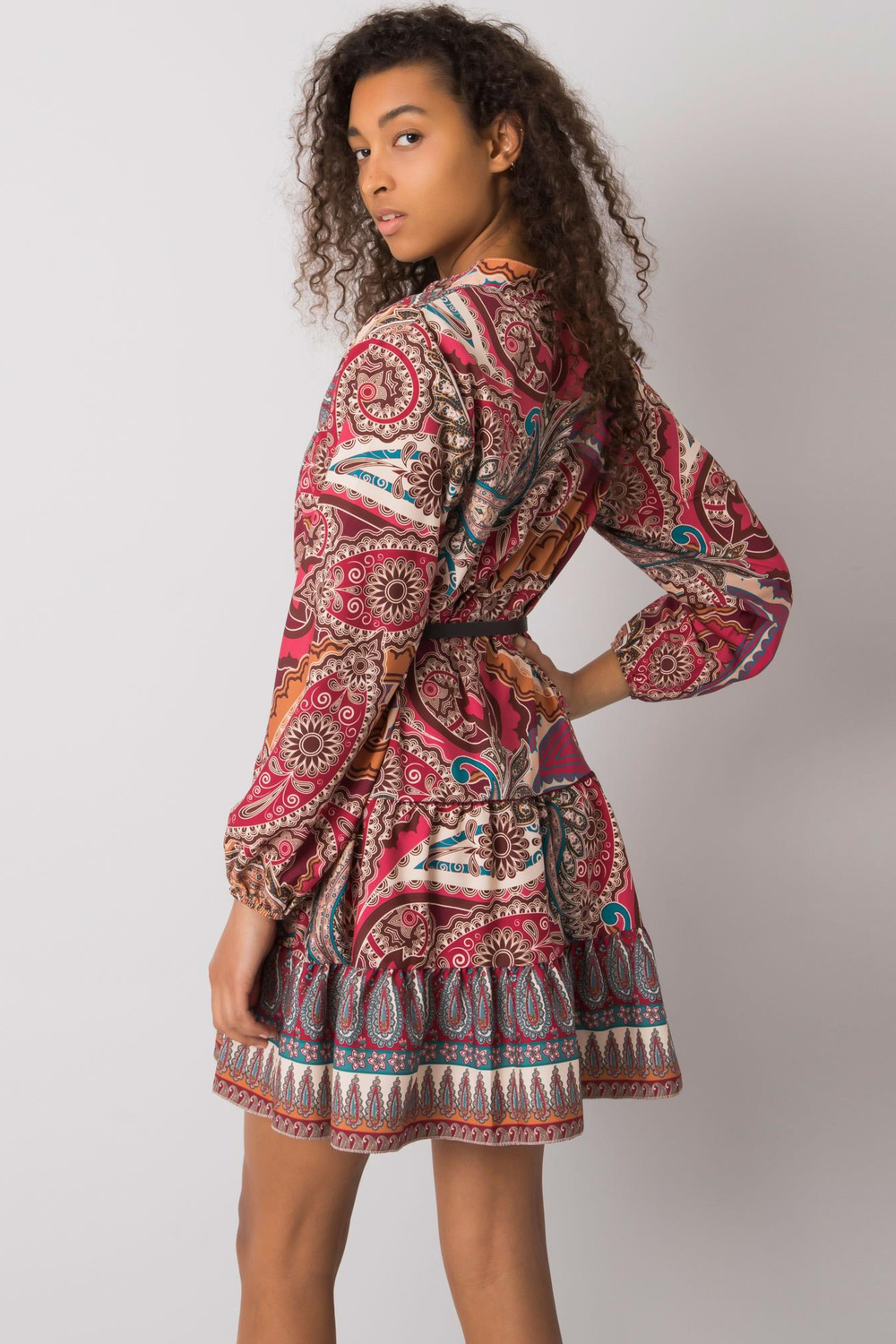 Burgundijos spalvos suknelė su „Milah“ raštu.