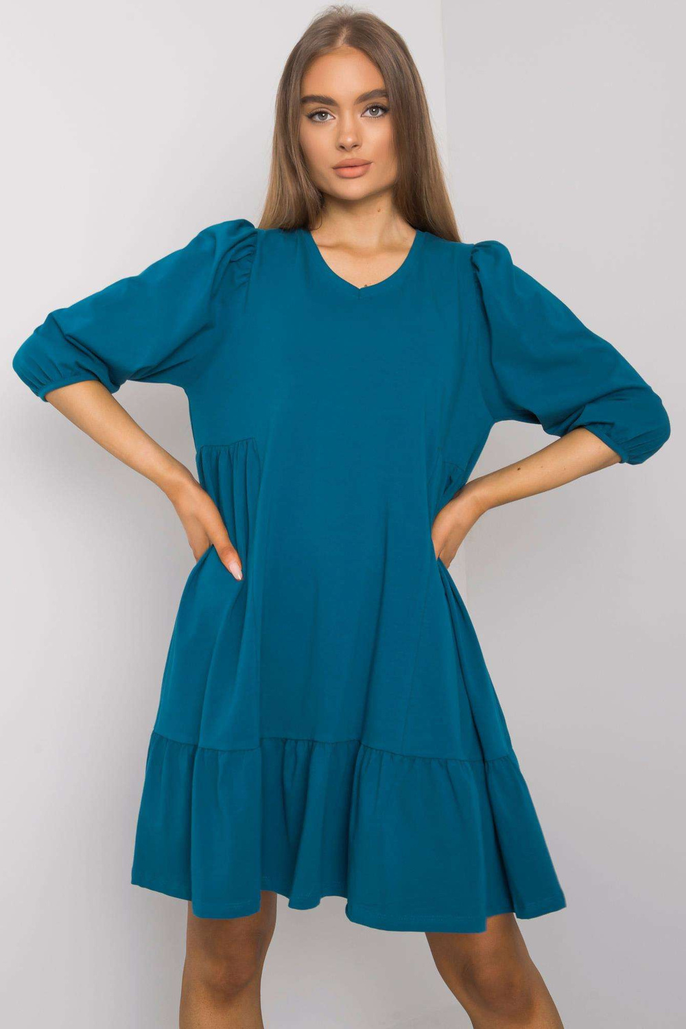 < p>Modelis dėvi S/M dydį. Modelio matmenys: aukštis 174 cm, krūtinė 83 cm, juosmuo 62 cm, klubai 96 cm.Suknelės matmenys S/M dydžiu, matuojamas plokščias: plotis po pažastimis - 46 cm, bendras ilgis - 86 cm, rankovių ilgis - 37 cm