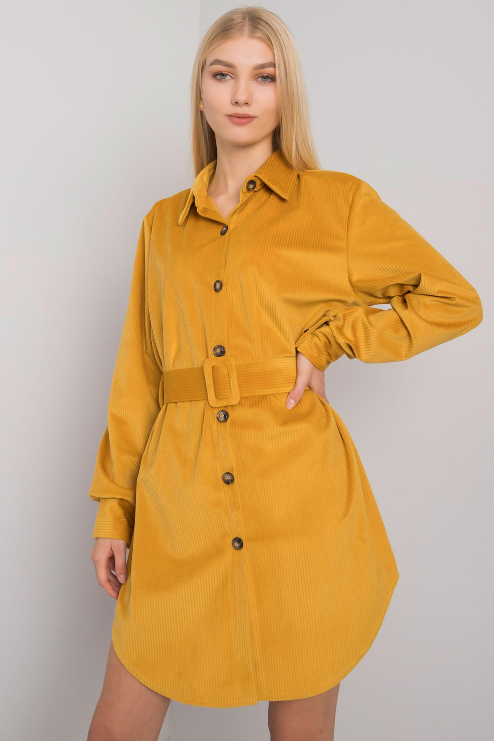 Vieno dydžio suknelės matmenys matuojami plokščiai: plotis po pažastimis - 48 cm, bendras ilgis - 82 cm, rankovių ilgis - 59 cm