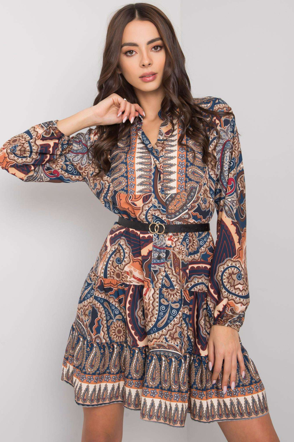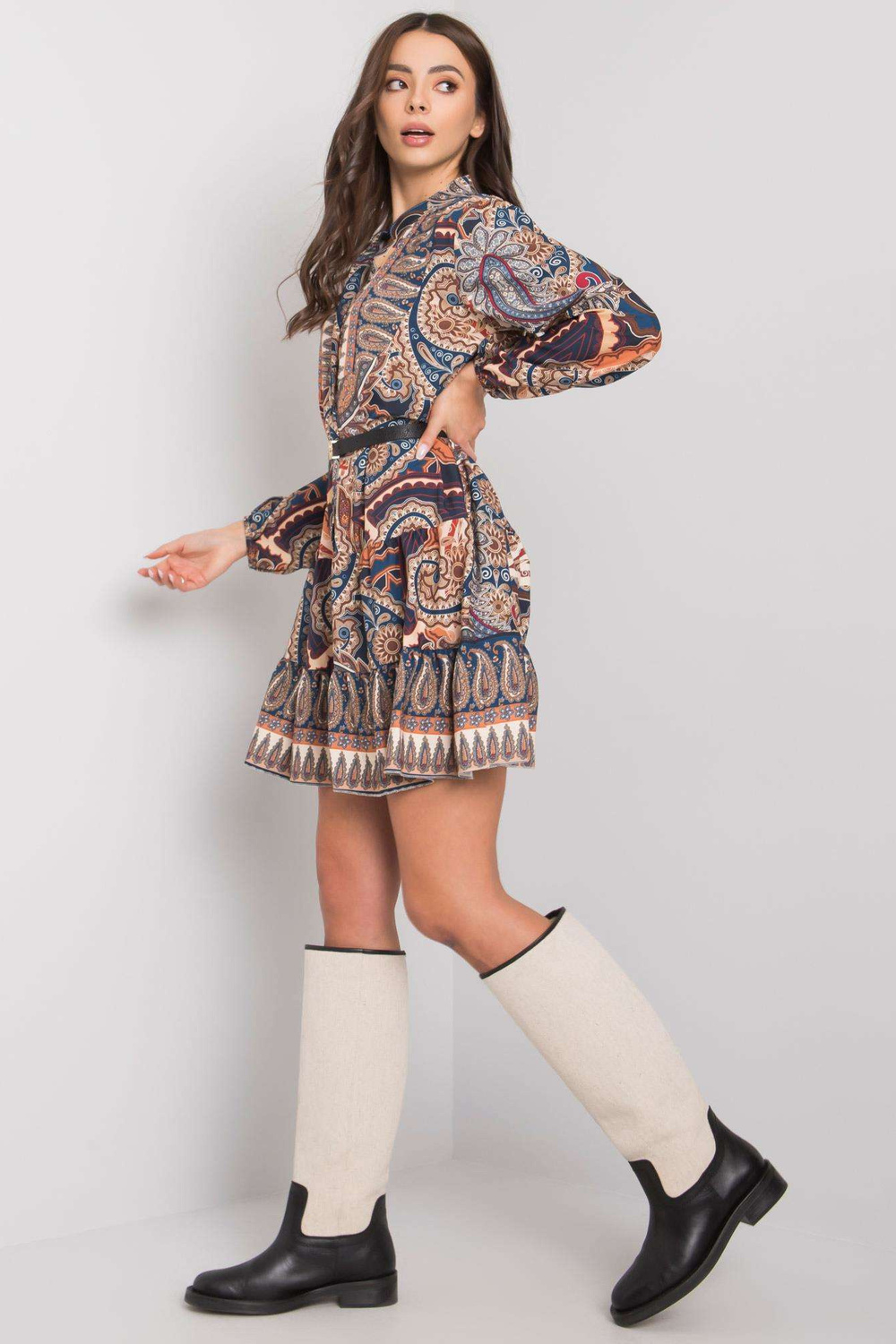 Tamsiai mėlyna suknelė su „Milah“ raštu.