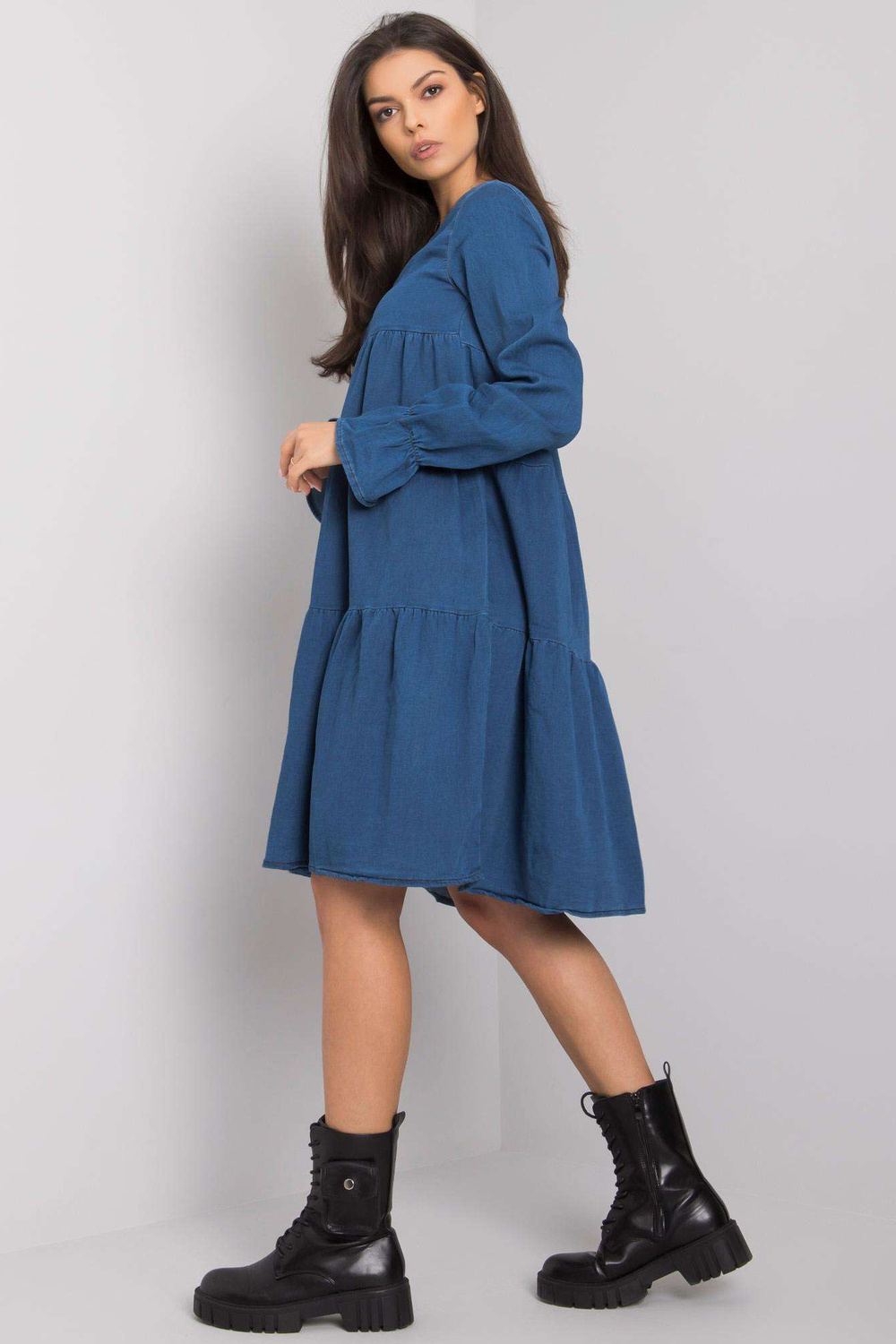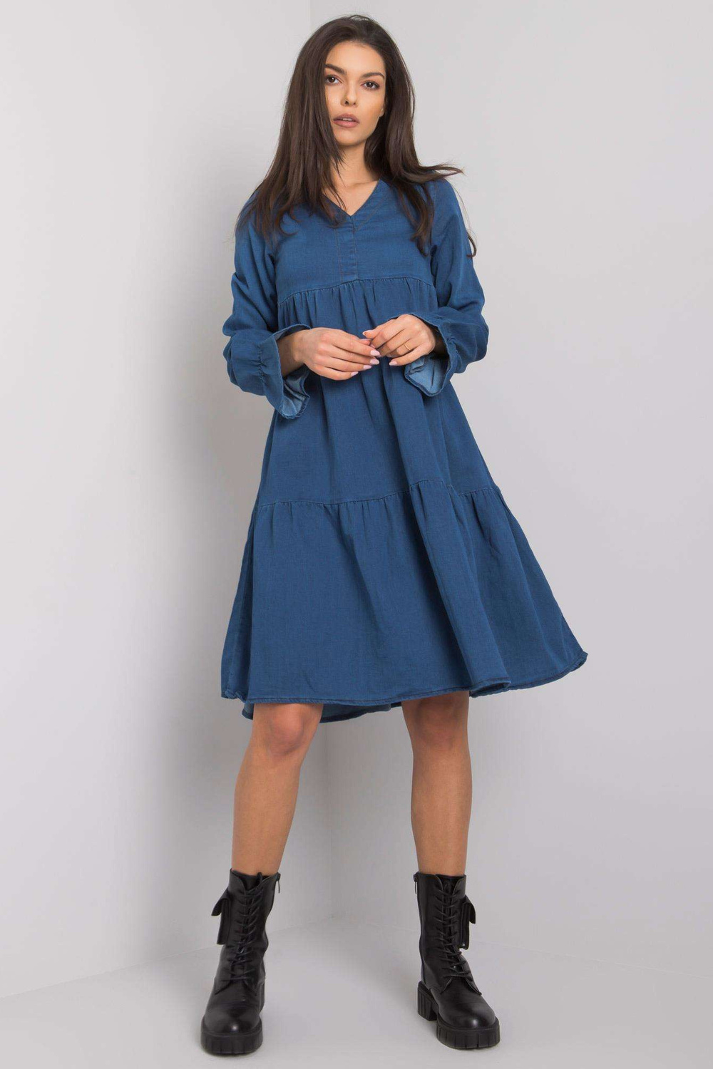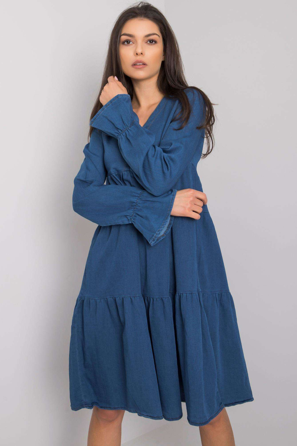 Tamsiai mėlyna moteriška suknelė su raukšlėmis Abbeville RUE PARIS.