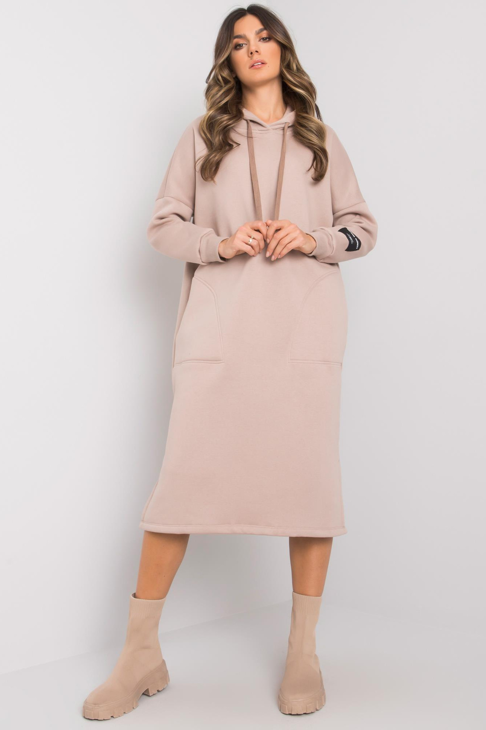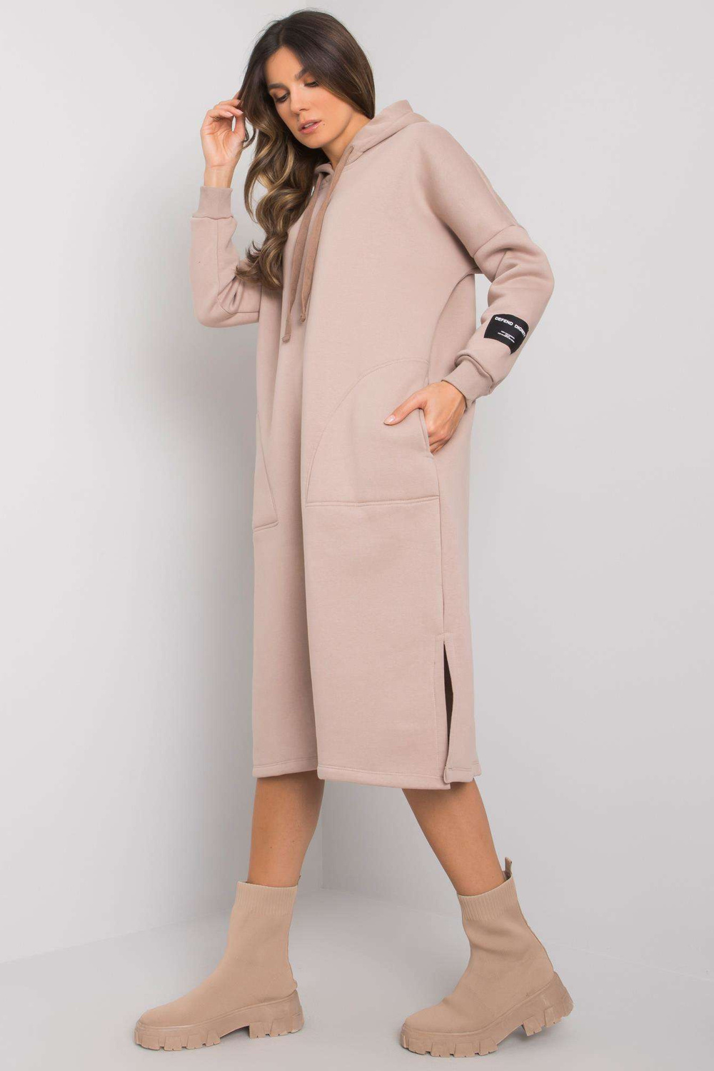 Tamsiai smėlio spalvos megztinis suknelė su kišenėmis Sheffield RUE PARIS