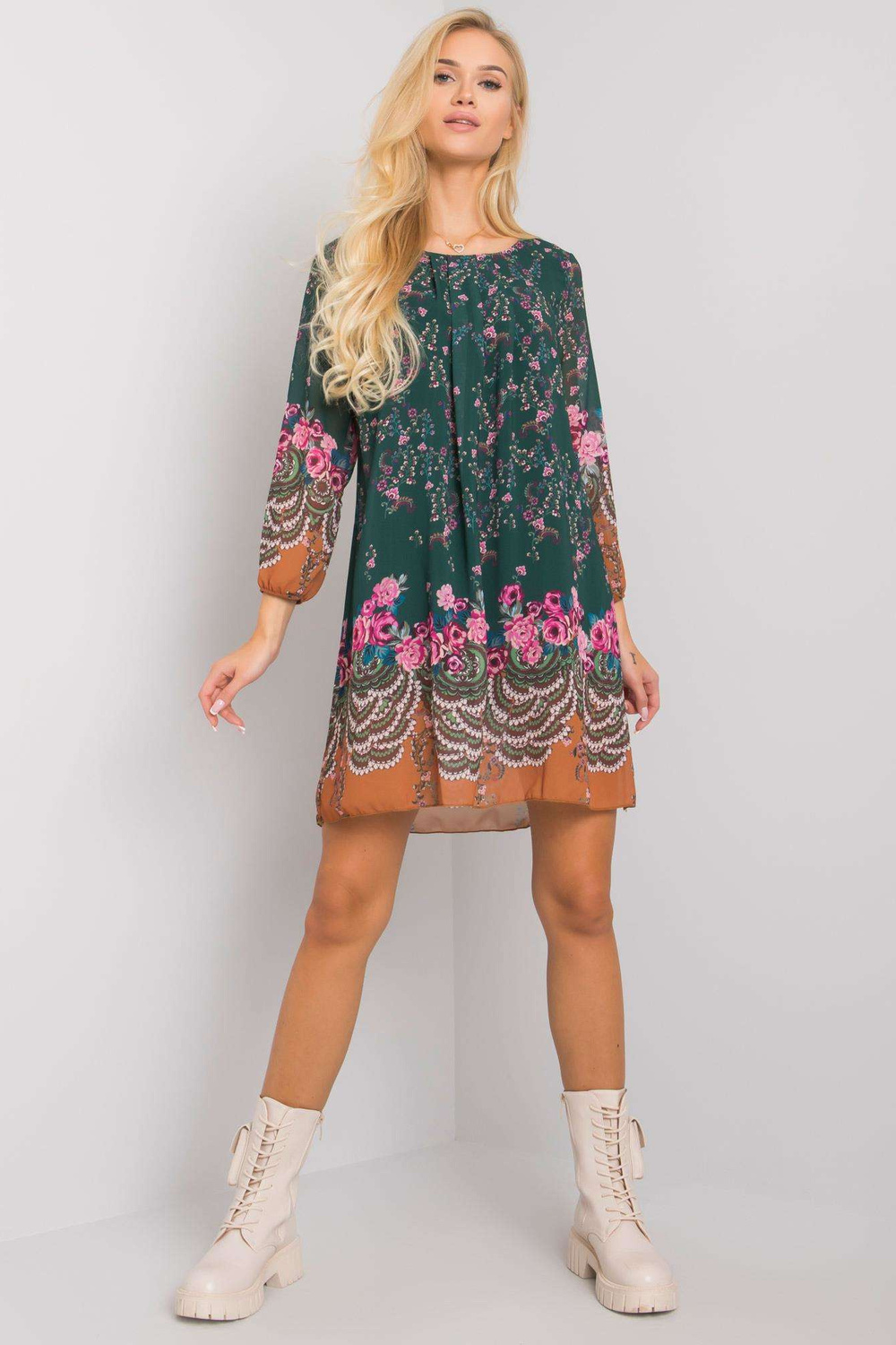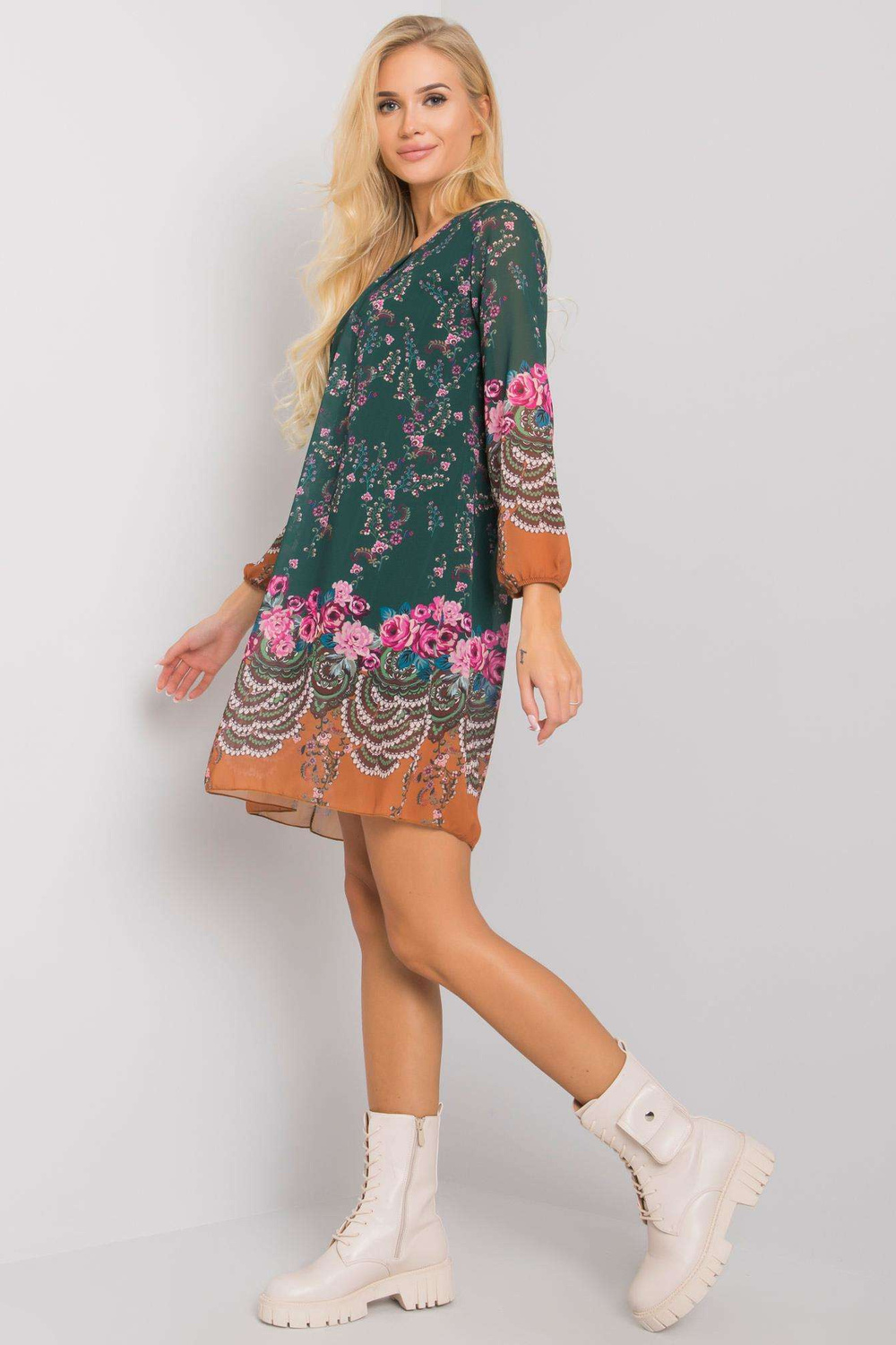 Žalia suknelė su Tristan OCH BELLA raštais.