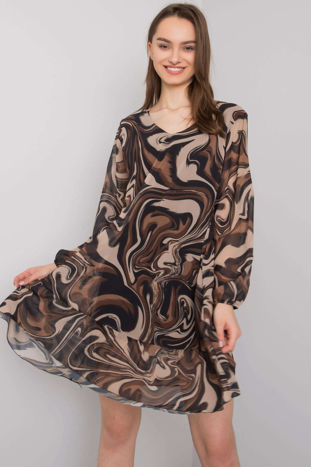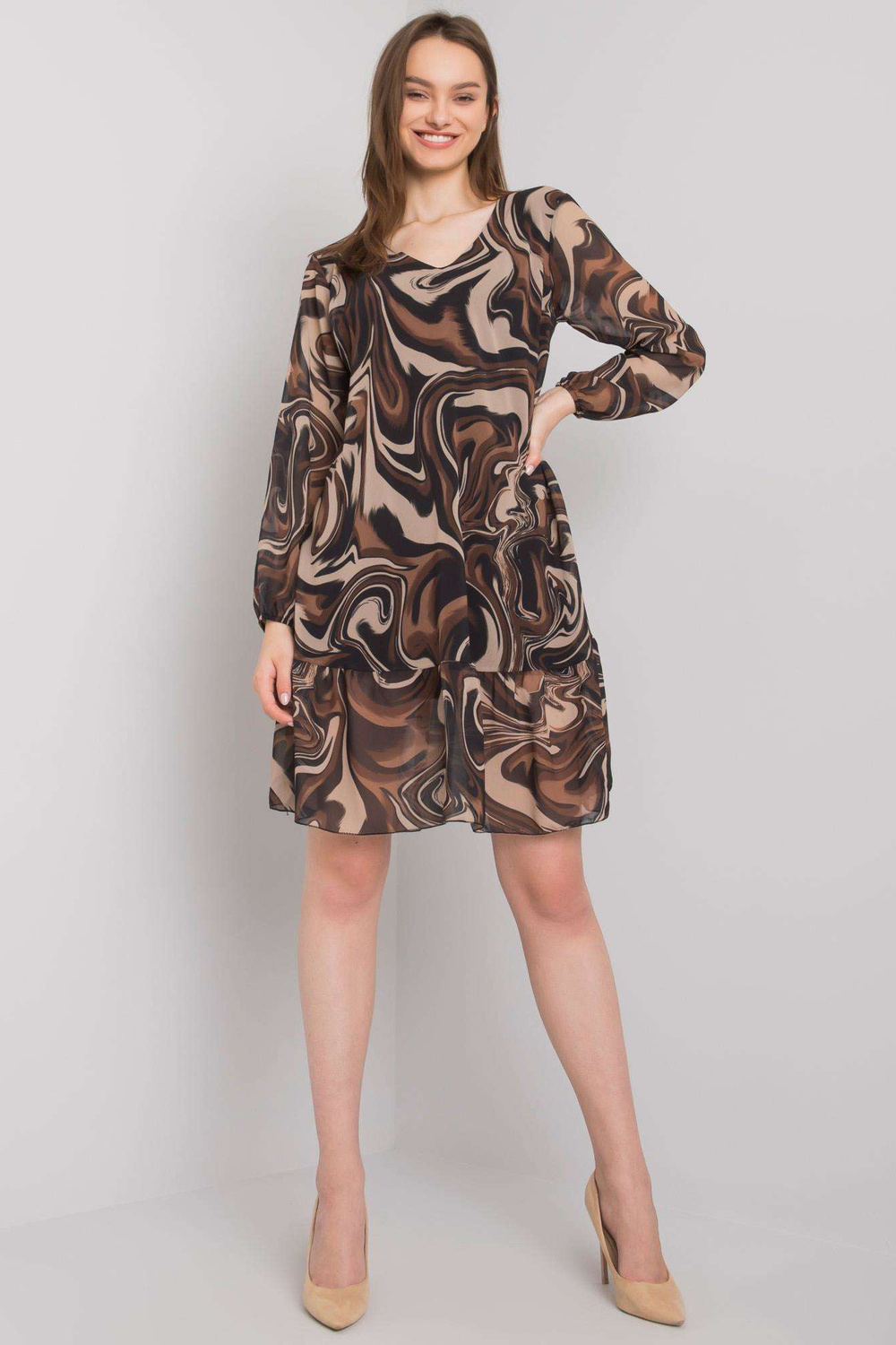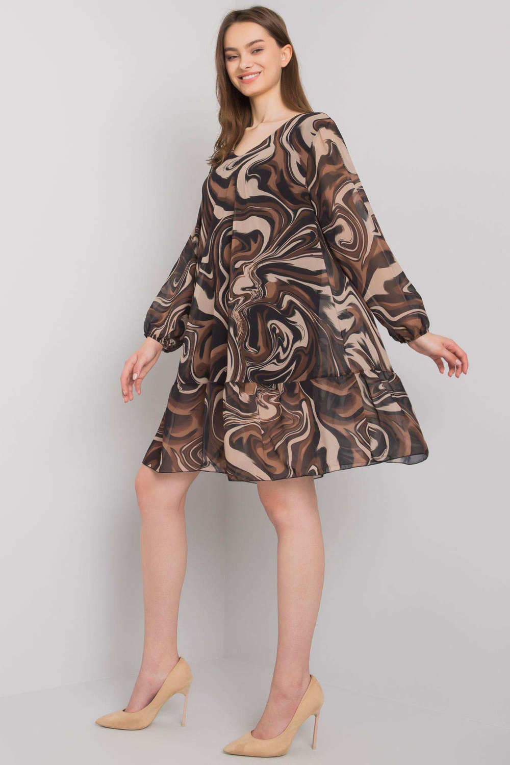 Vieno dydžio suknelės matmenys matuojami plokščiai: plotis po pažastimis - 49 cm, bendras ilgis - 93 cm, rankovių ilgis - 57 cm