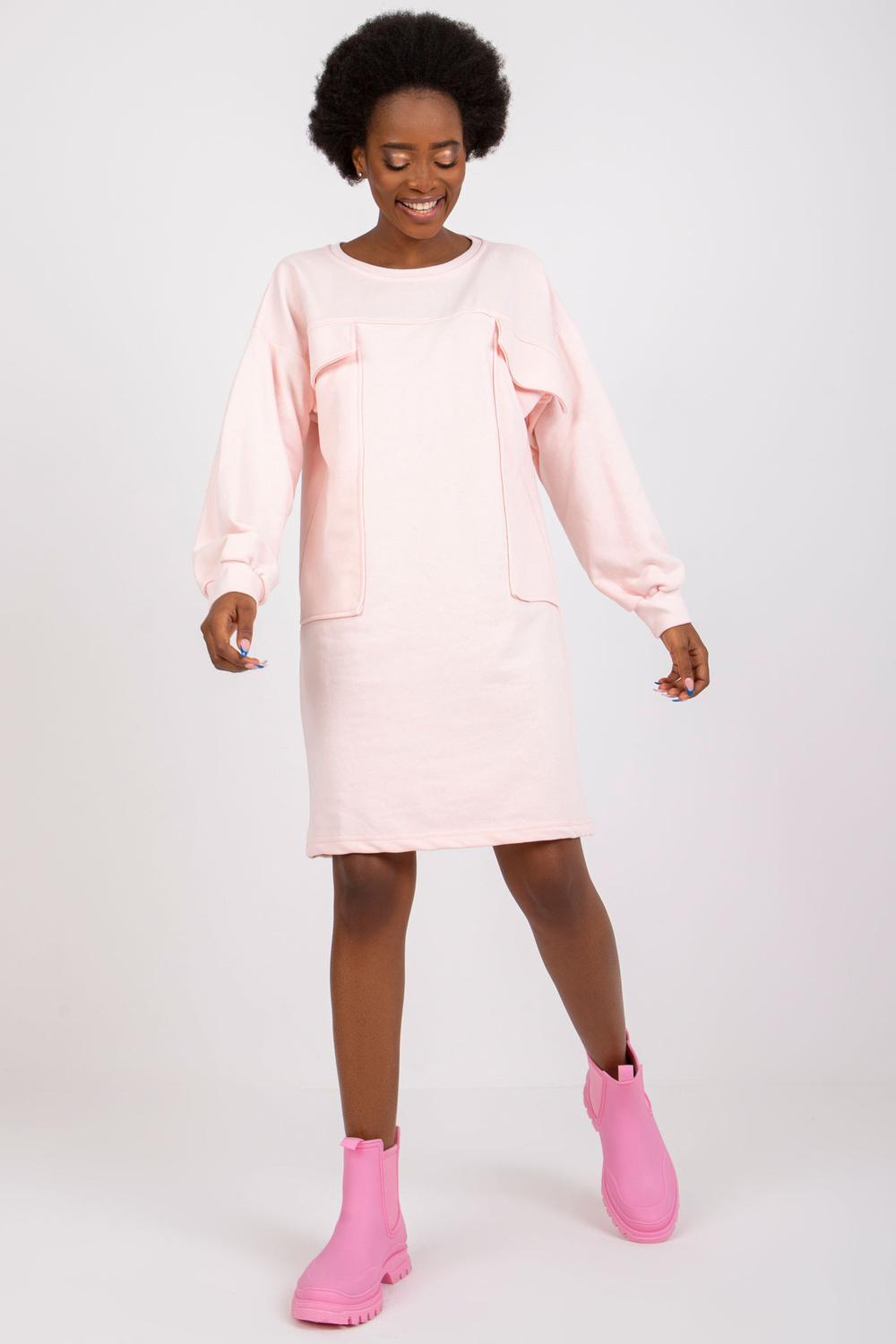 Šviesiai rožinė suknelė su Carrara kišenėmis.