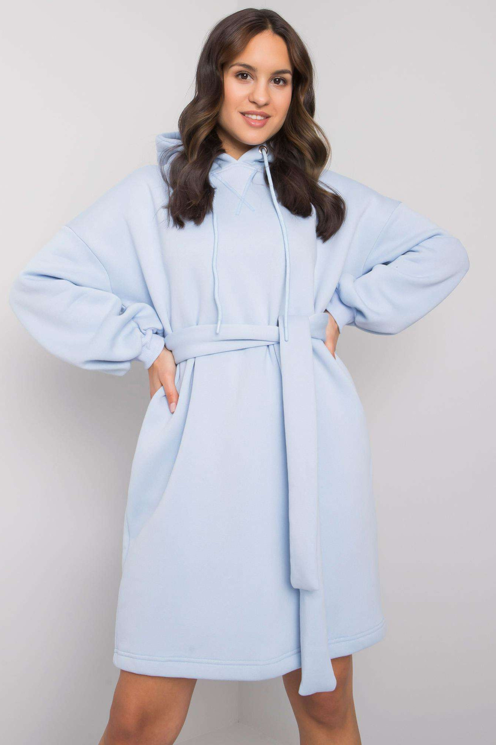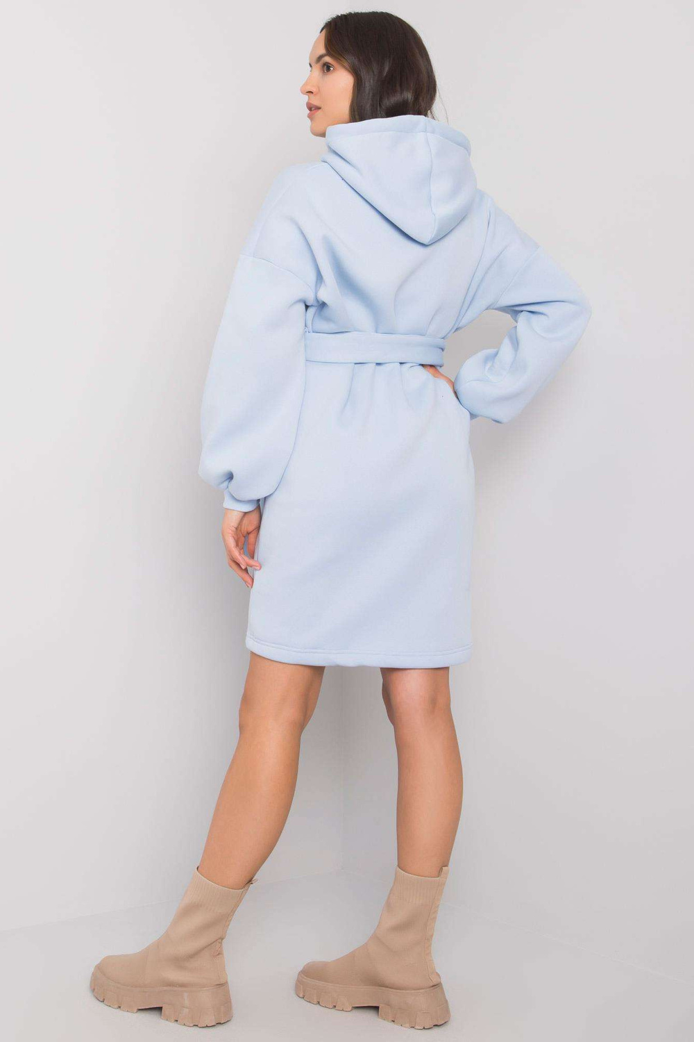 Šviesiai mėlyna sportinio kostiumo suknelė su Raella diržu. priedai: kišenės, dirželio medžiagasudėtis: 90% medvilnė, 10% elastanas skalbimo būdas: skalbimas mašinoje 30°C Modelis dėvi S/M dydį. Modelio matmenys: aukštis 172 cm, krūtinė 89 cm, juosmuo 65 cm, klubai 93 cm.