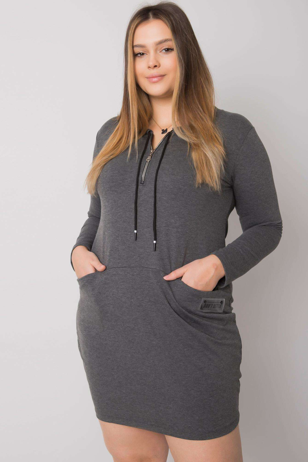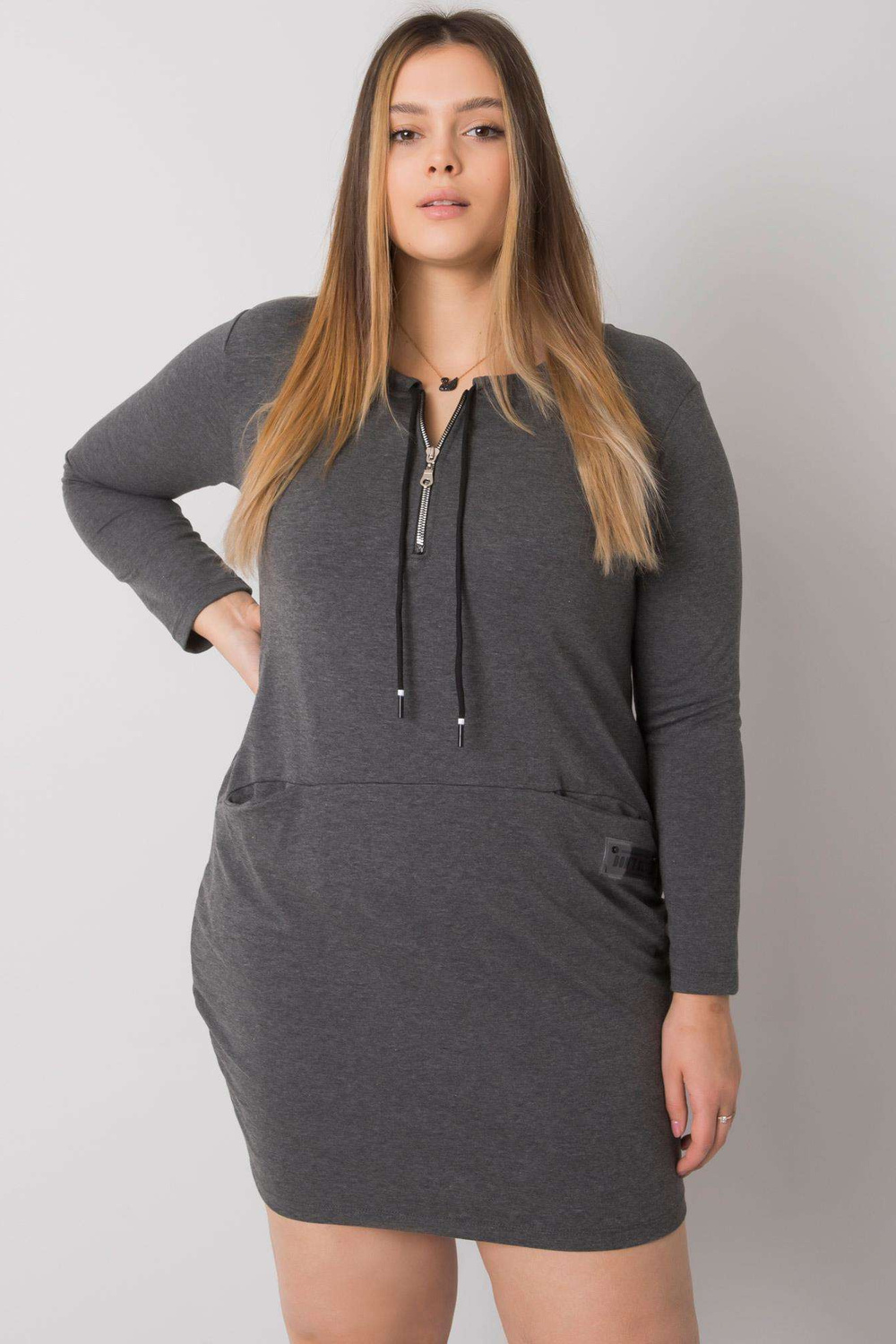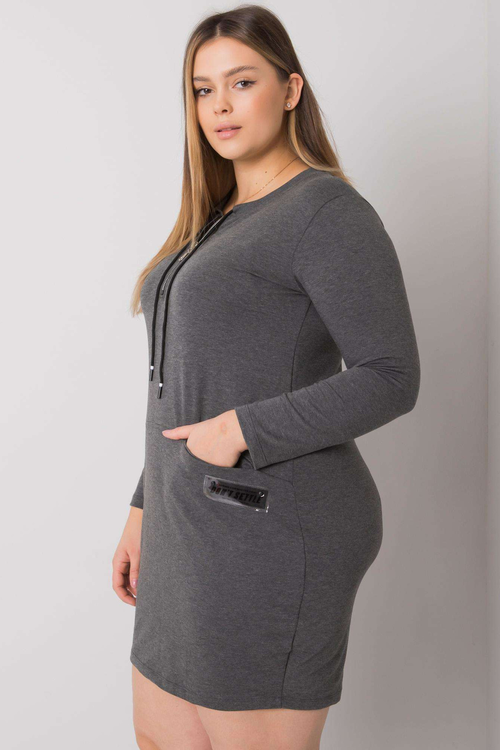 Tamsiai pilka plius dydžio melanžinė suknelė su Alessia kišenėmis.