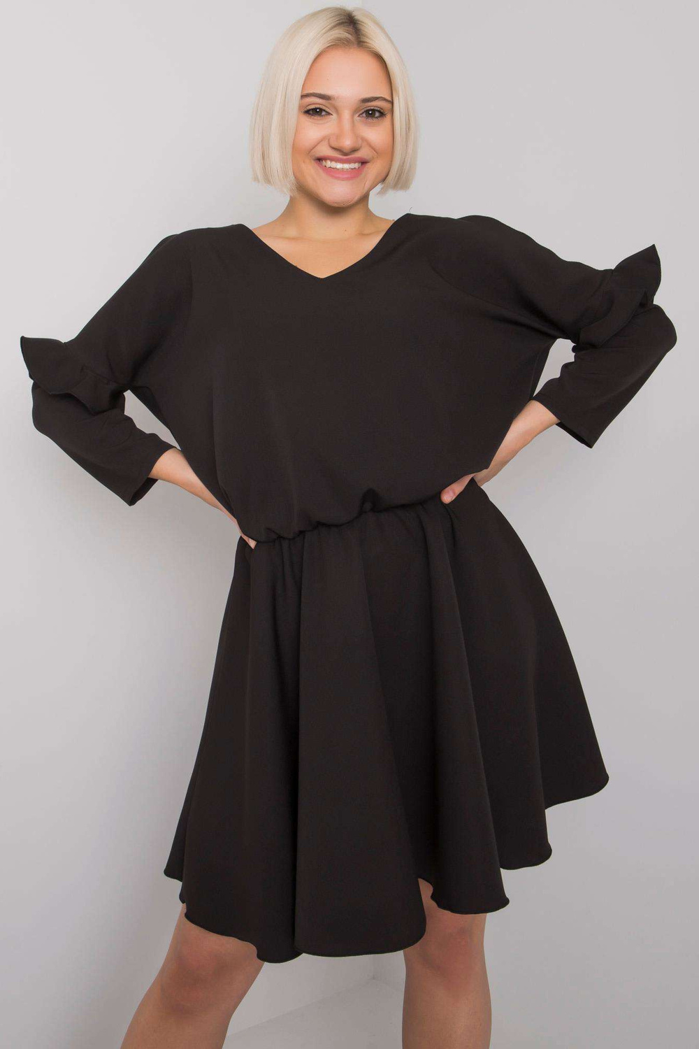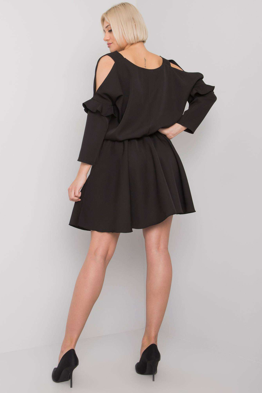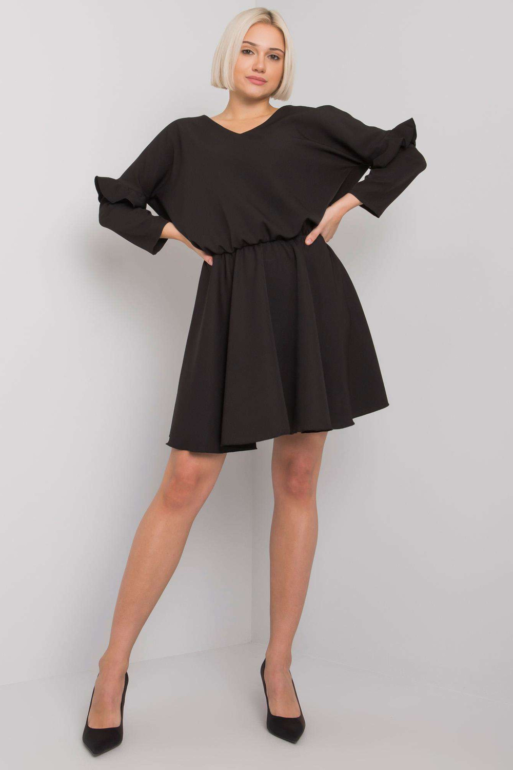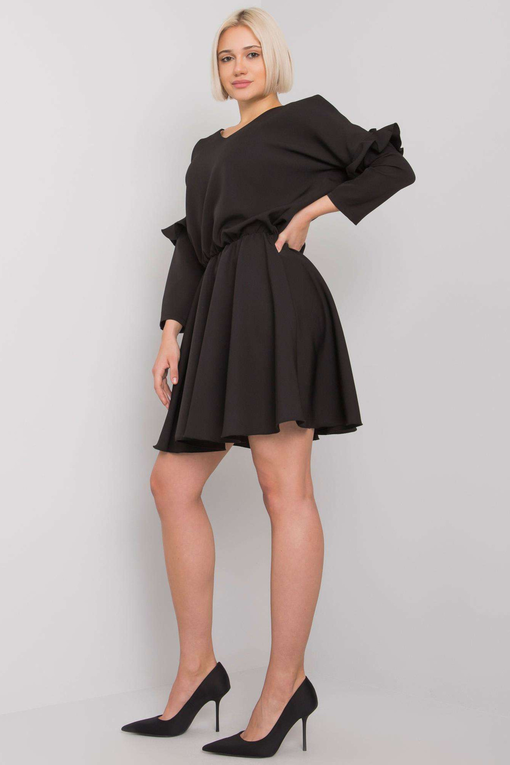 Juodas suknelė su raukšlėmis ant rankovių Victoire RUE PARIS.
