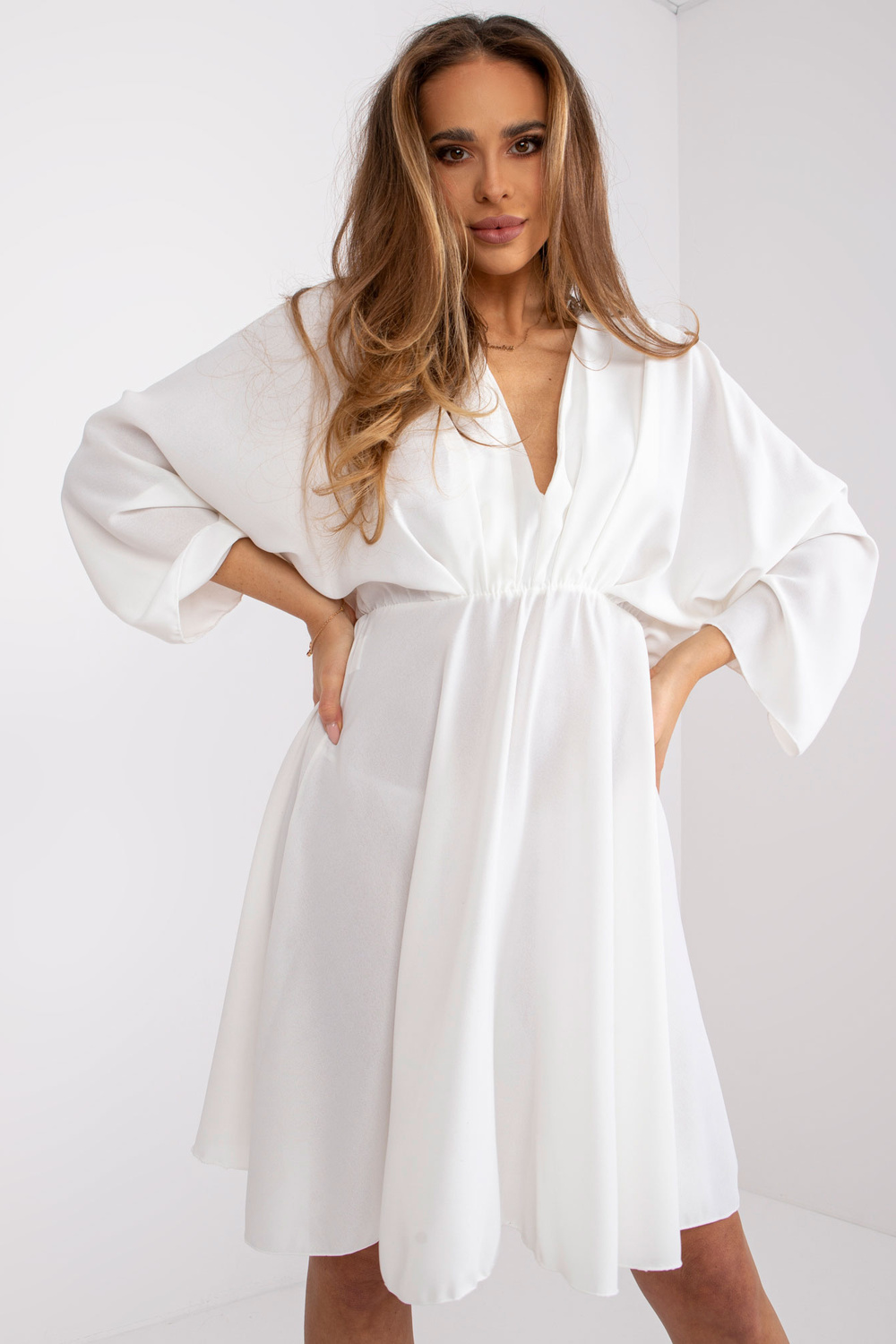 Vieno dydžio suknelės matmenys išmatuoti plokščiai: plotis po pažastimis - 53 cm, bendras ilgis - 91 cm, rankovių ilgis - 56 cm.