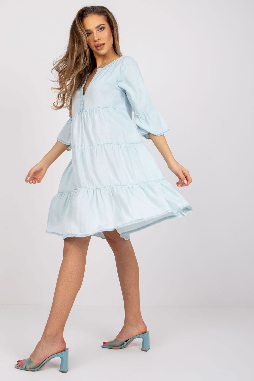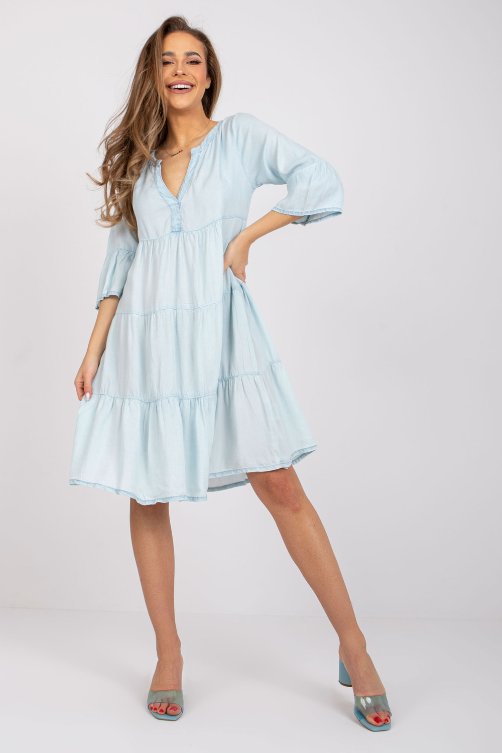 Šviesiai mėlyna suknelė iki kelių SUBLEVEL .