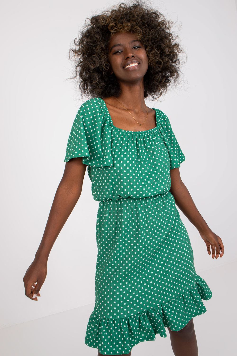 Žalios medvilnės mini taškuota suknelė RUE PARIS.