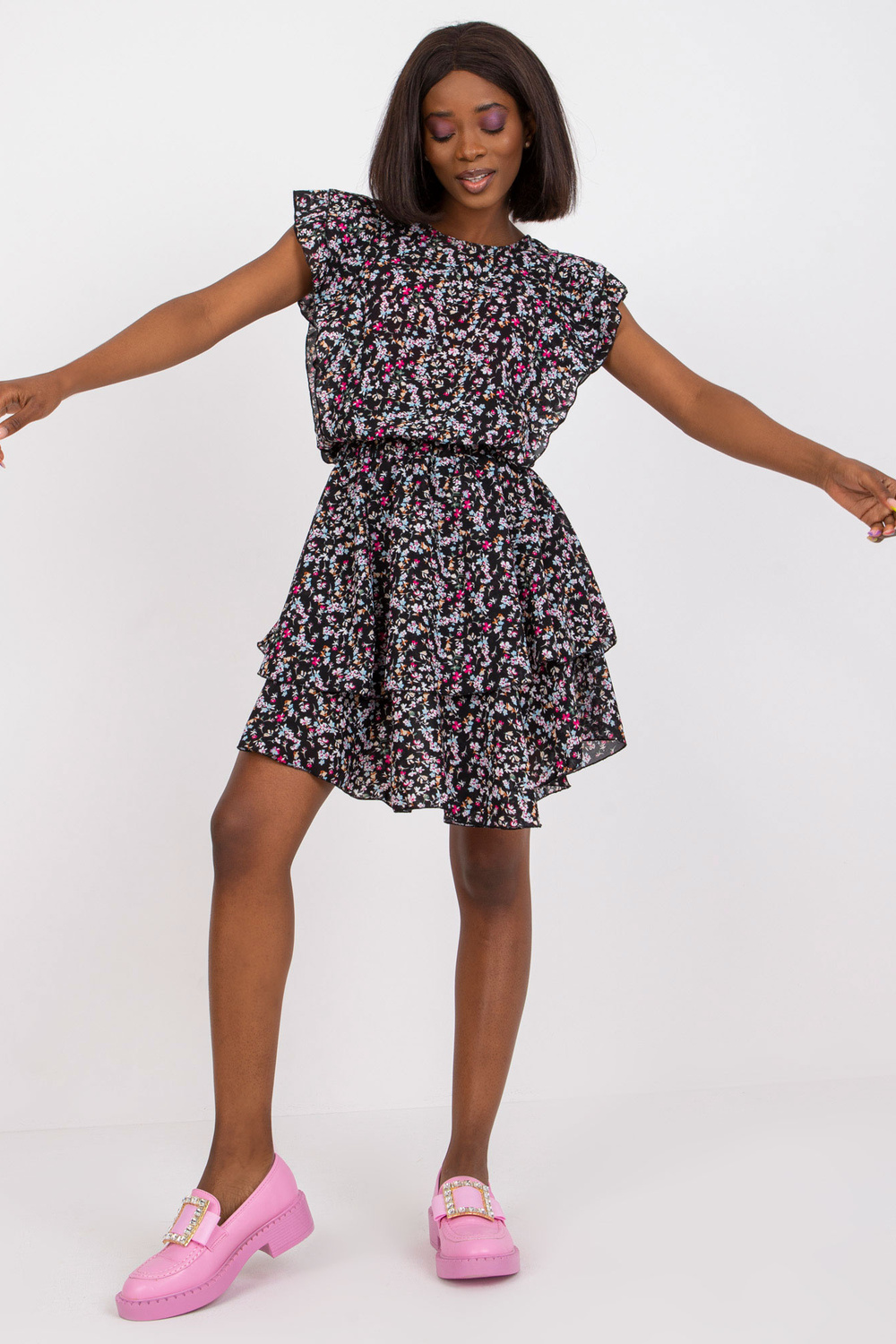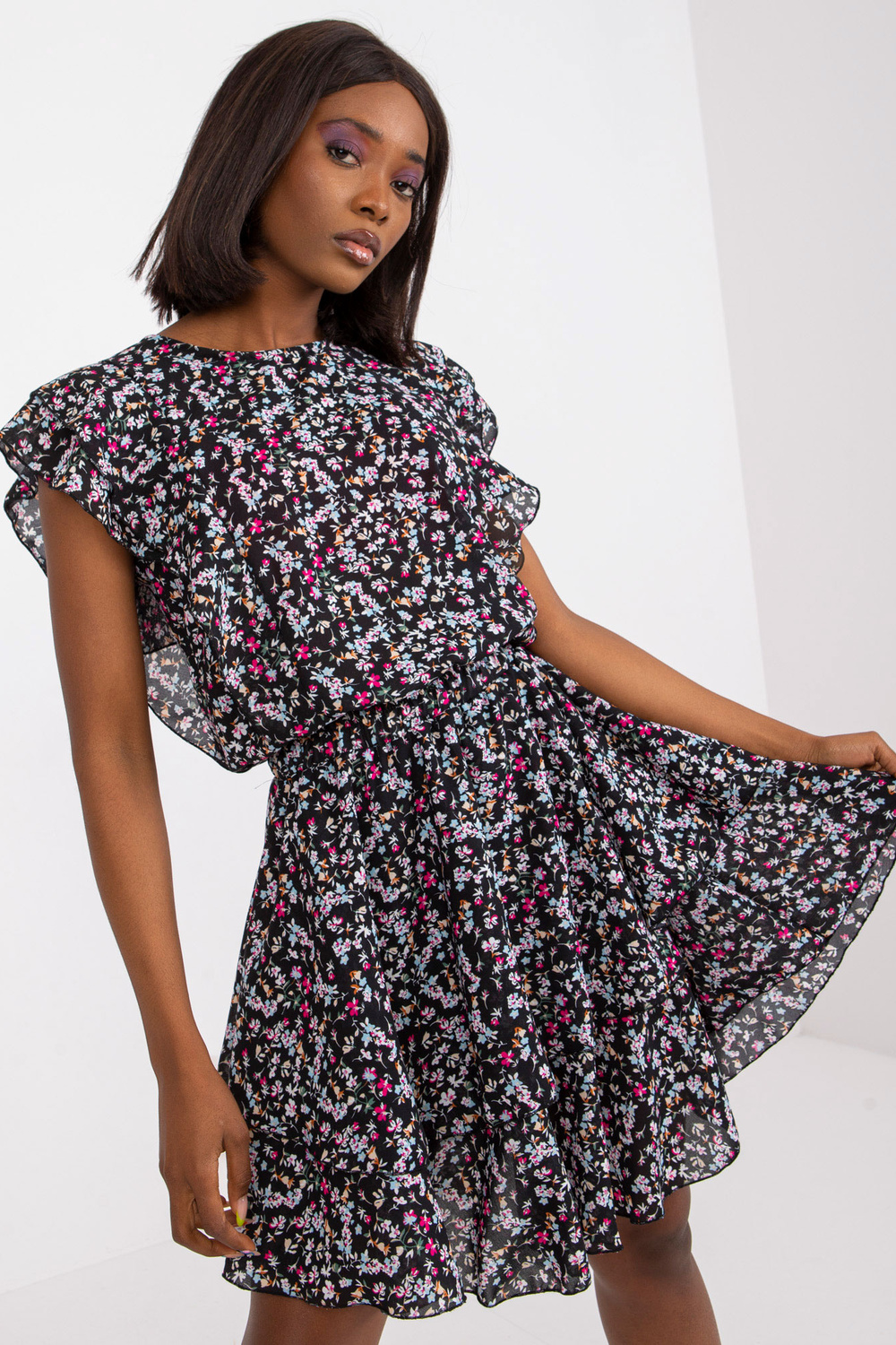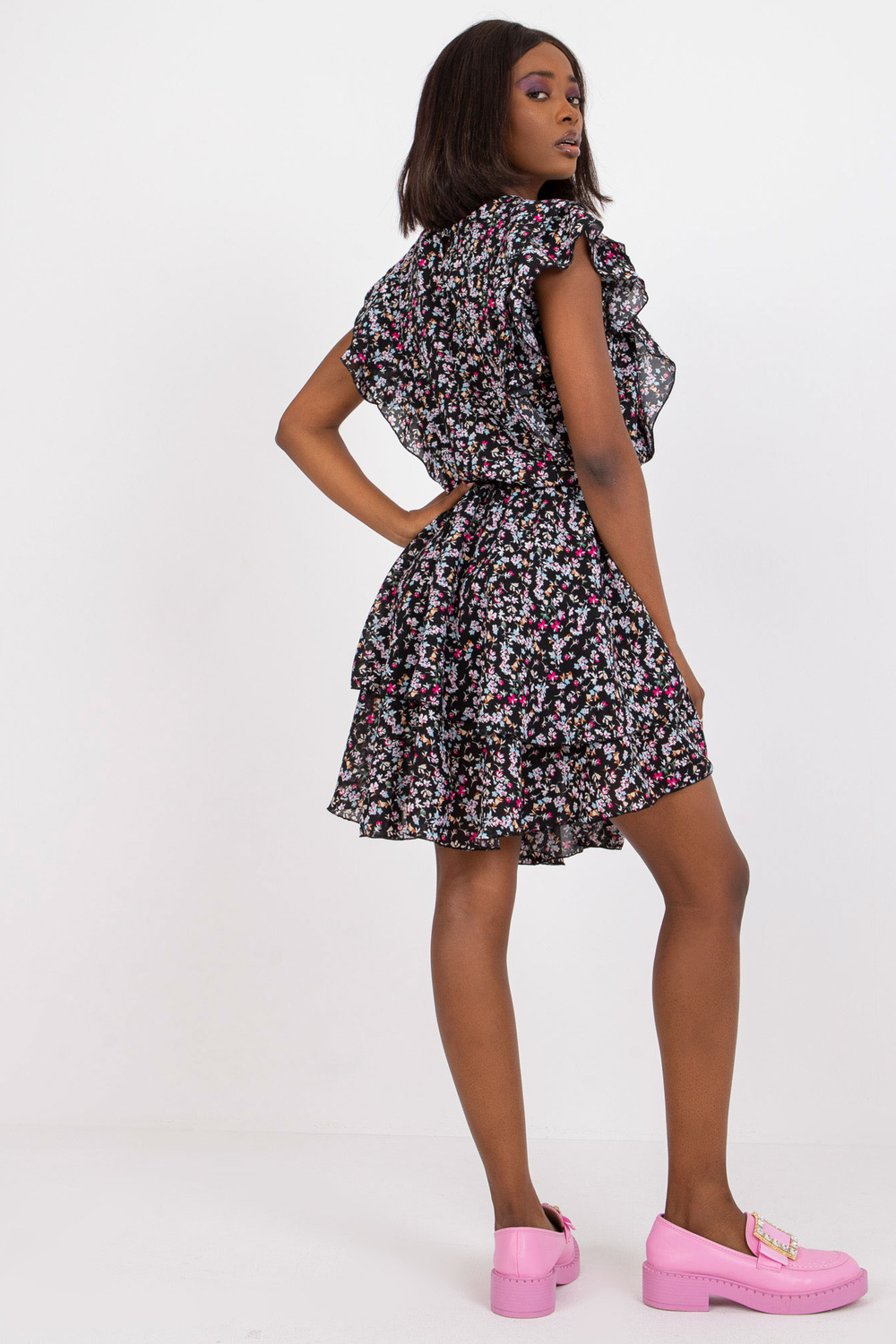 Juoda mini suknelė su gėlių raštais ZULUNA .