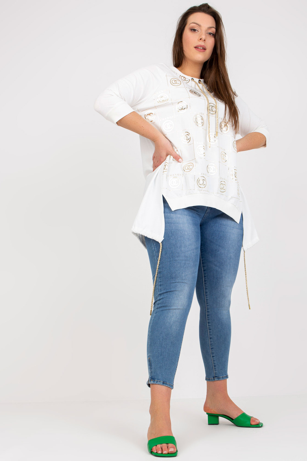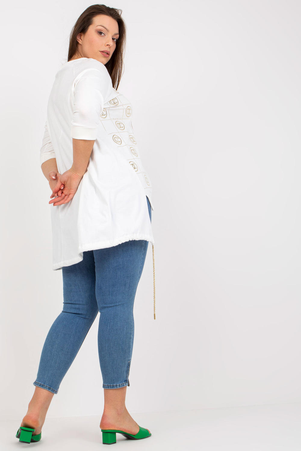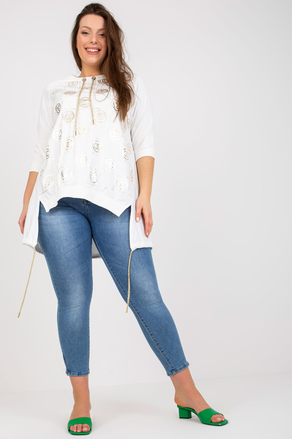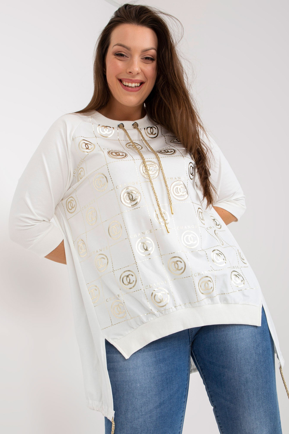 Whiteplus dydžio medvilninė palaidinė su motyvais.