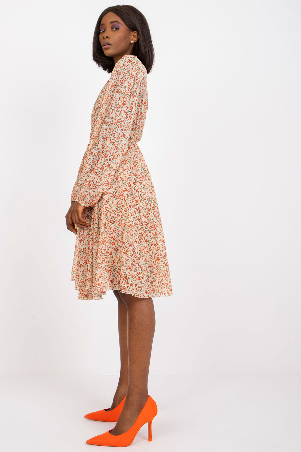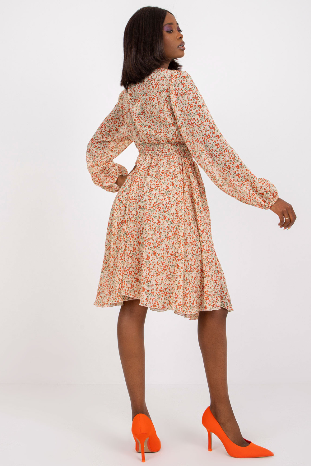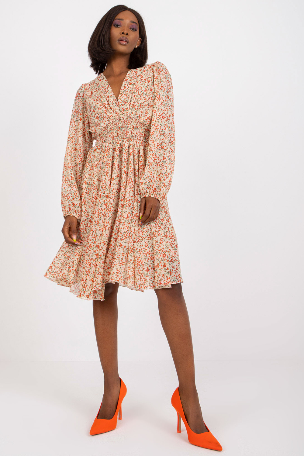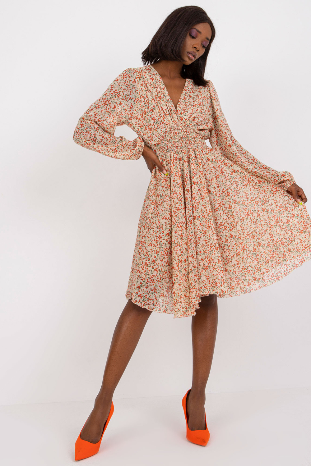 Smėlio spalvos suknelė su gėlių raštais ZULUNA .