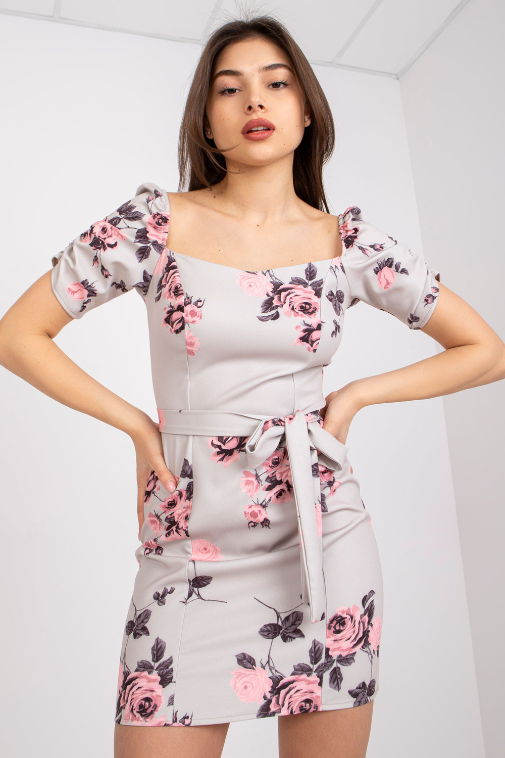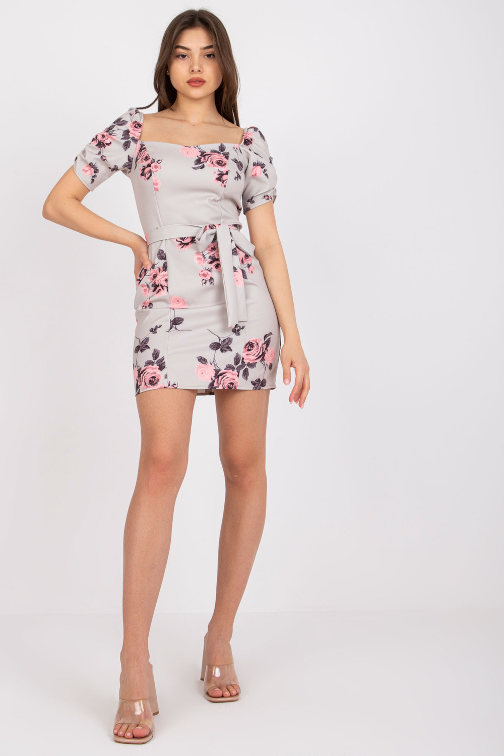 aksesuarai: diržas, nugaroje užsiūtas užtrauktukas, raukiniai ant rankovių