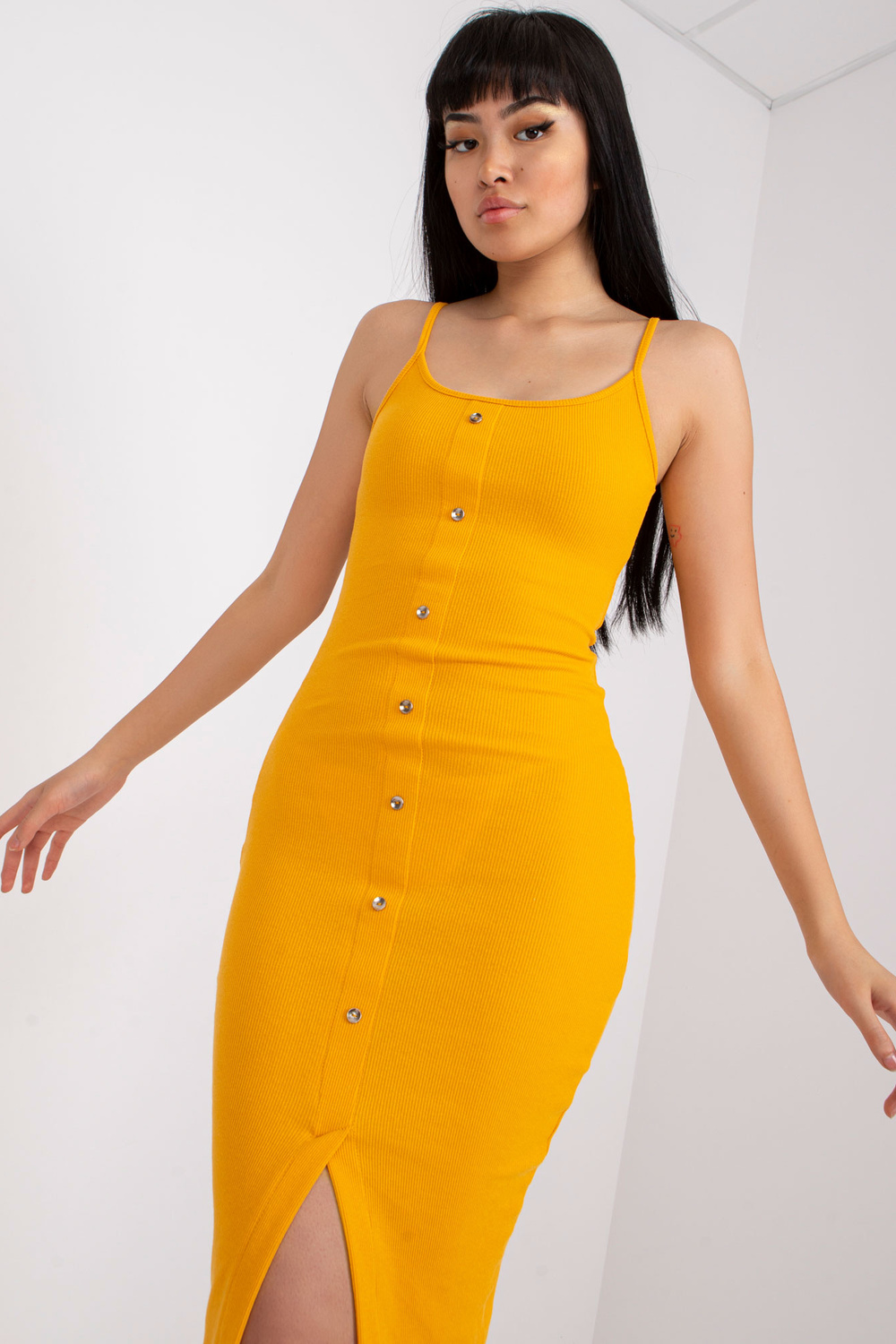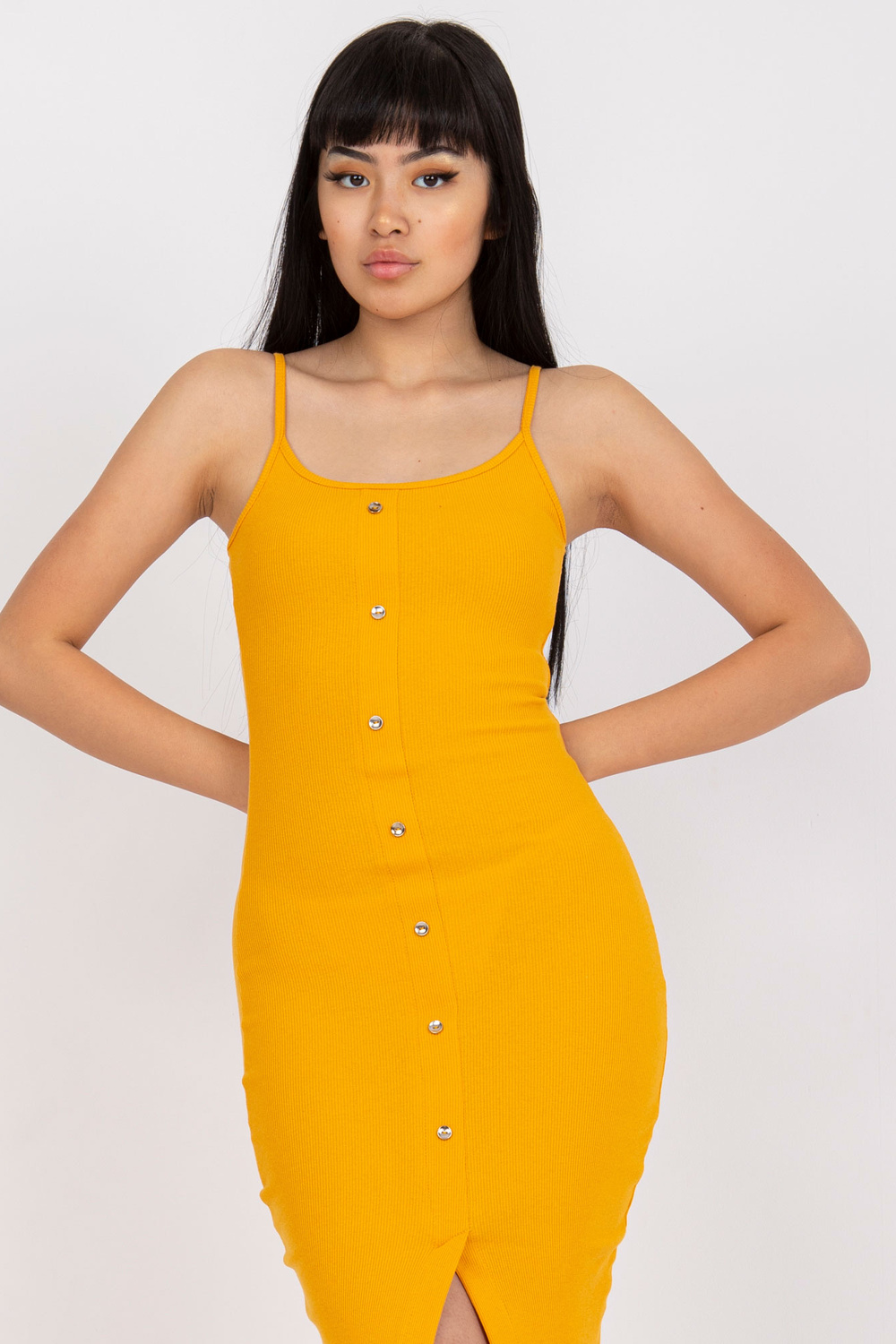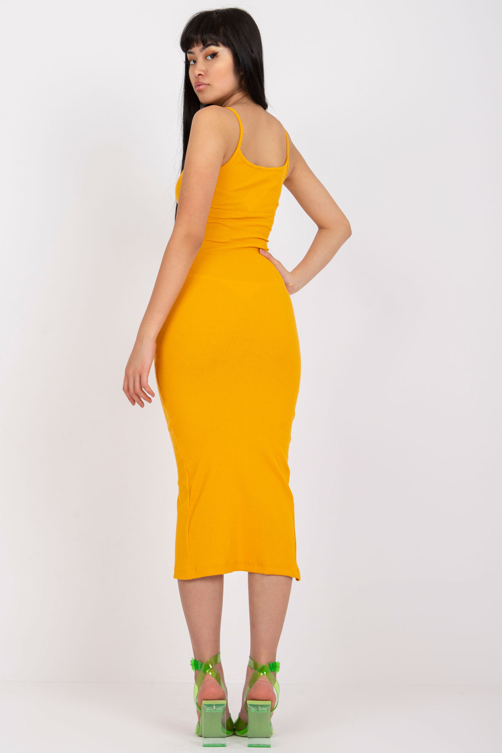 RUE PARIS ryškiai oranžinė prigludusi suknelė su juostelėmis .