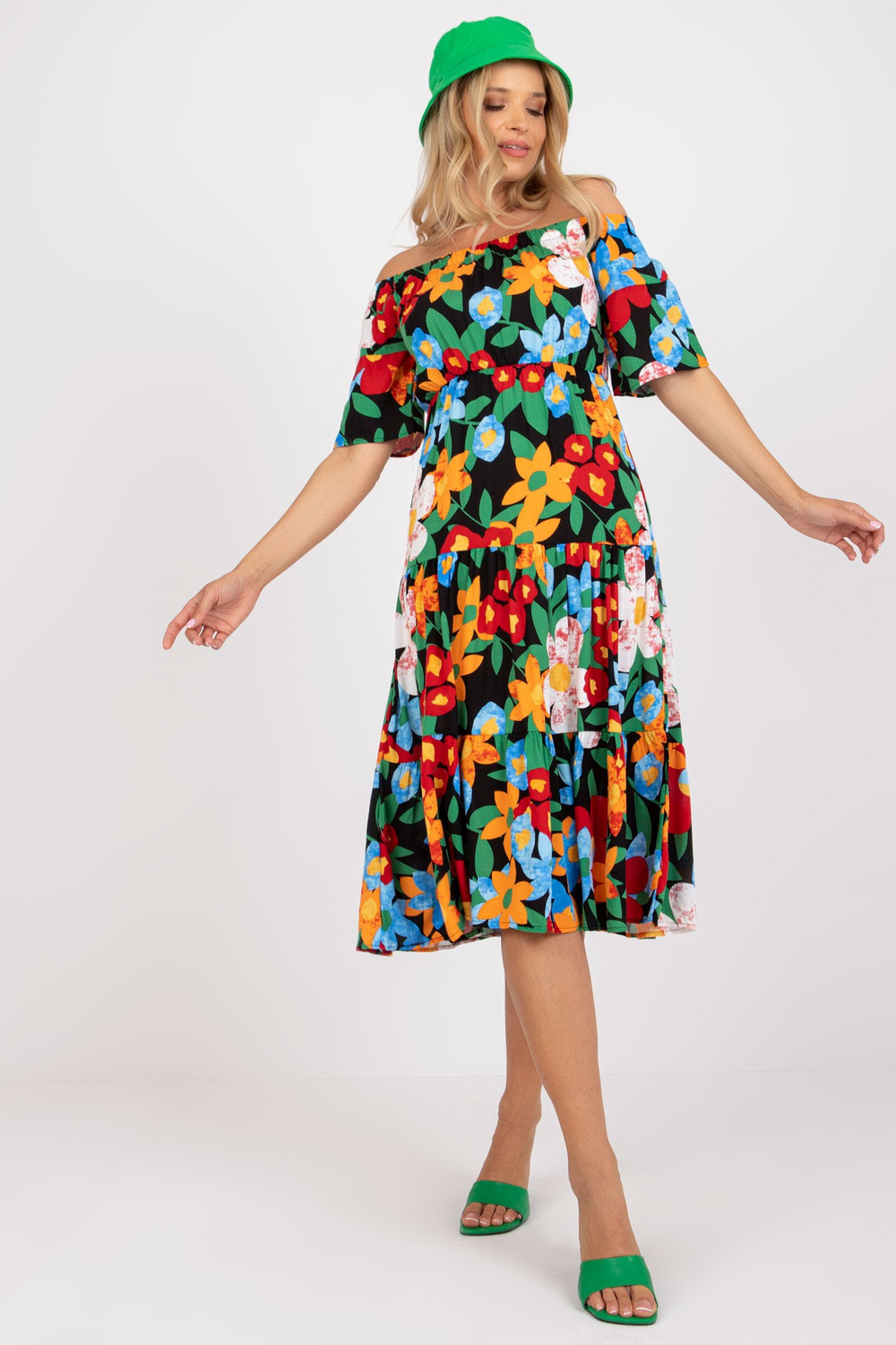 Juoda ispaniška midi suknelė su gėlėmis RUE PARIS. medžiagasudėtis: 100% viskozė skalbimo būdas: skalbimas mašinoje 30°C Gaminio kodas: RO-SK-8007-1.03P dominuojantis raštas: gėlės Stilius: laisvalaikio progai: miestui, vasarai Modelis dėvi S dydį. Dimen