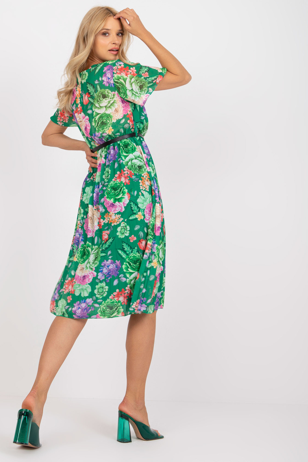 Vieno dydžio suknelės matmenys išmatuoti plokščiai: plotis po pažastimis - 42 cm, bendras ilgis - 110 cm.
