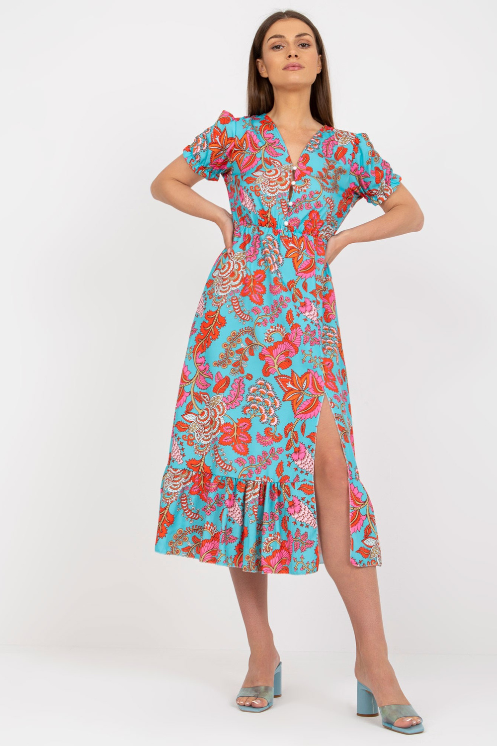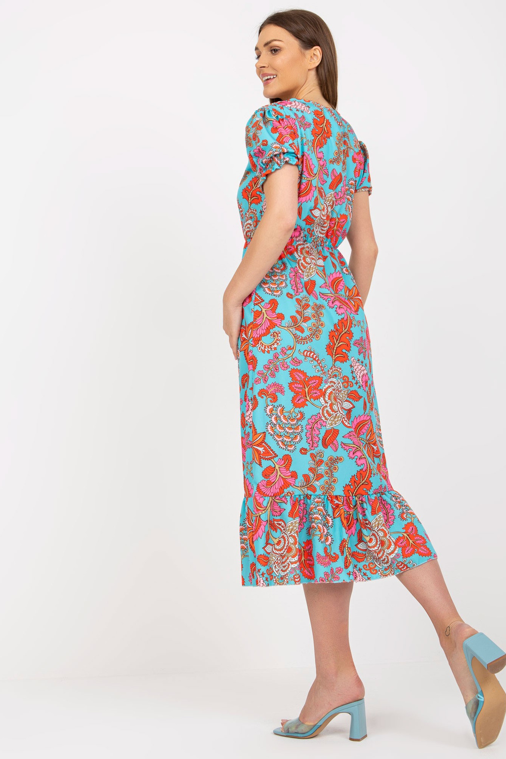 Vieno dydžio suknelės matmenys išmatuoti plokščiai: plotis po pažastimis - 48 cm, bendras ilgis - 115 cm.
