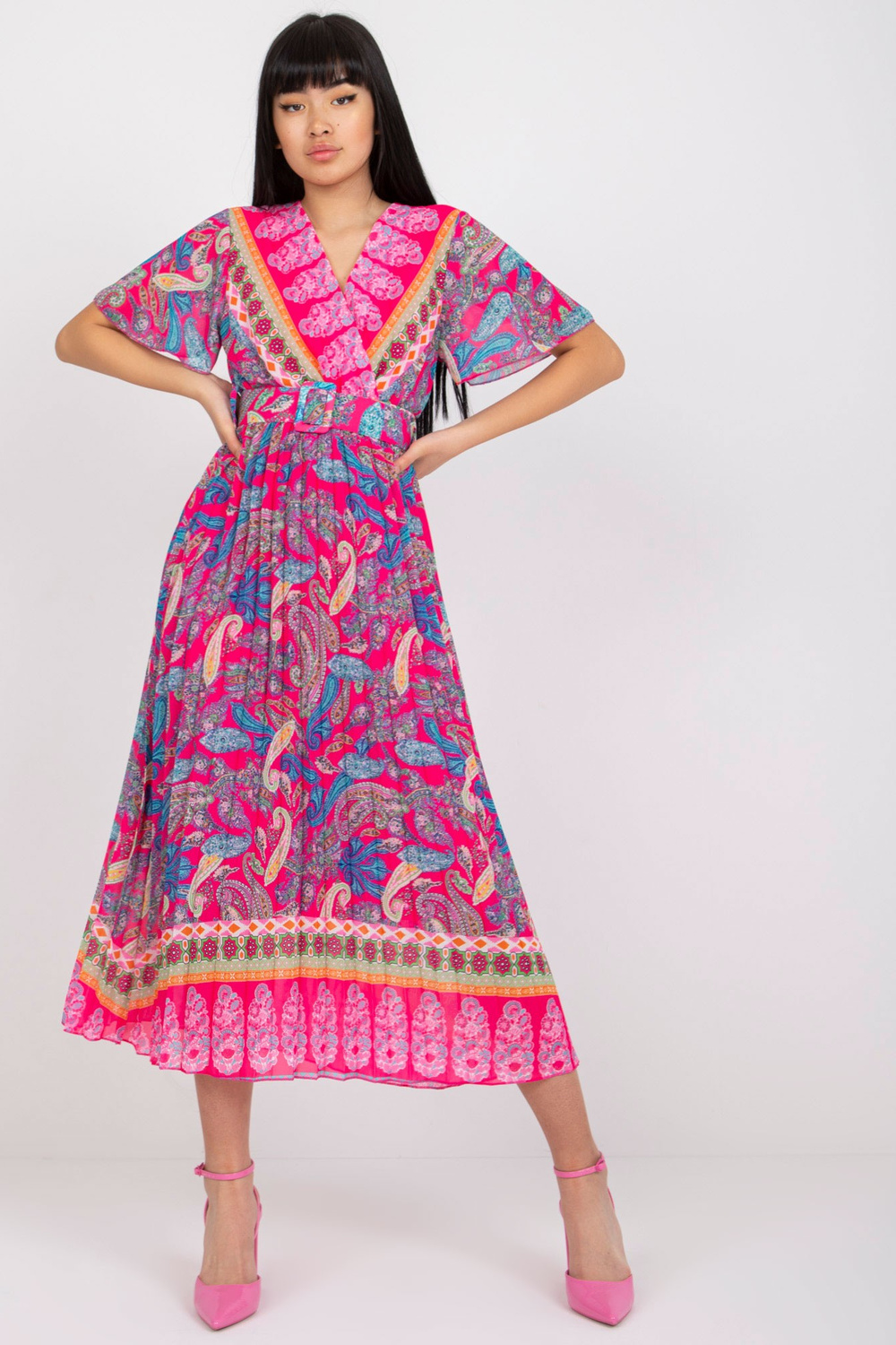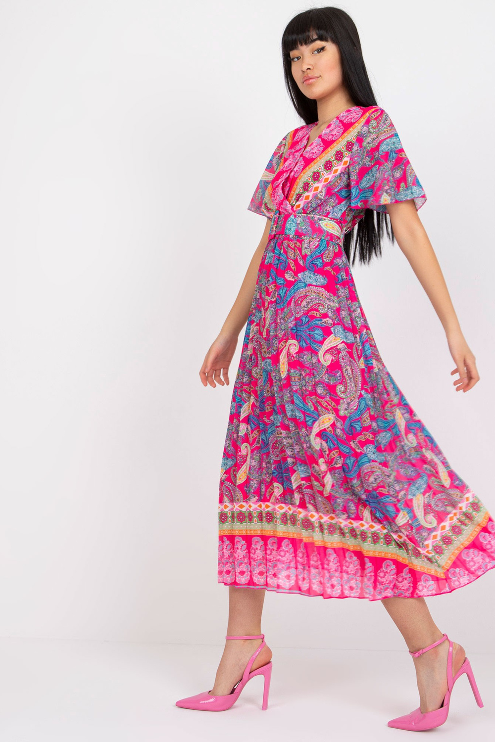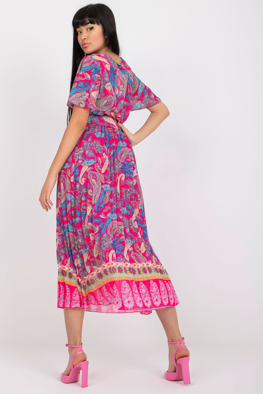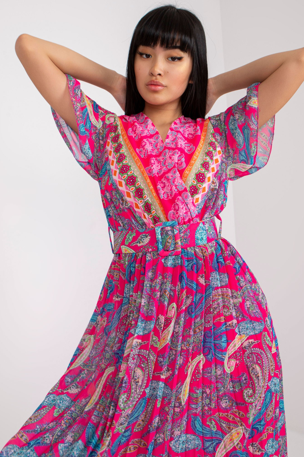 Plisuota vieno dydžio suknelė su rytietiškais motyvais .