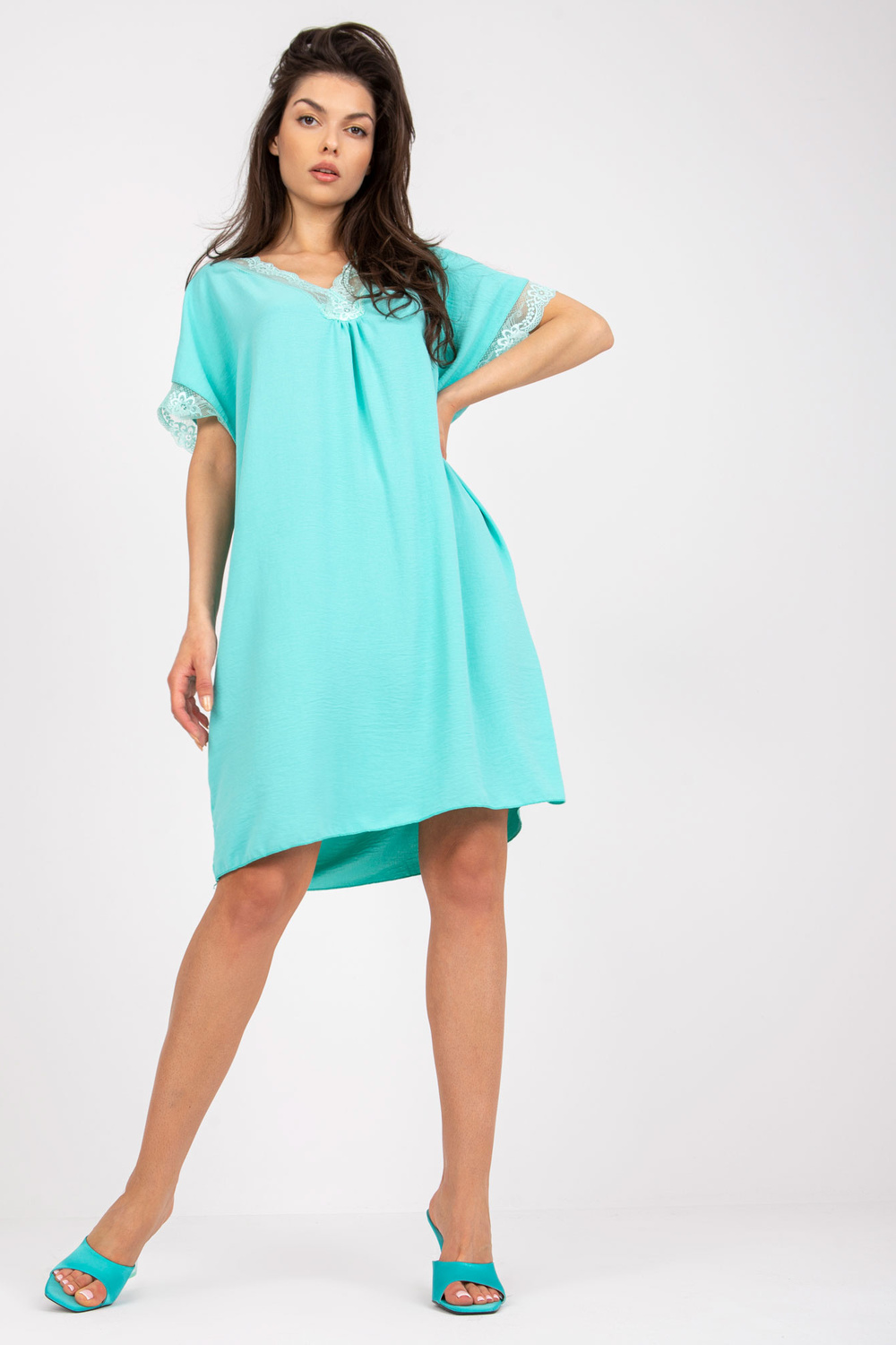 Labai mėtos spalvos suknelė su V formos iškirpte .