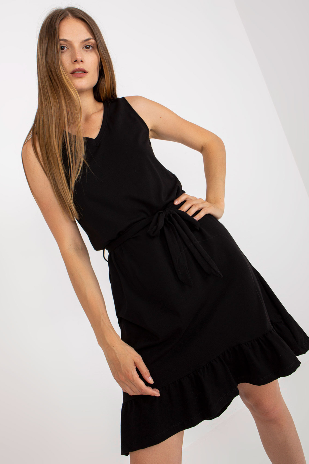 Juodos medvilnės mini suknelė su kaklaraiščiu RUE PARIS .