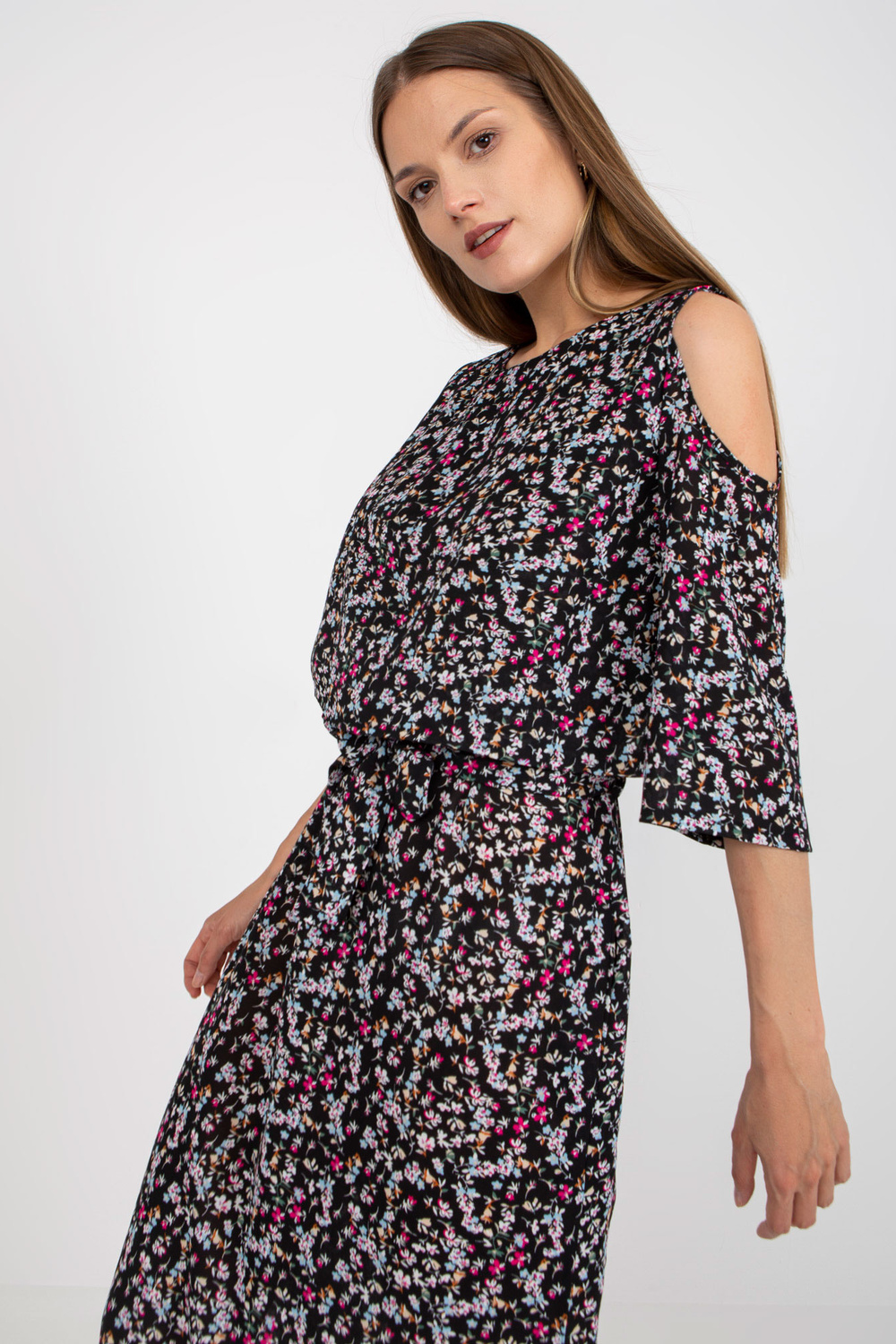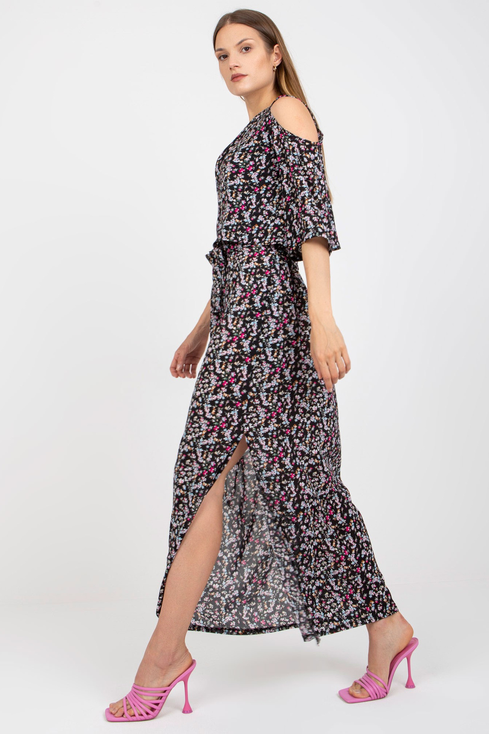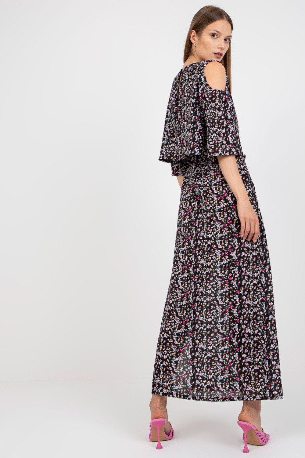 Juoda gėlėta maksi suknelė su kišenėmis ZULUNA .