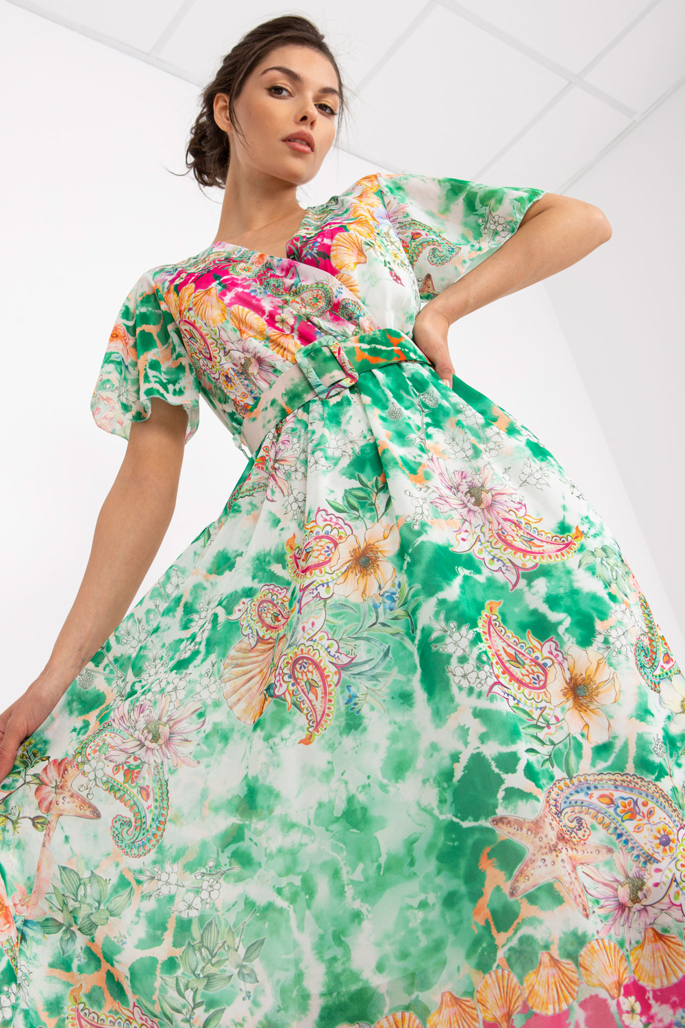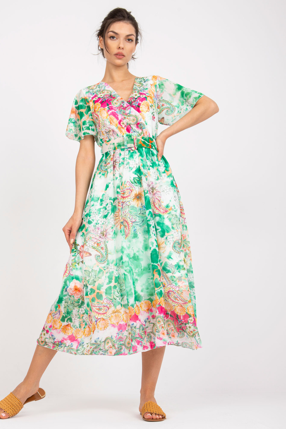 Greenmidi suknelė su raštais ir trumpomis rankovėmis .