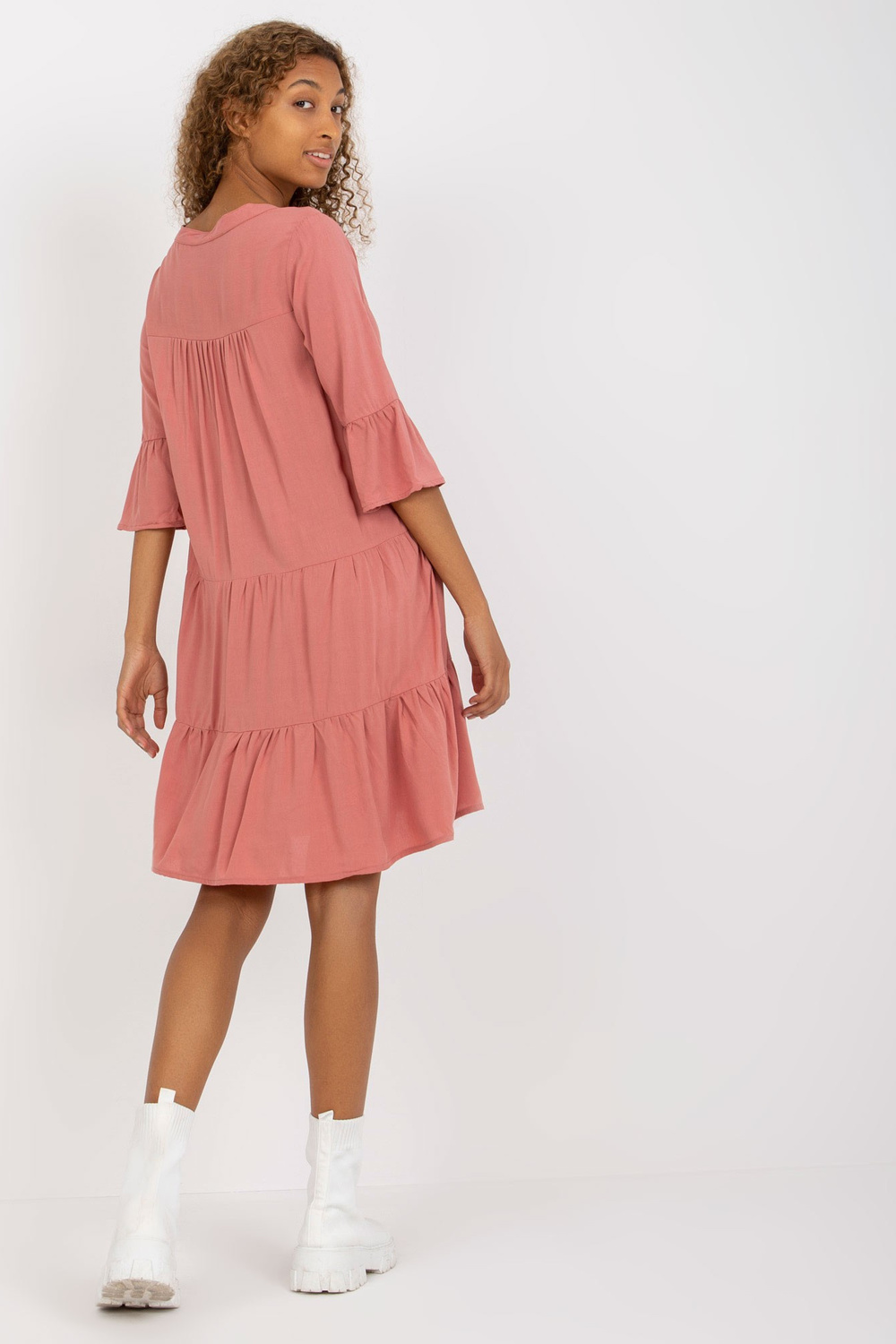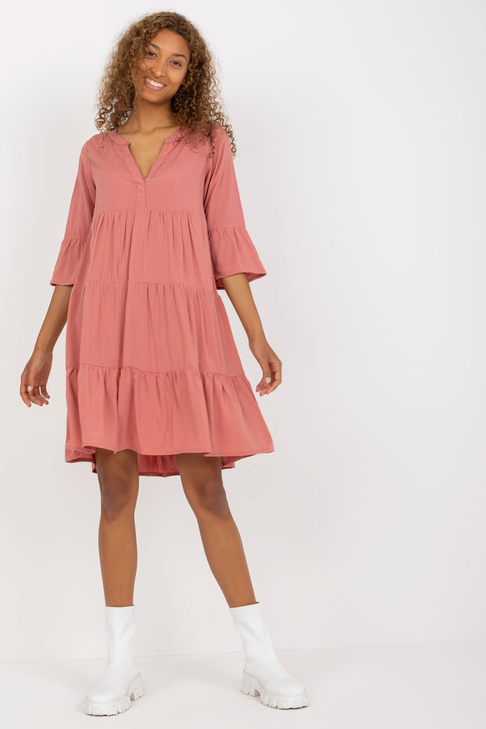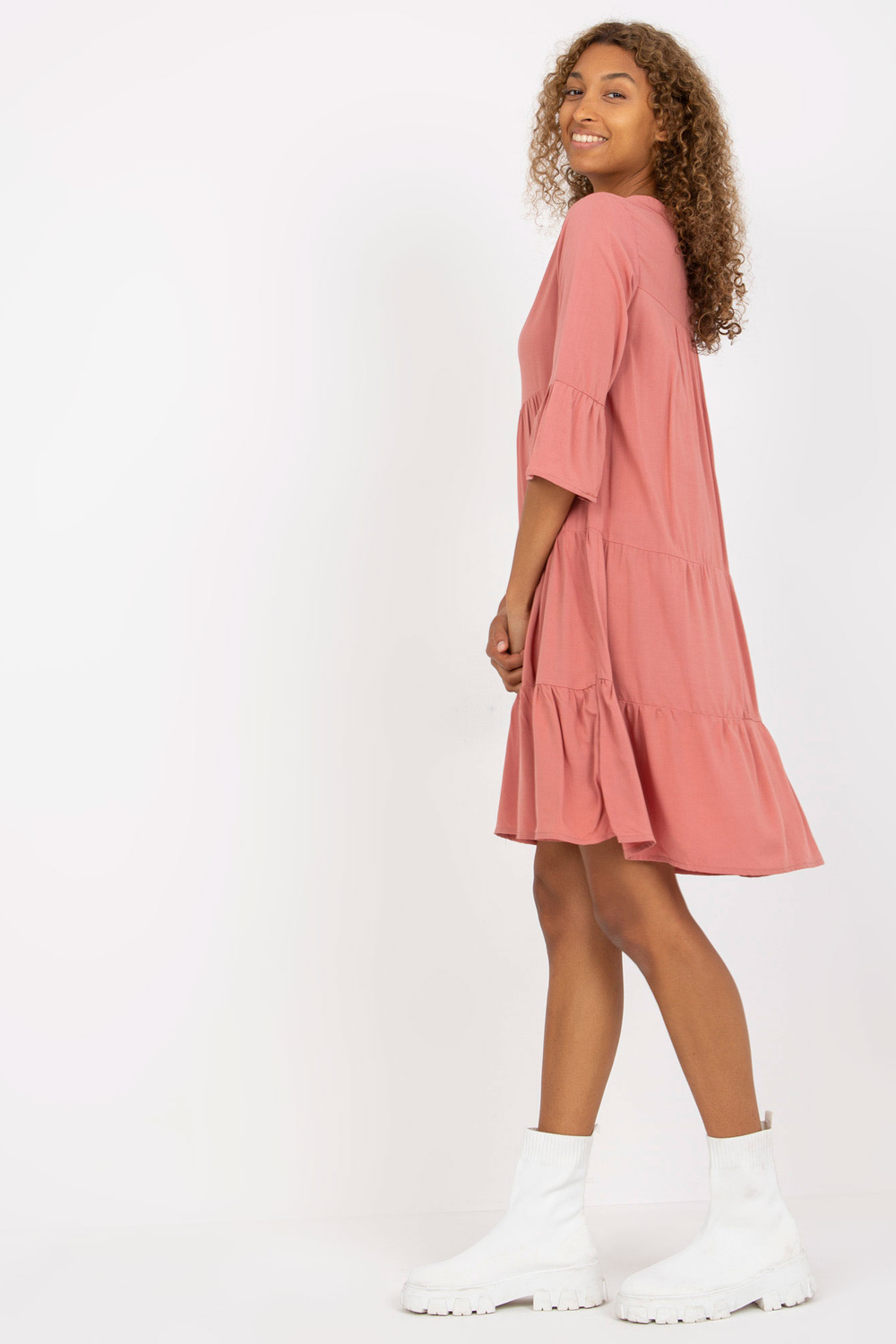 Dulkėtos rožinės viskozės suknelė su raukiniais SUBLEVEL .