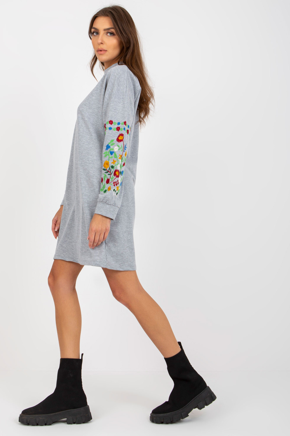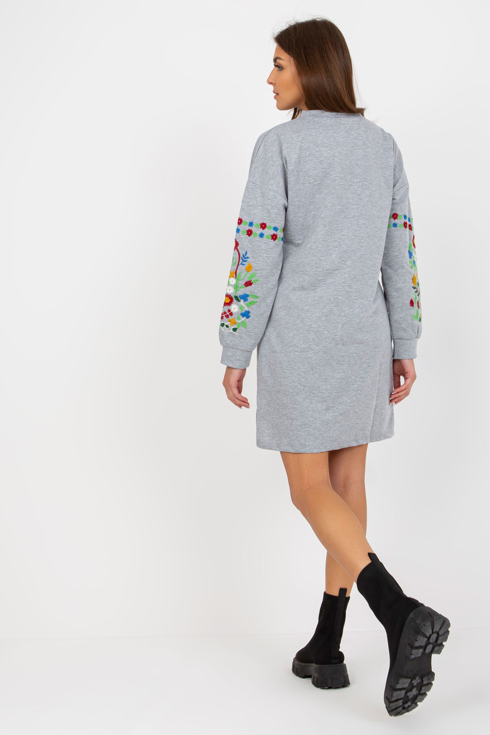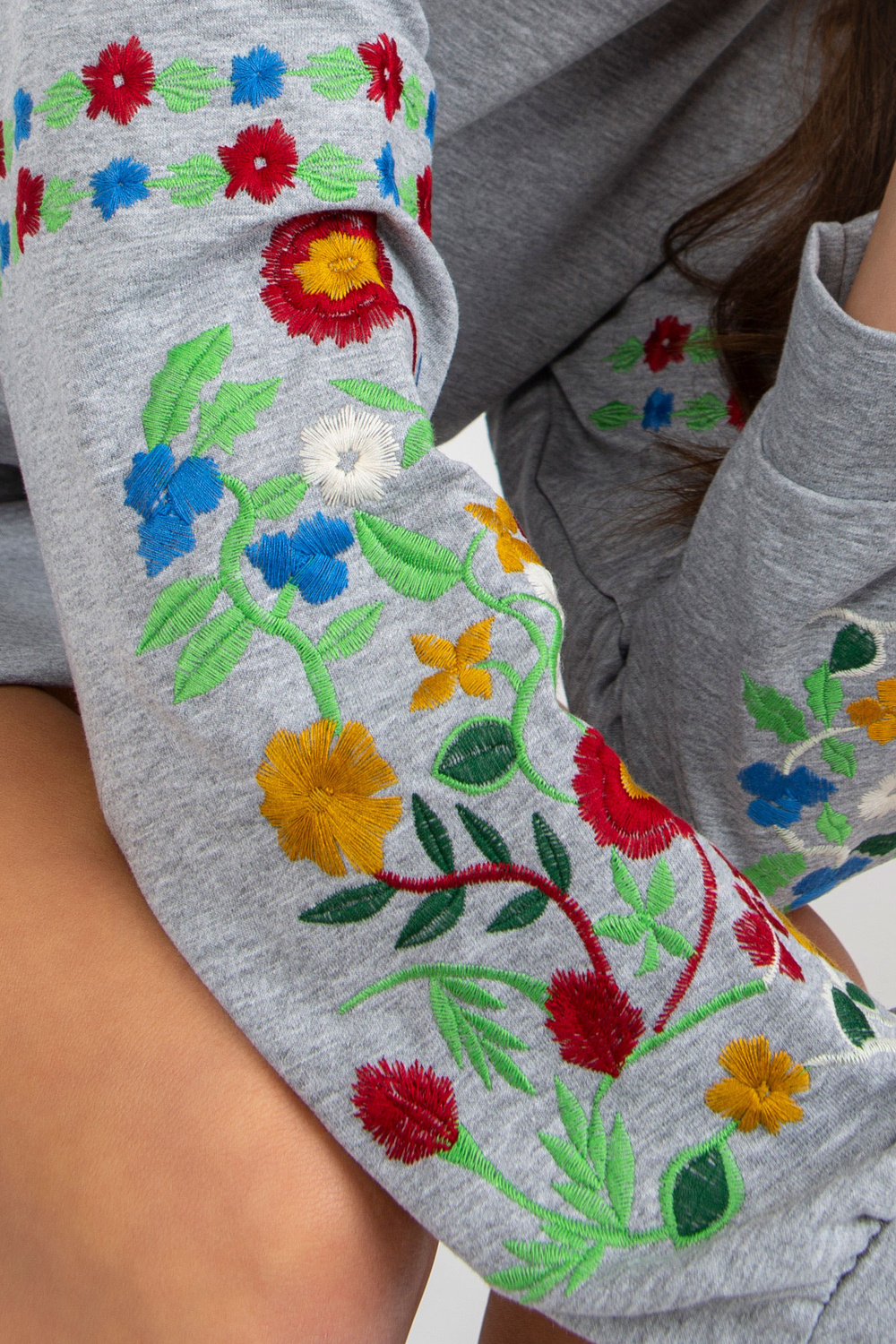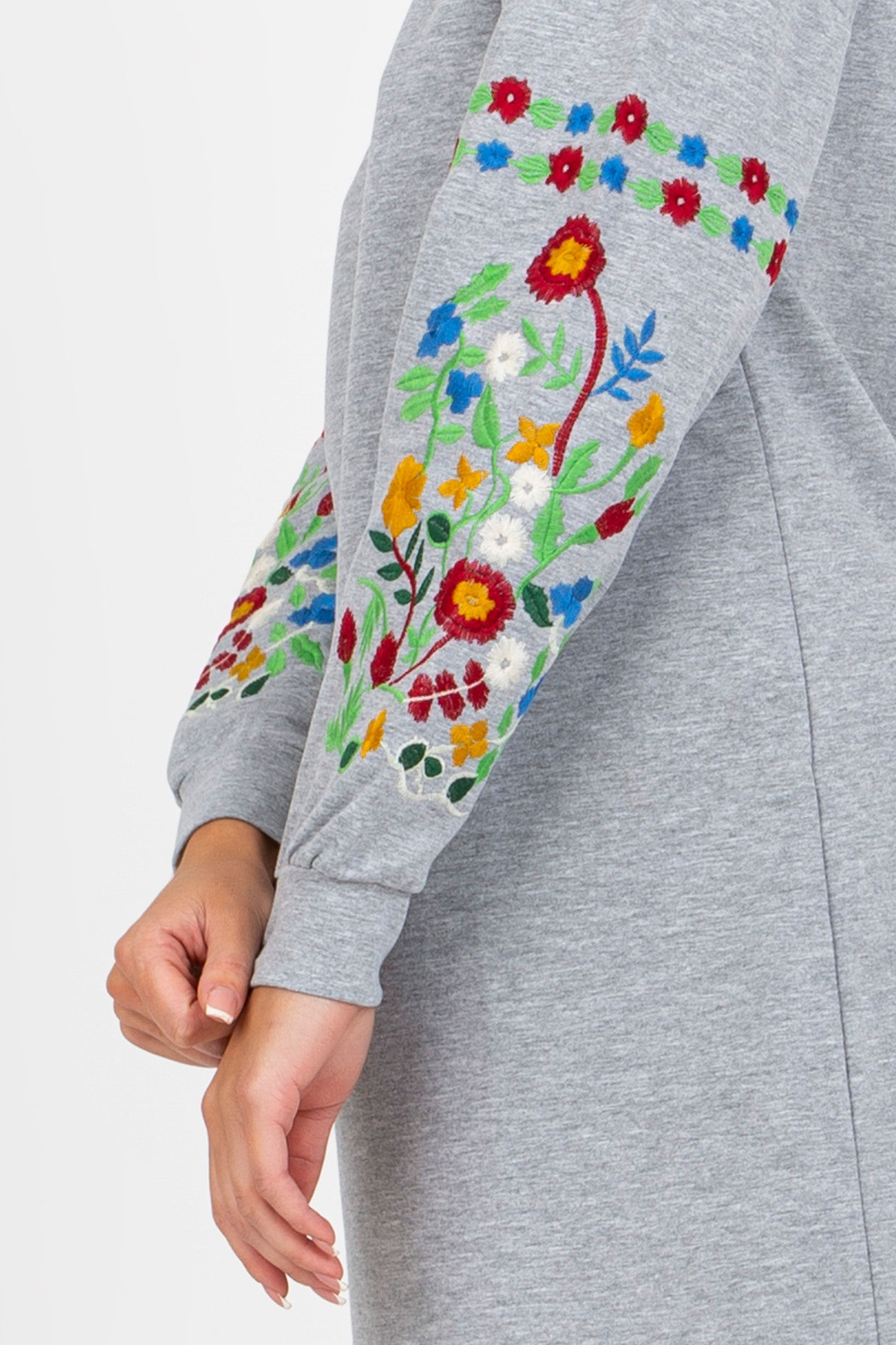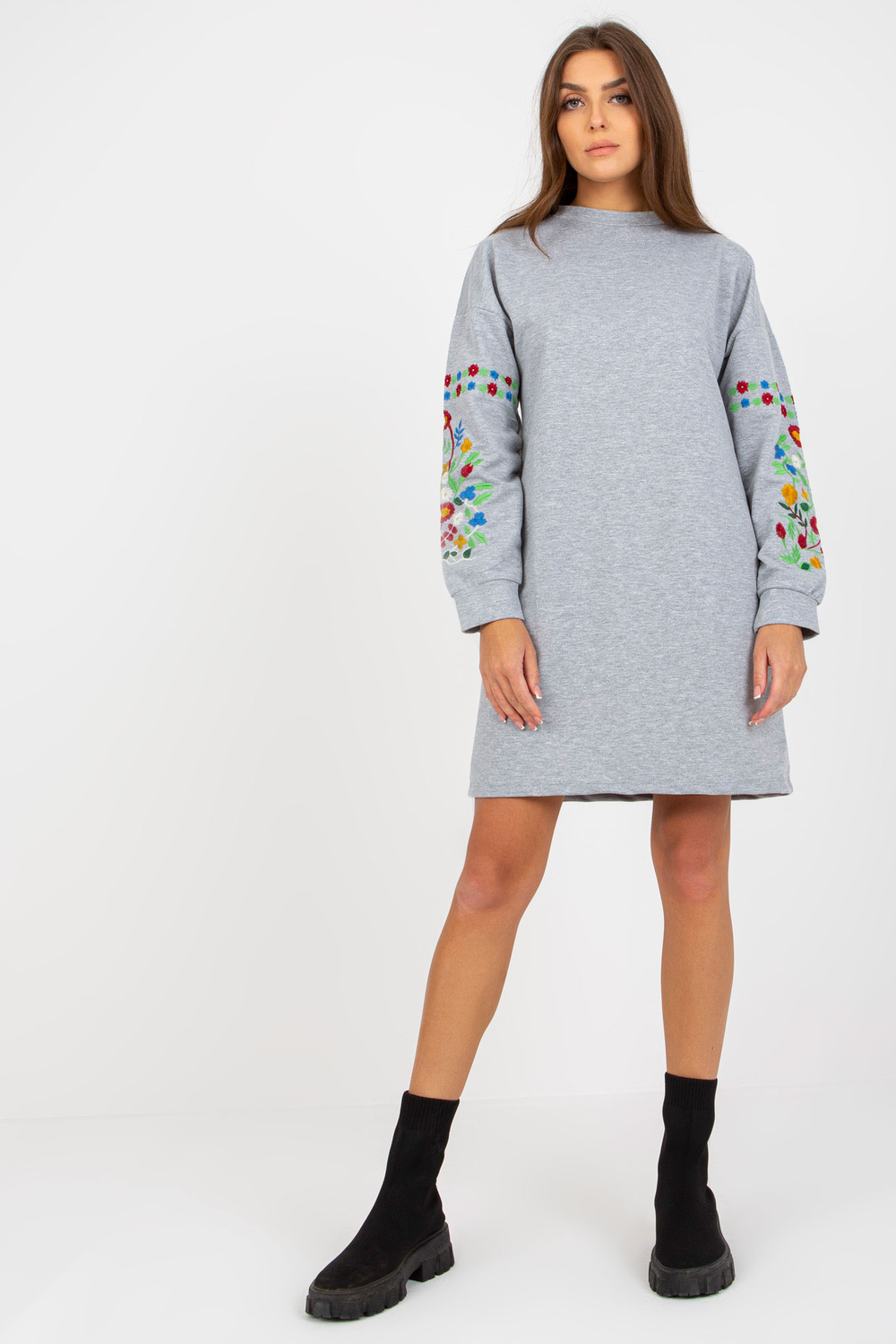 Pilka melanžinė megztinė suknelė su išsiuvinėtomis gėlėmis RUE PARIS< /strong> .