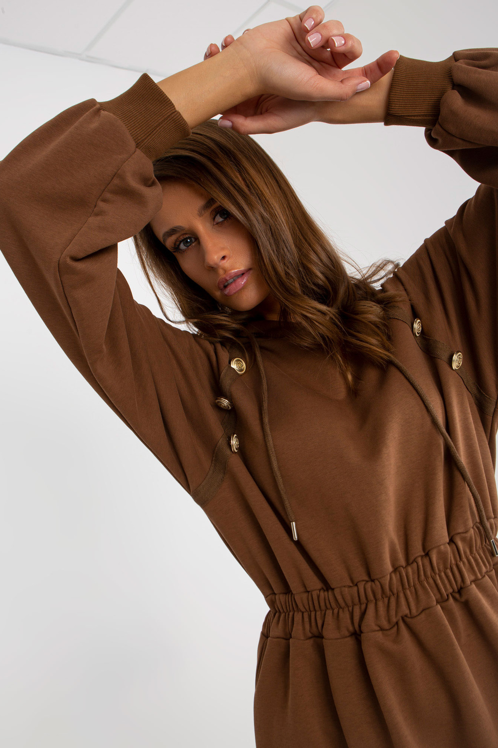 Braunes Midi-Sweatshirtkleid mit ausgestellten Knöpfen