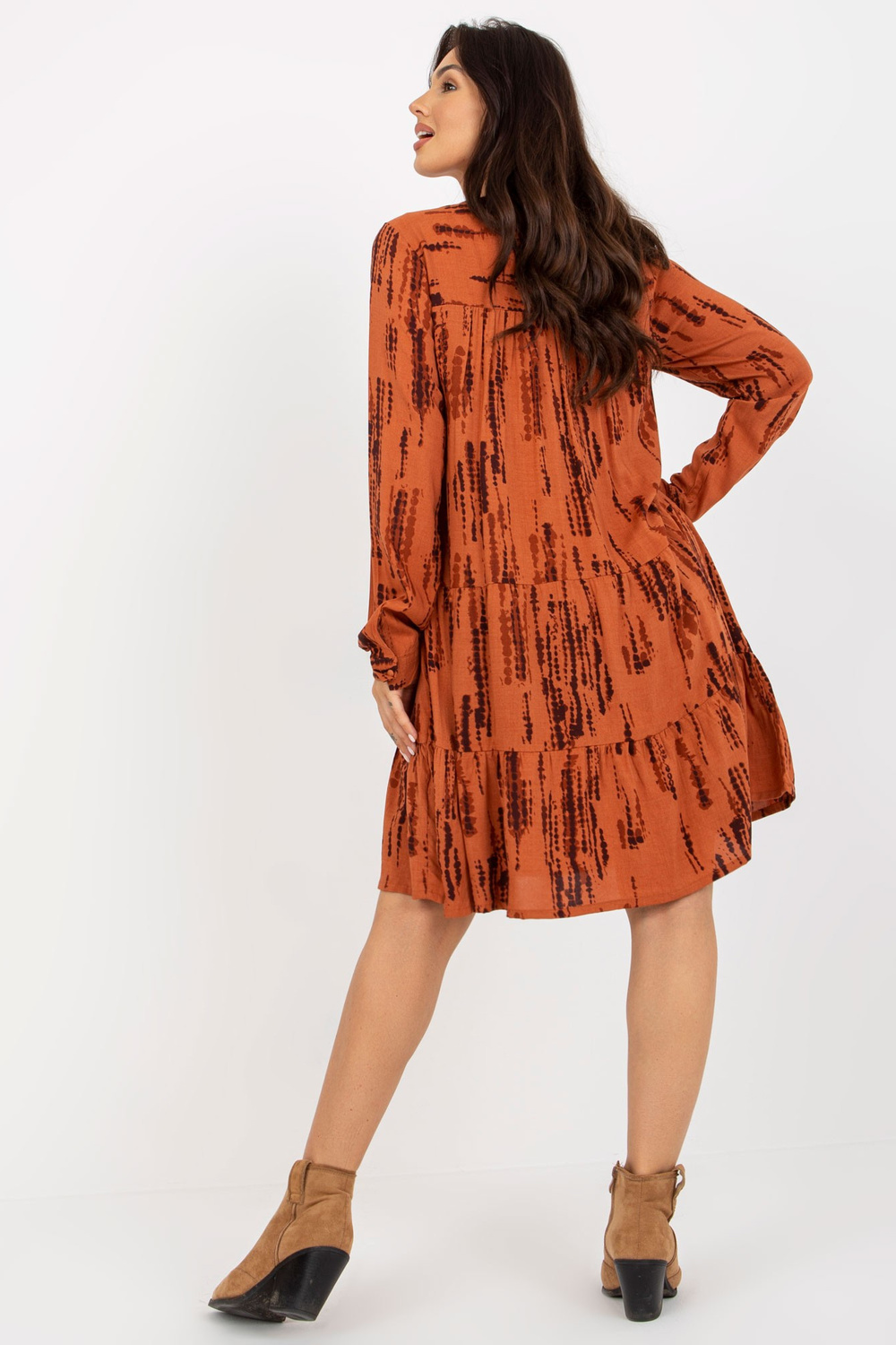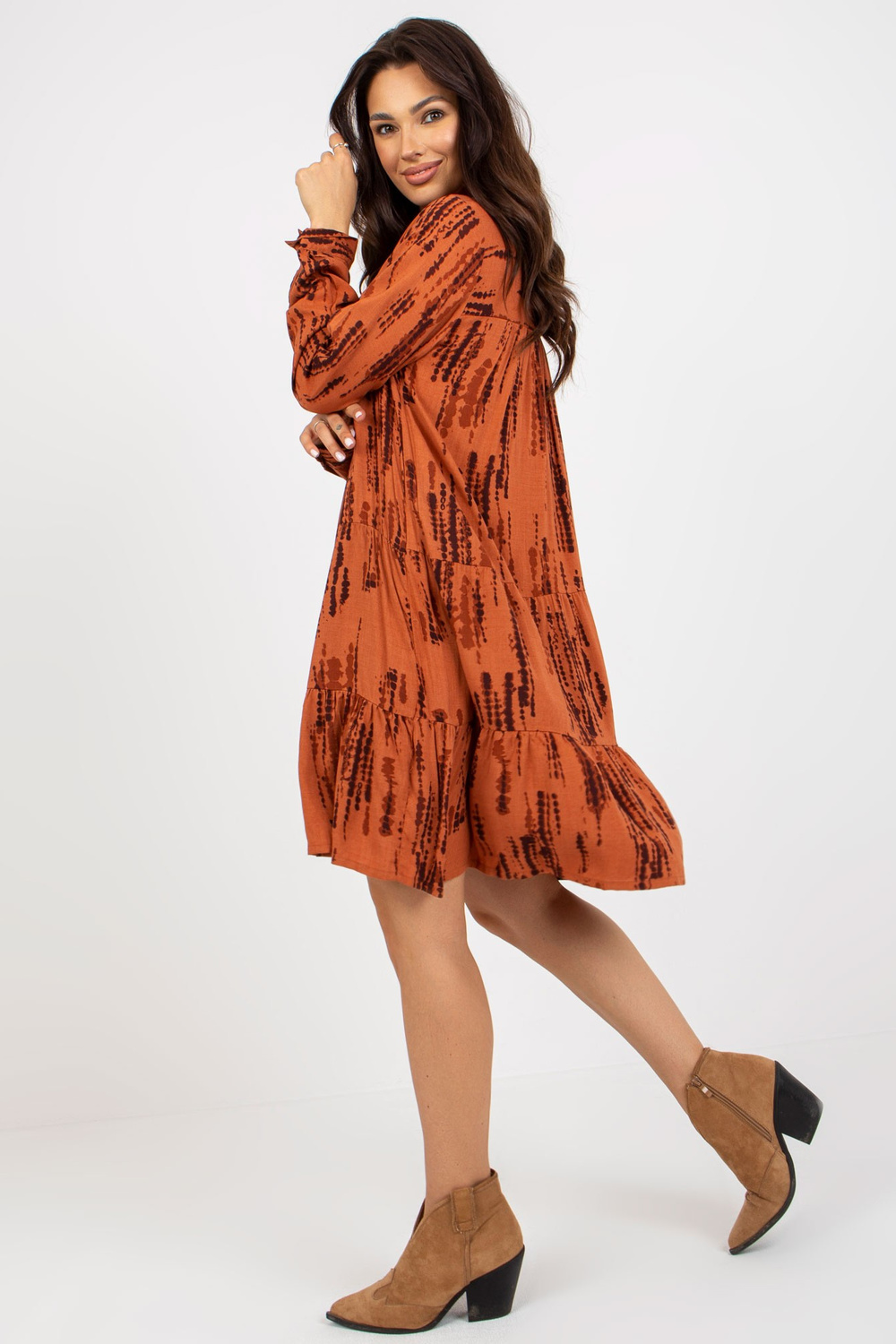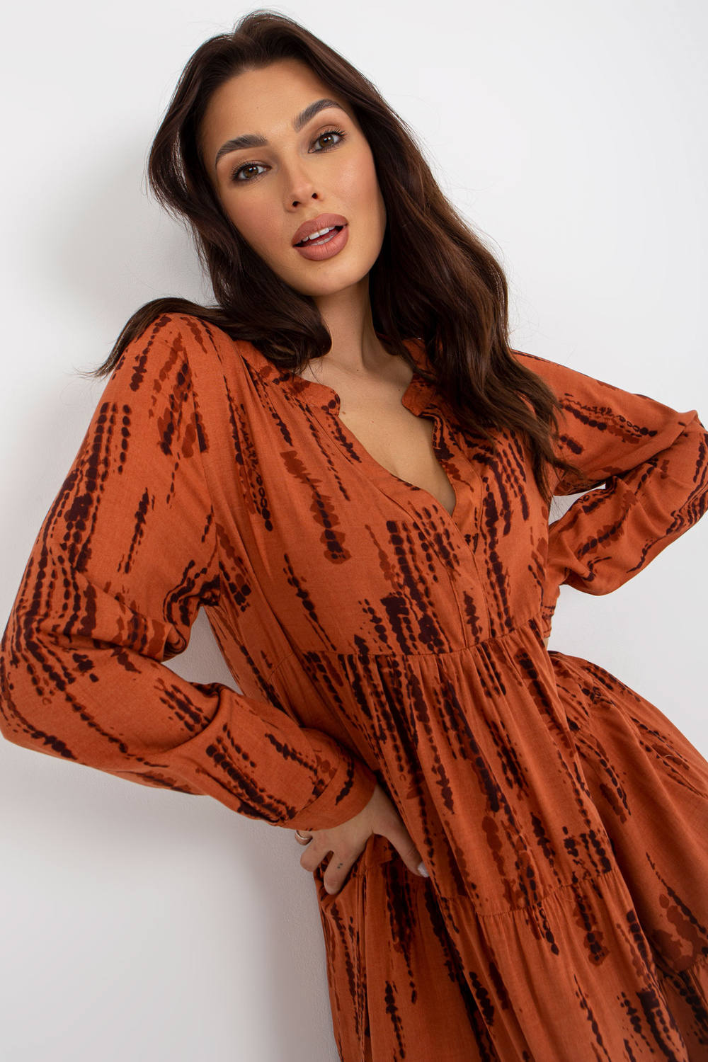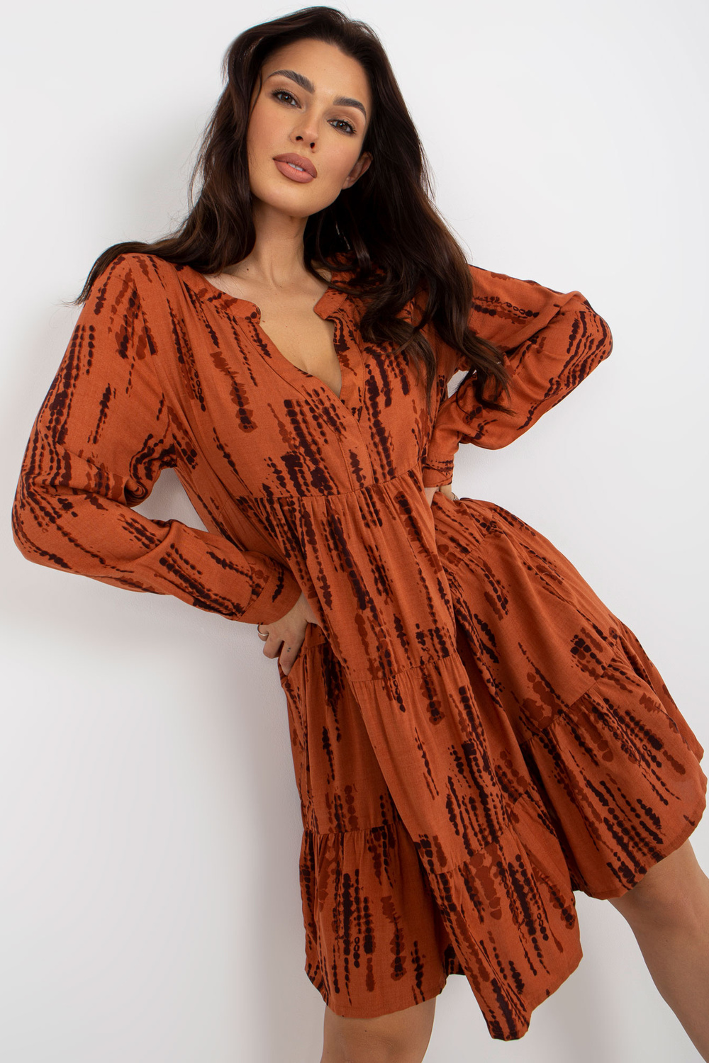 Šviesiai ruda moteriška oversize suknelė su SUBLEVEL raštais strong> .
