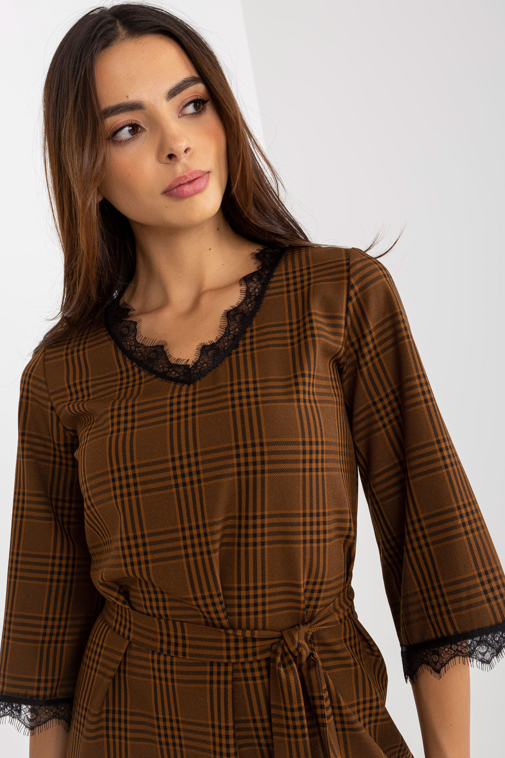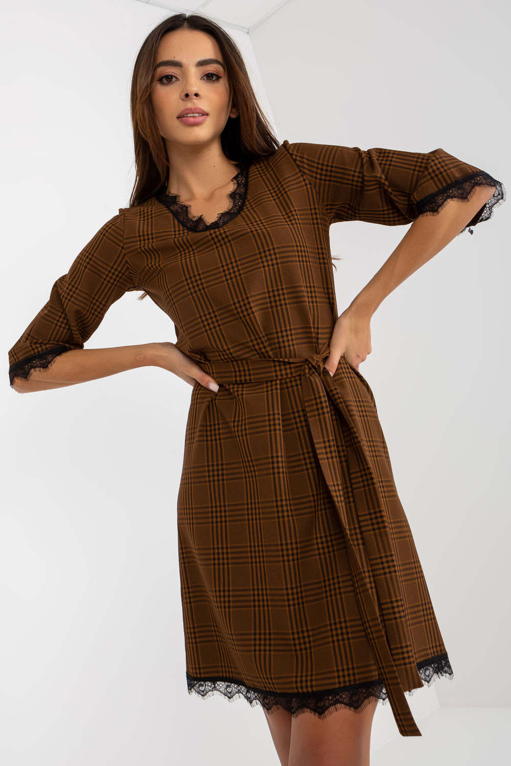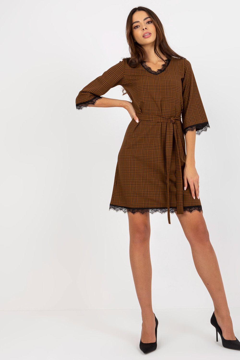 Hellbraunes und schwarzes karjeras Cocktailkleid mit Spitze. Produkto kodas: LK-SK-507871.32P dominuojantis Turinys: Rankgitter Stilius: Elegantiškas Anlass: ungezwungen, für die Arbeit, für ein Date, für ein offizielles Treffen Model Größe 36. Maße des Models: Höhe