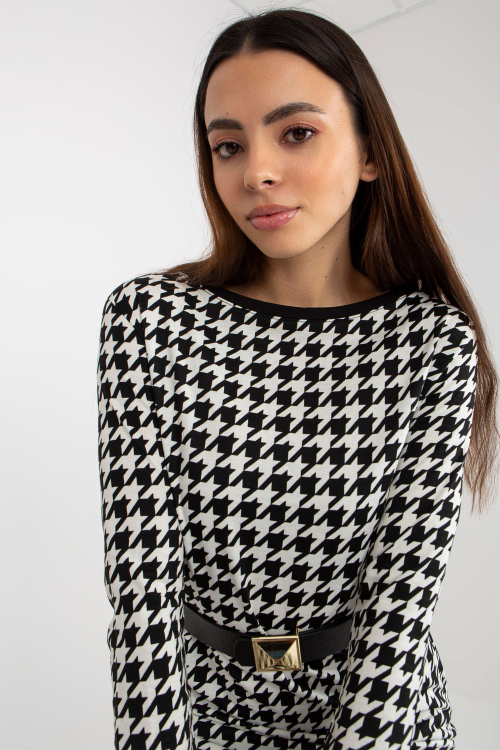 Juoda ir balta elegantiška kokteilinė suknelė su skaliko dantu OCH BELLA.