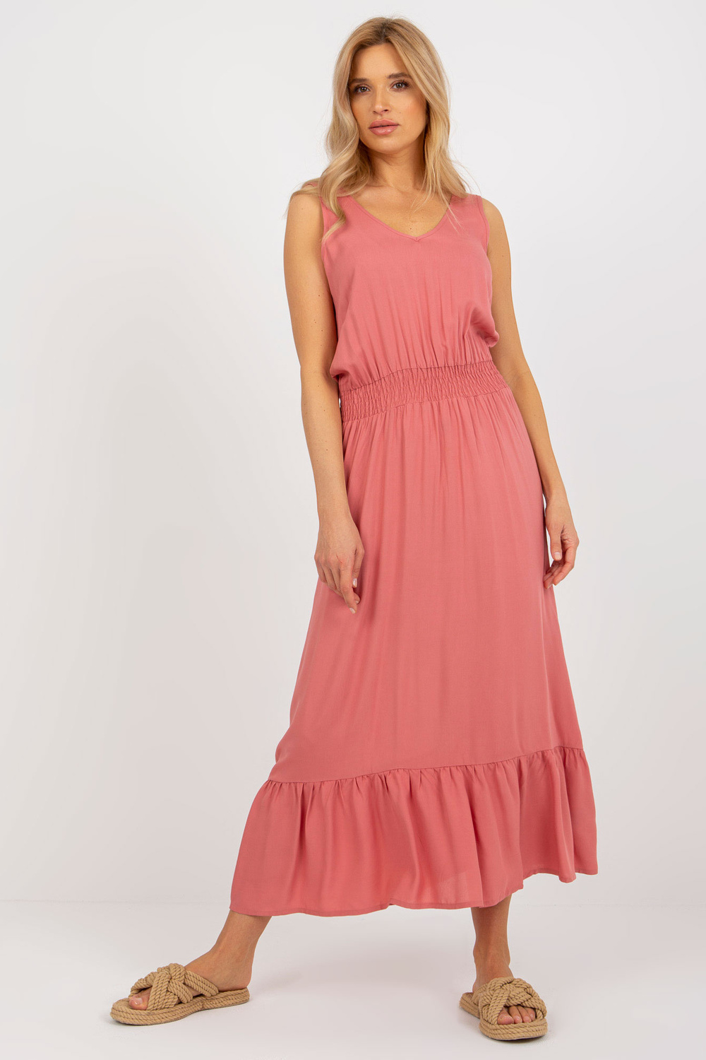 Tamsiai rožinė berankovių pleiskanojanti maksi suknelė FRESH MADE