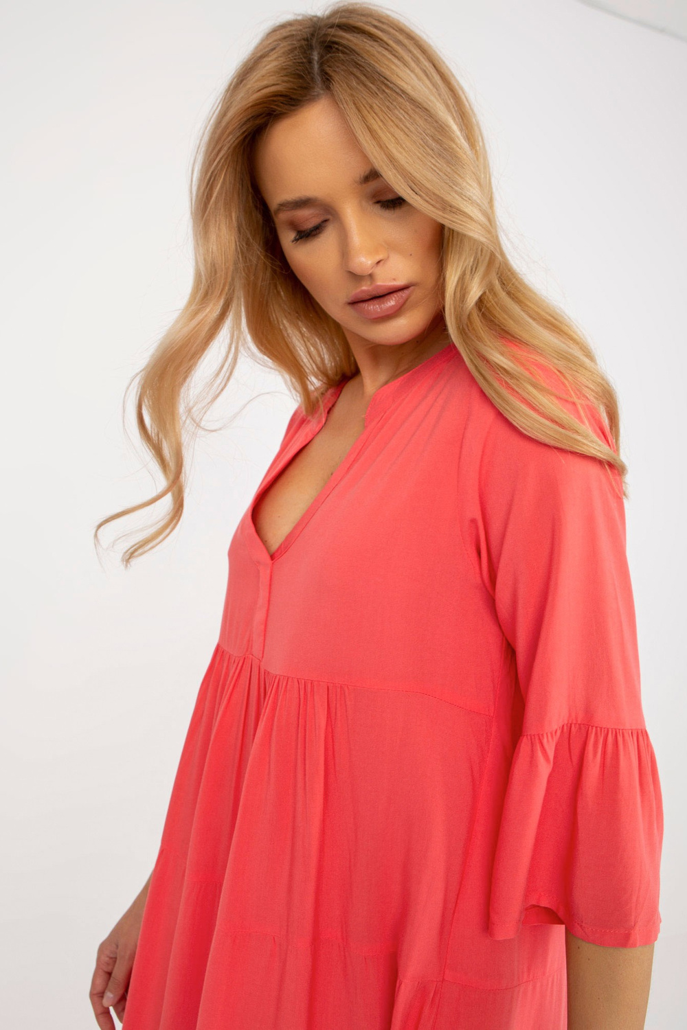 Laisva koralinė suknelė su 3/4 rankovėmis SUBLEVEL