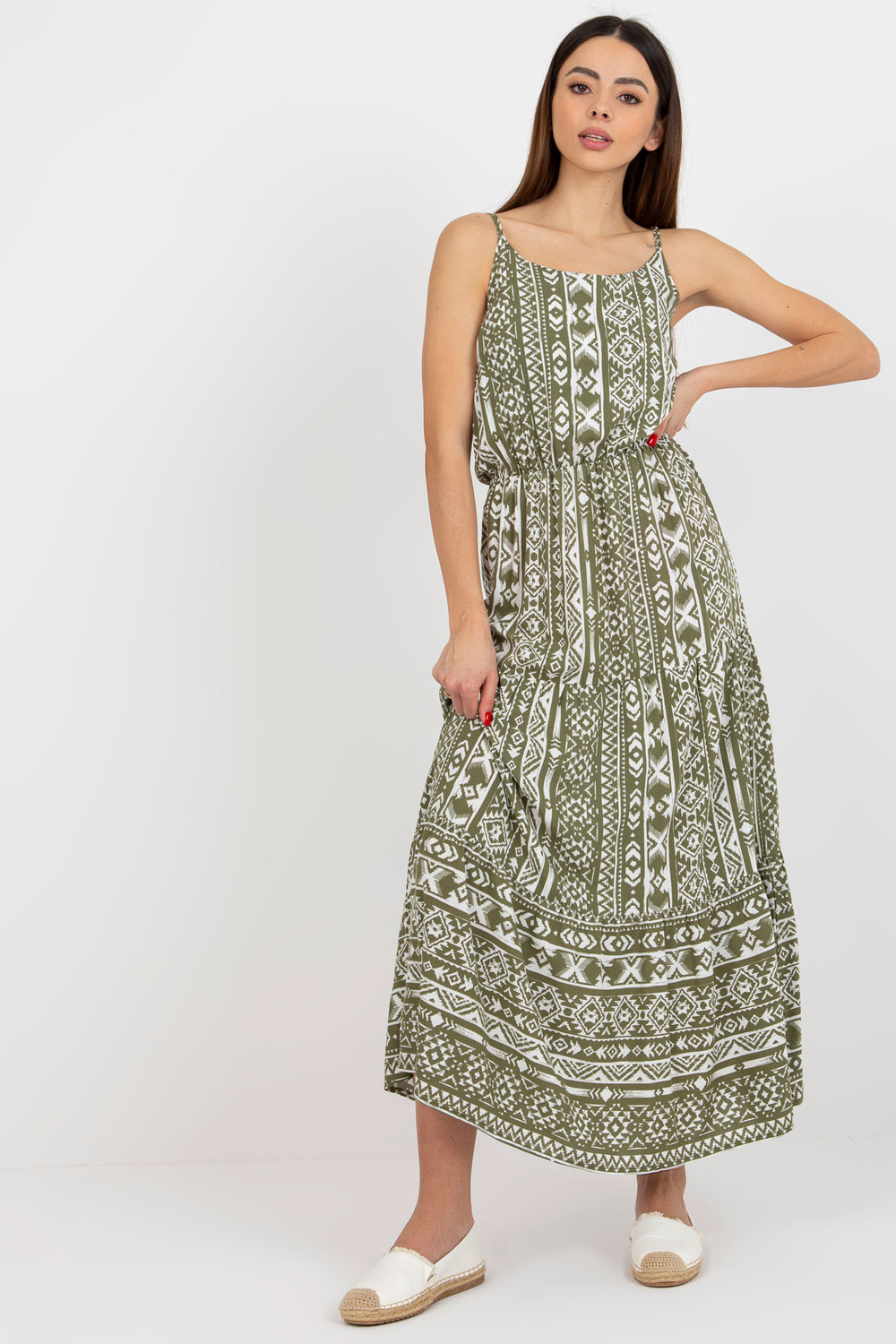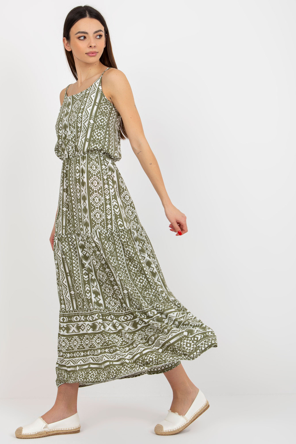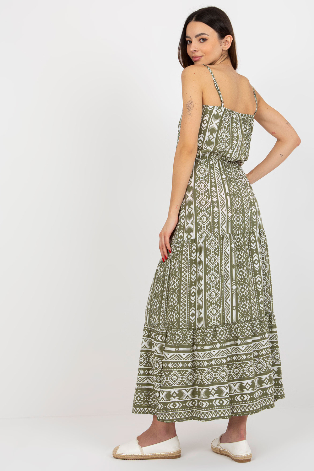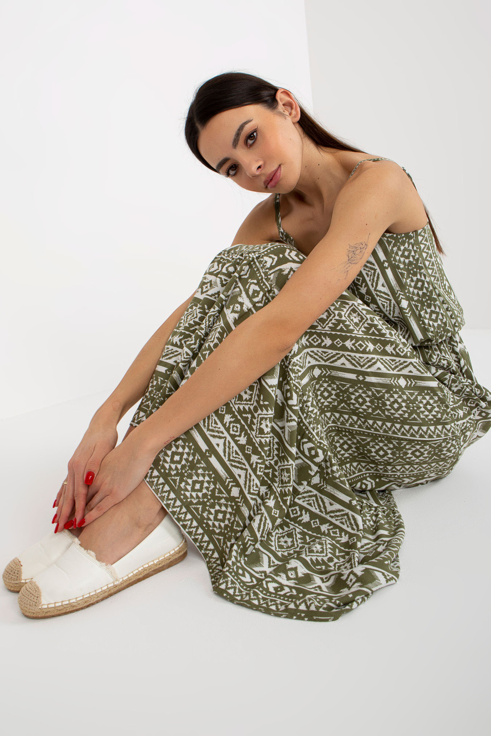 Khaki spalvos maksi suknelė su pūkuotais raštais SUBLEVEL