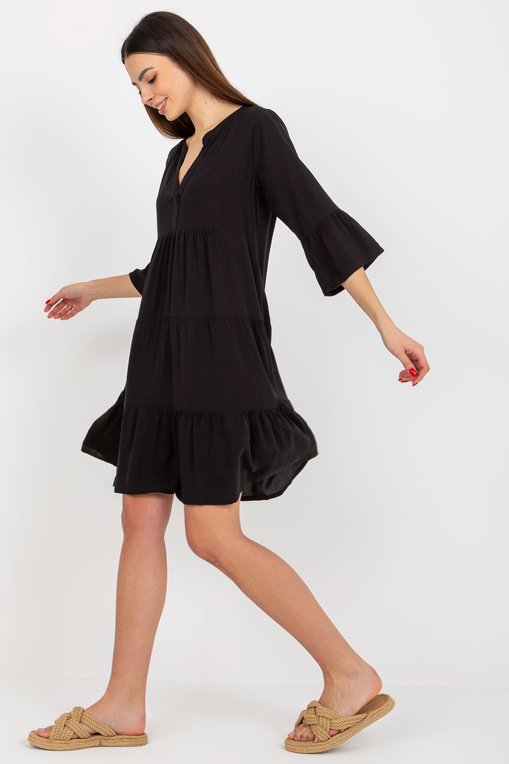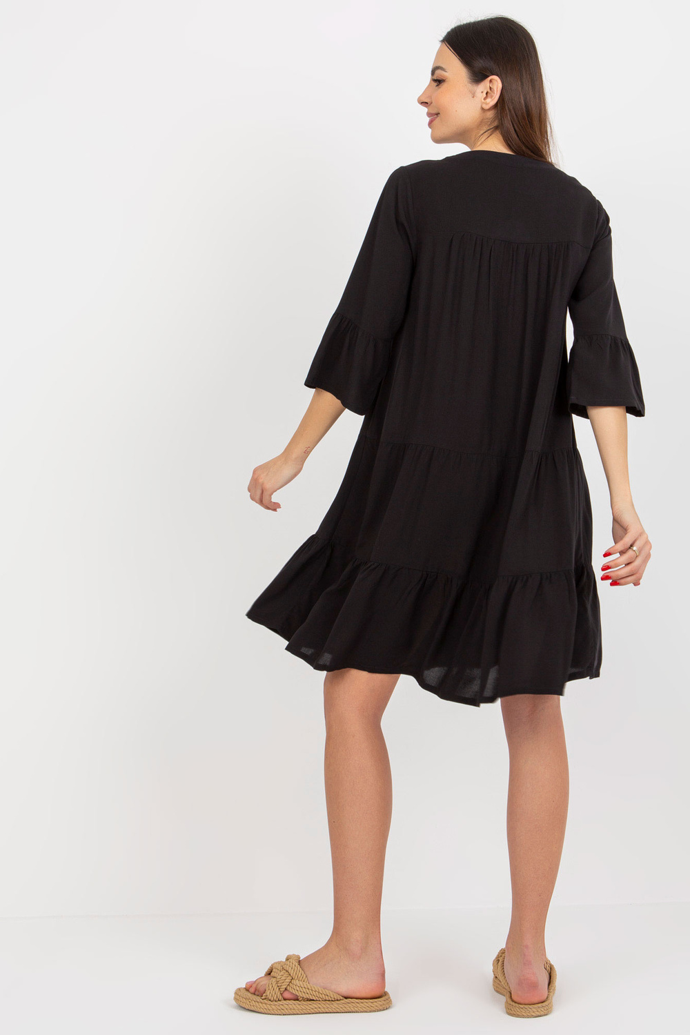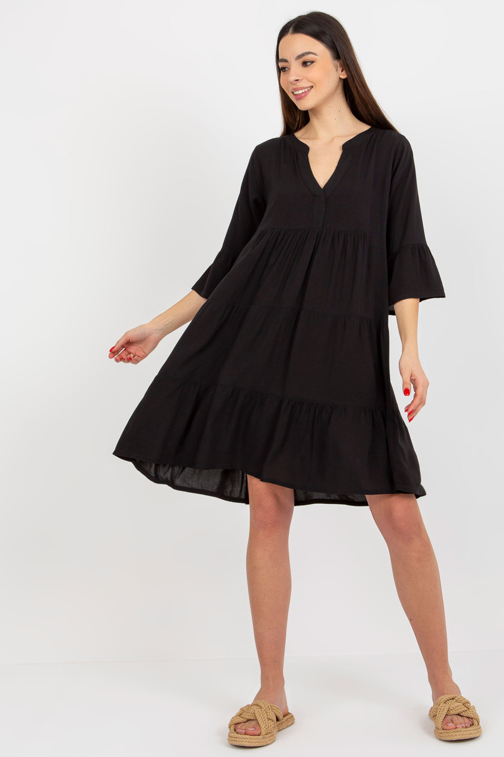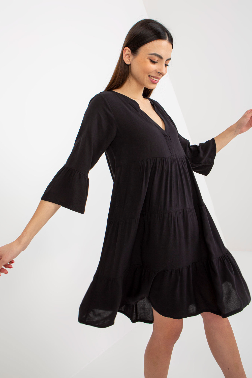 Juoda laisva suknelė su raukiniais ir 3/4 rankovėmis SUBLEVEL