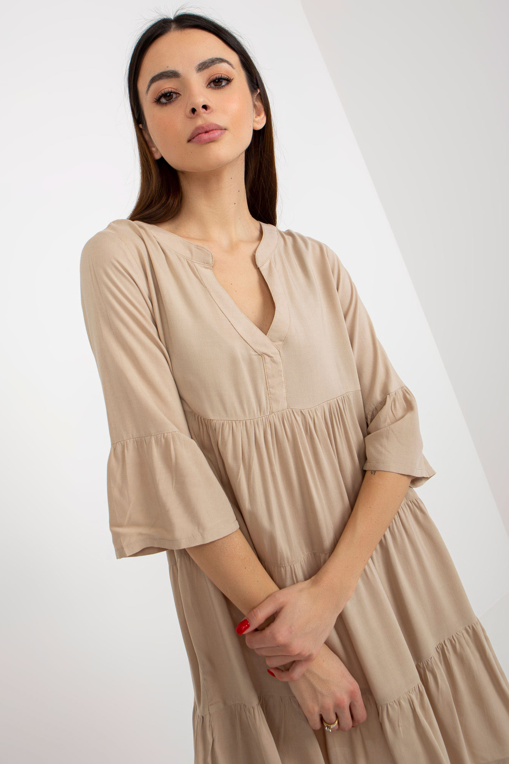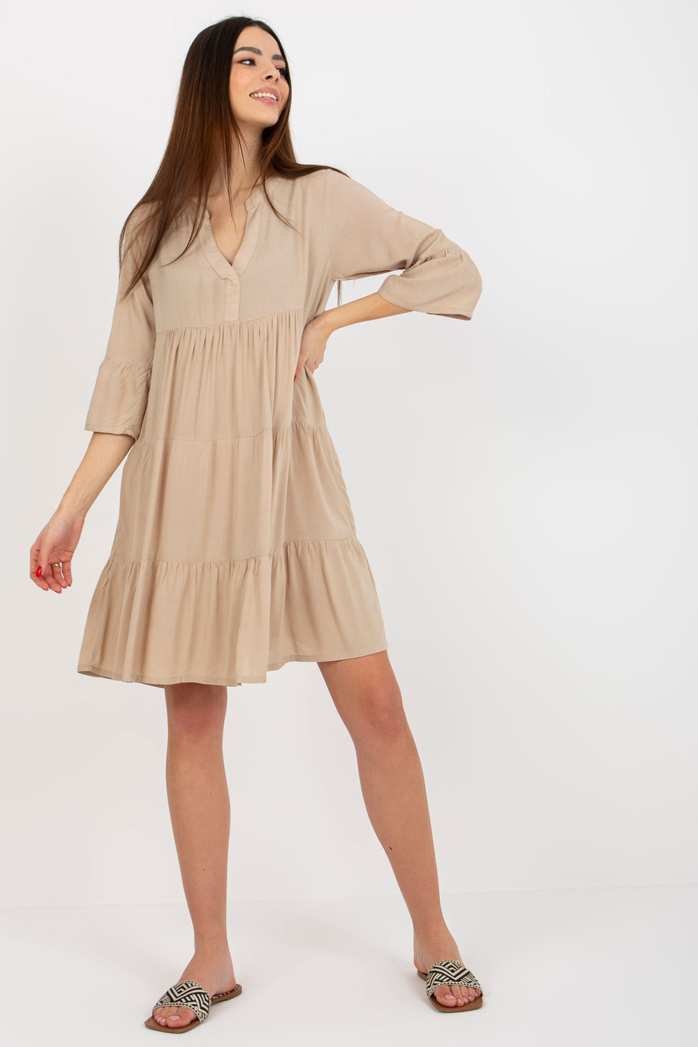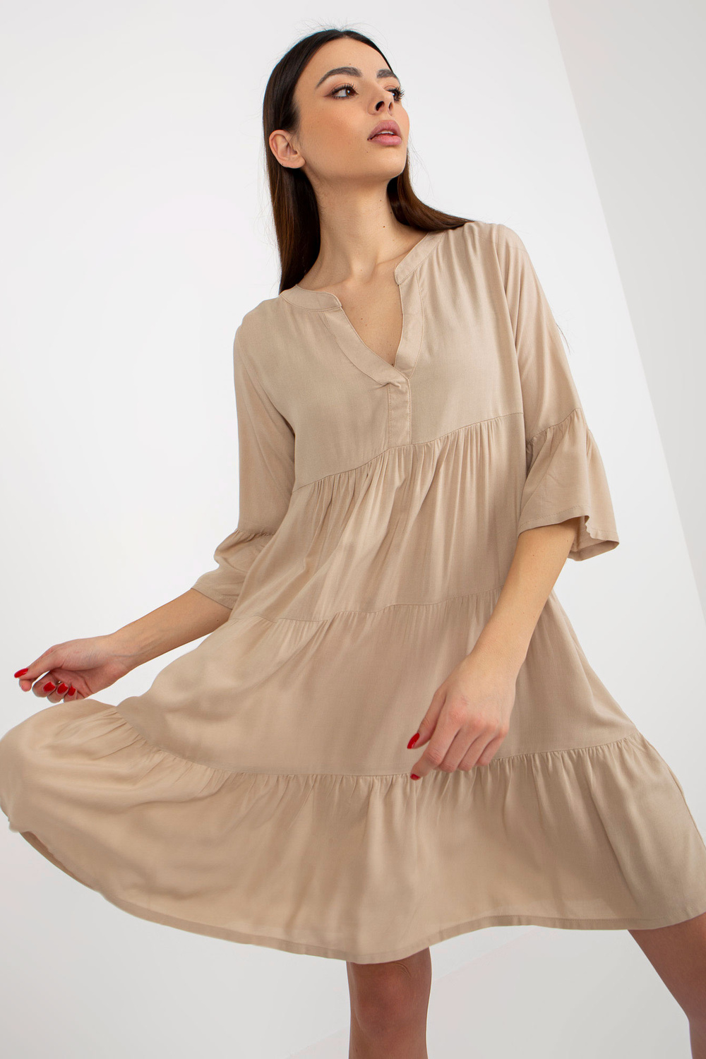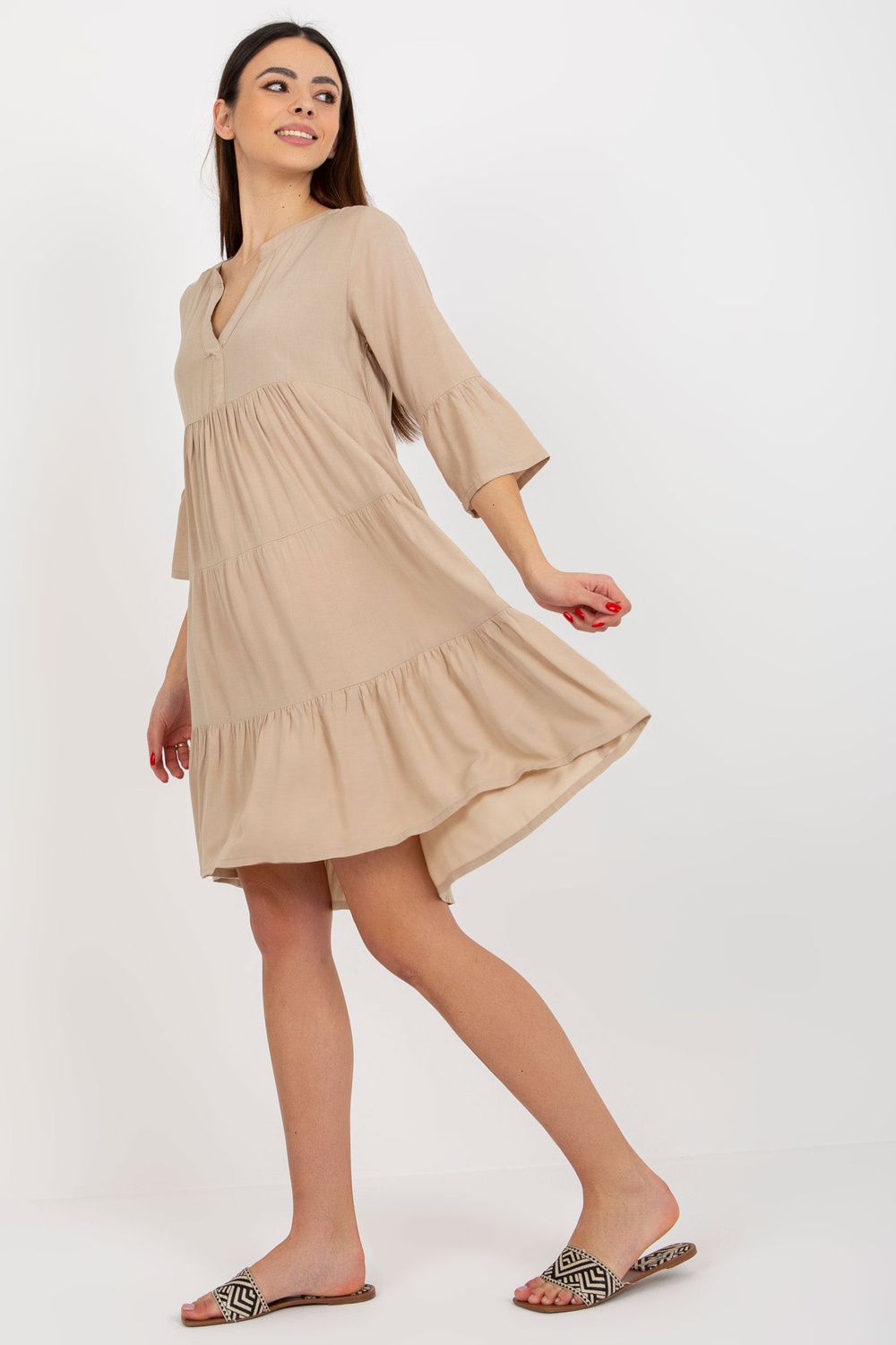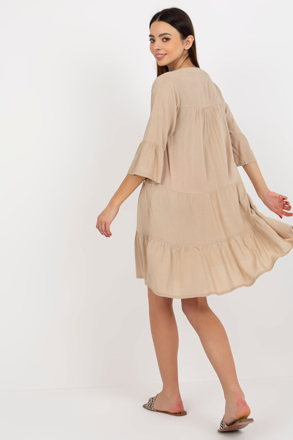 Smėlio spalvos vasarinė suknelė su pūkuotu su oversize kirpimu SUBLEVEL