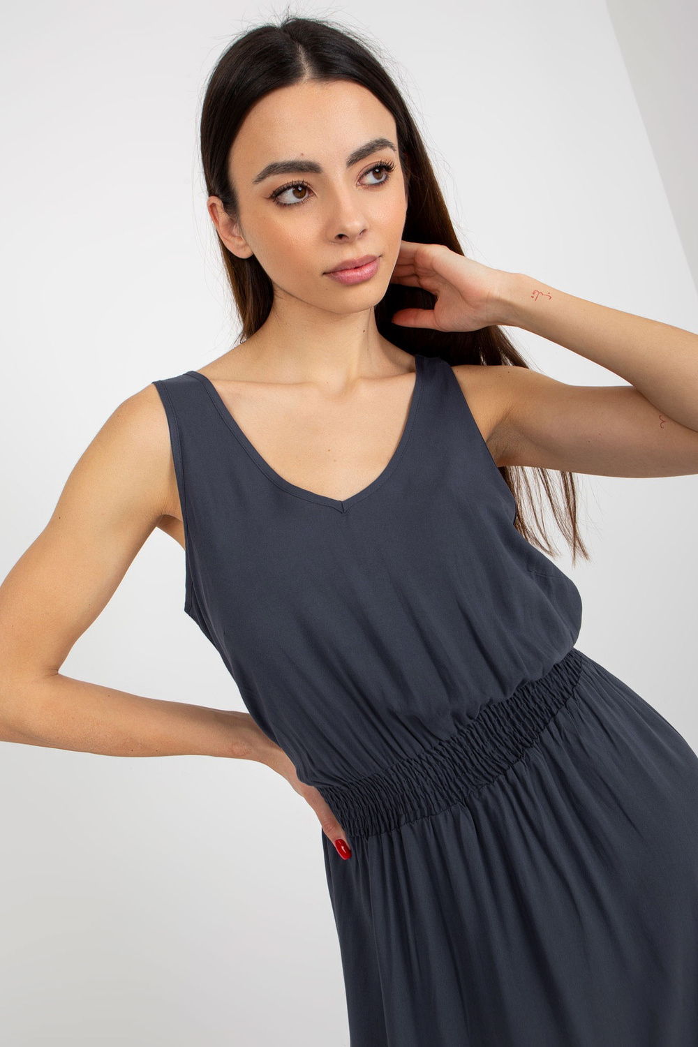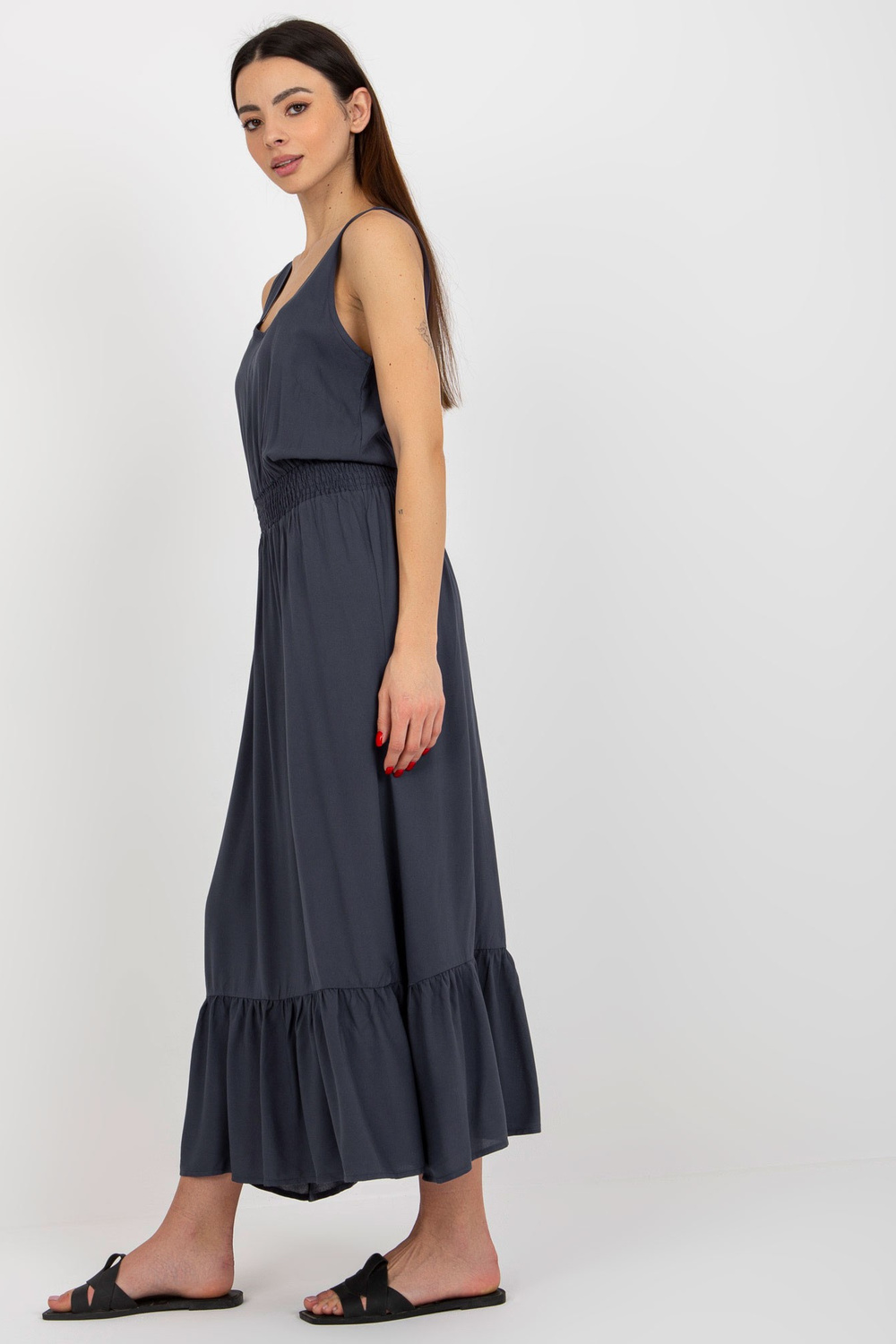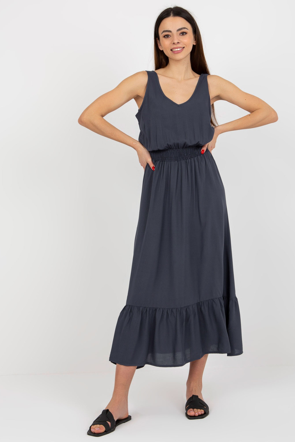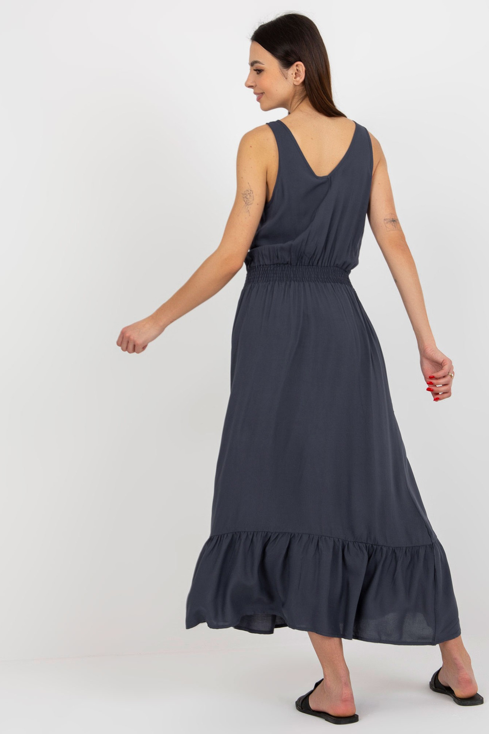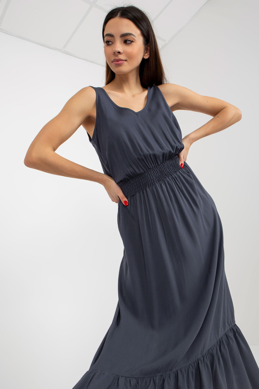 Tamsiai mėlyna maksi suknelė su raukinukais ir elastine juostele FRESH MADE