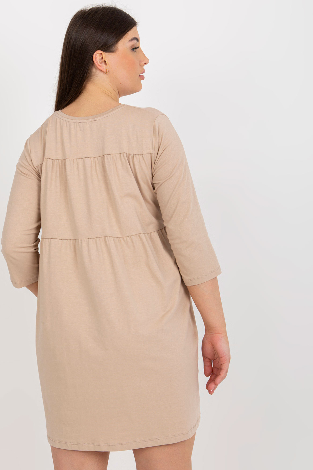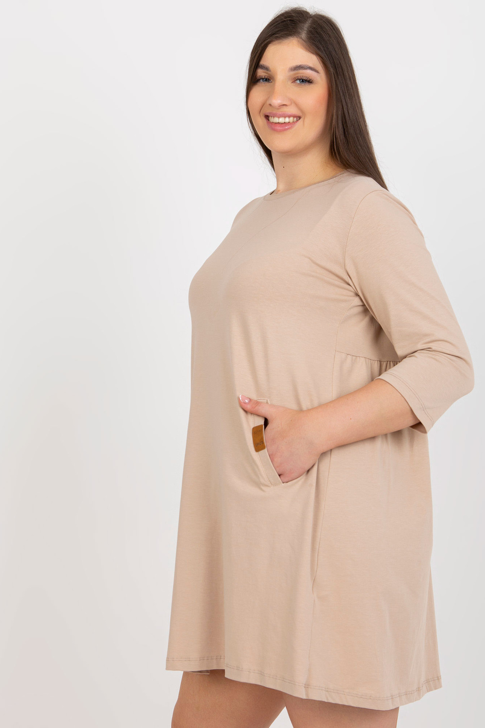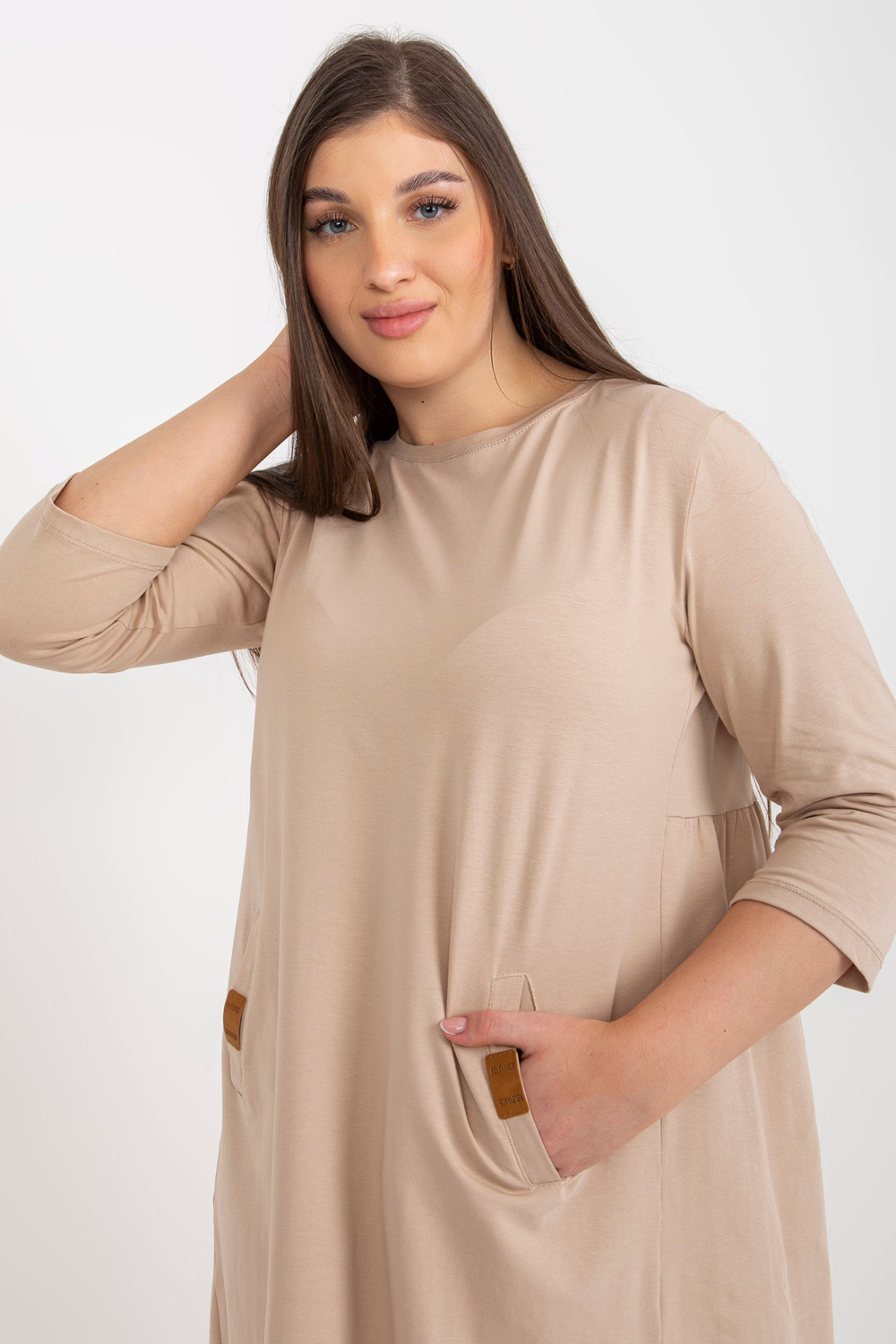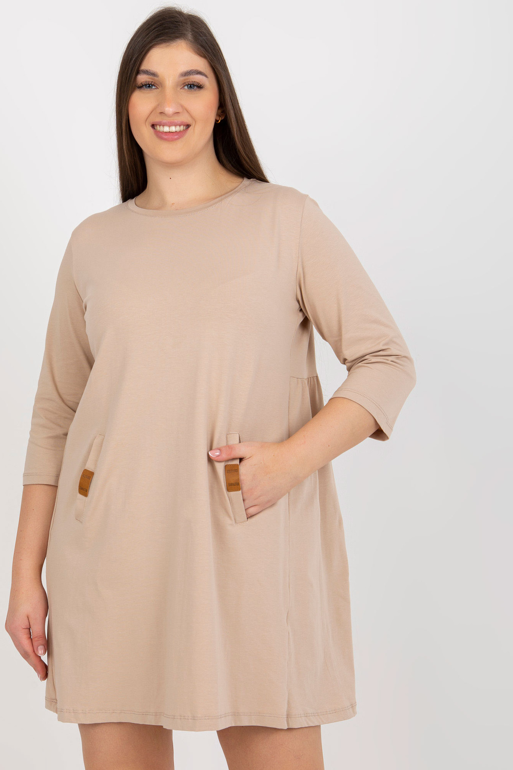 Tamsiai smėlio spalvos mini plius dydžio suknelė su Dalenne kišenėmis.