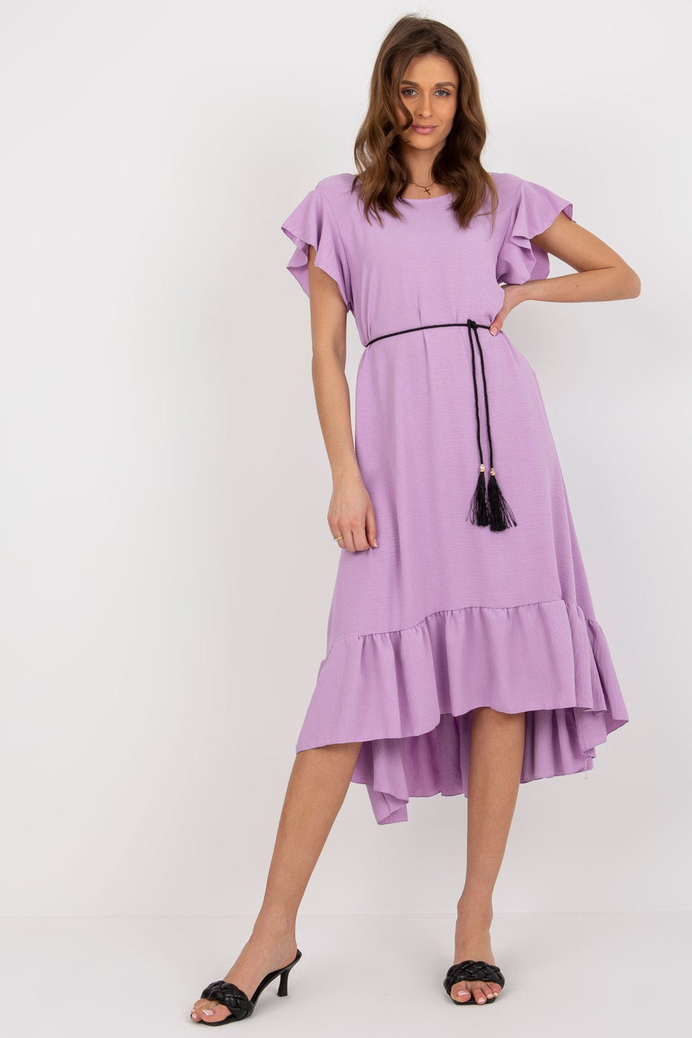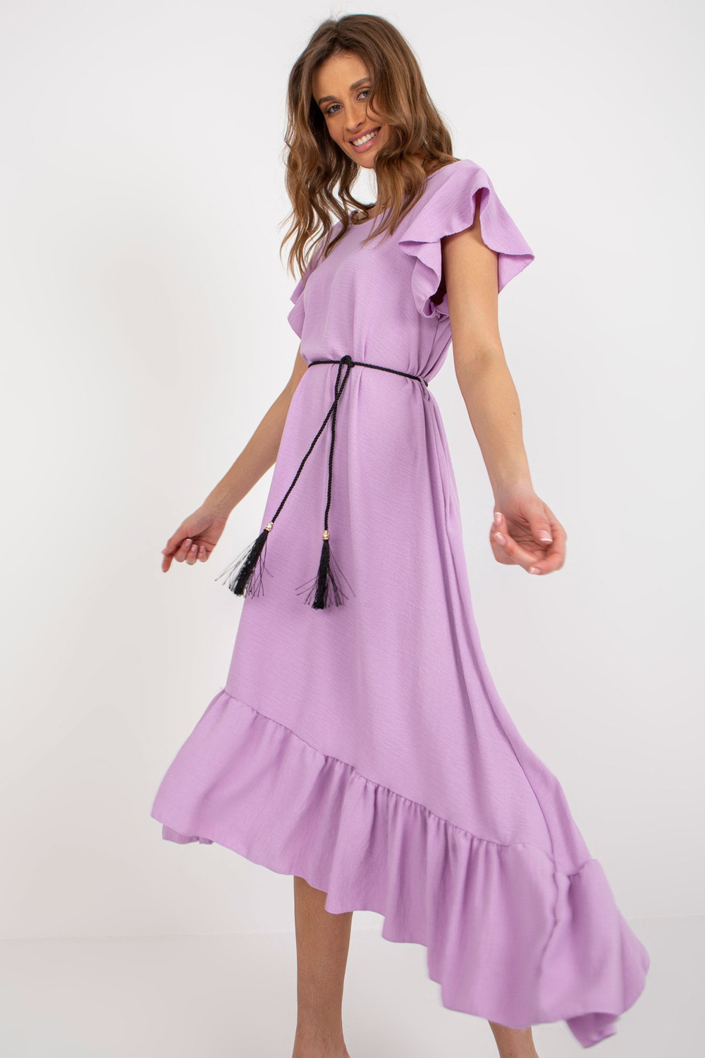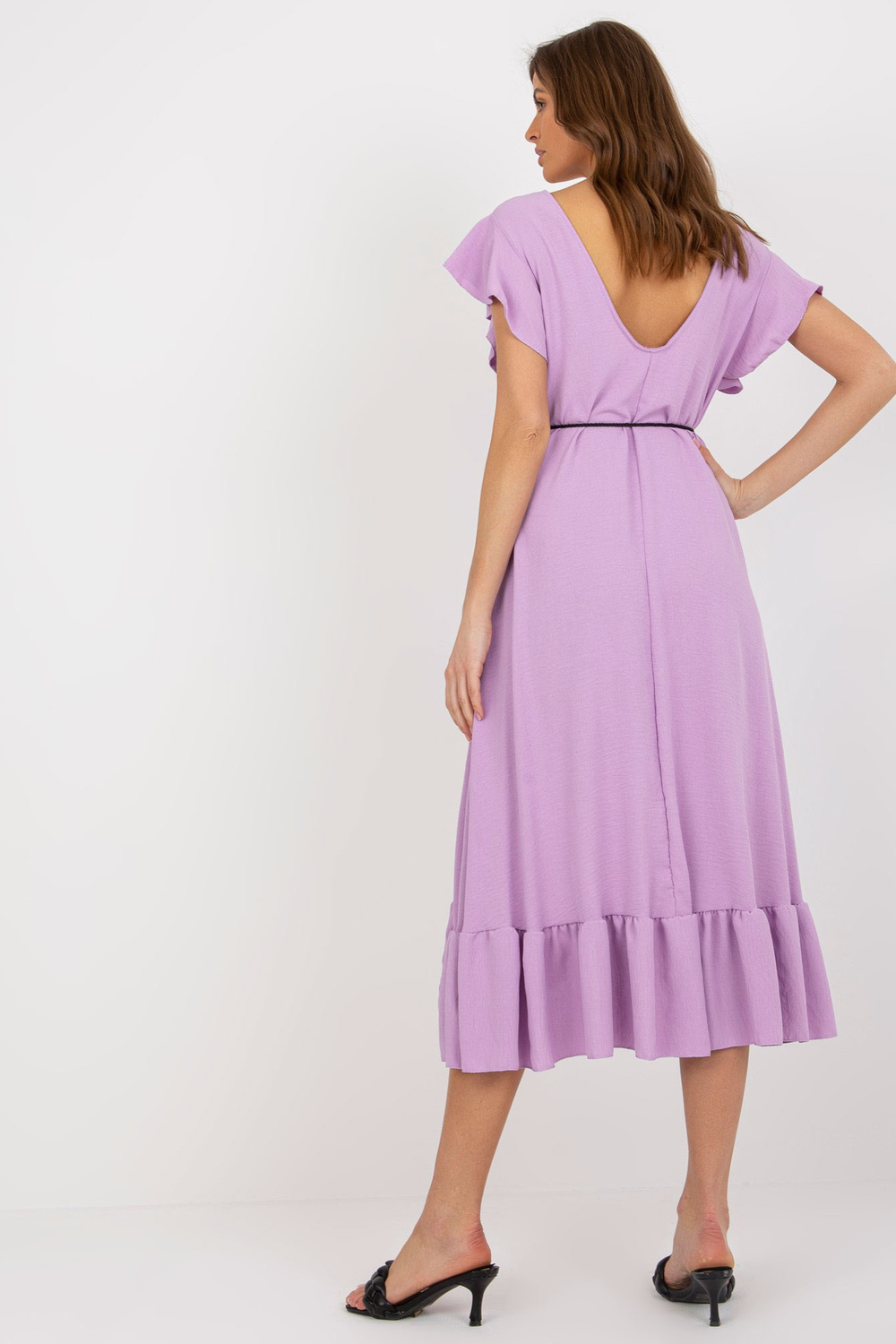 Šviesiai violetinė midi suknelė su plaukuotumu ir kutais.