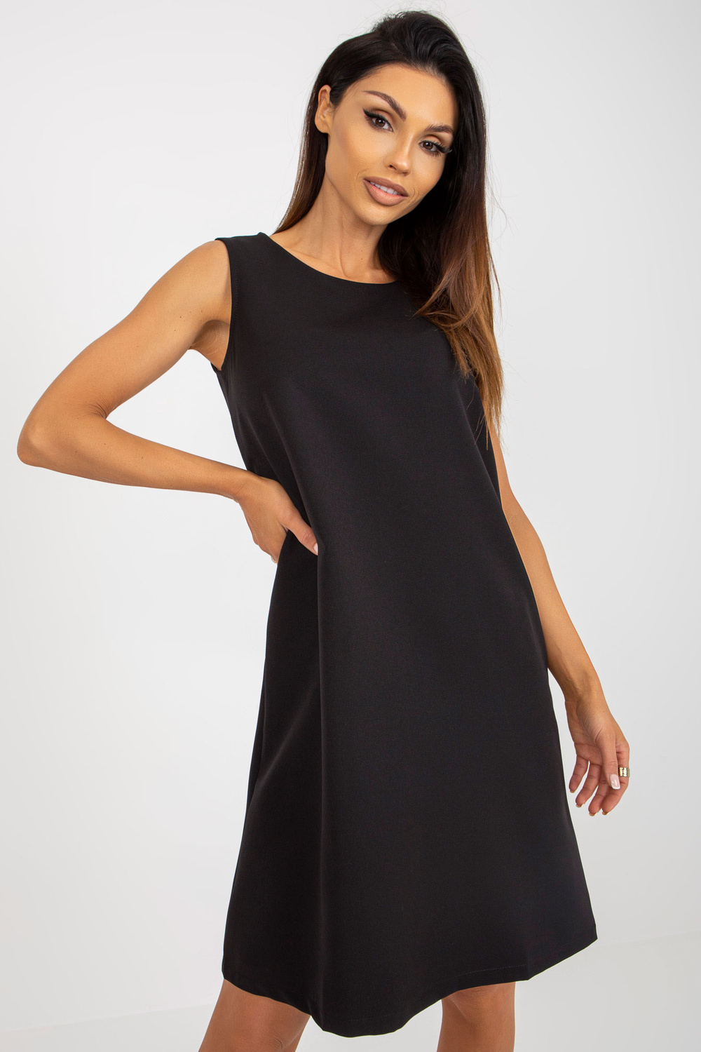 Juoda kokteilinė suknelė su apvalia iškirpte OCH BELLA.
