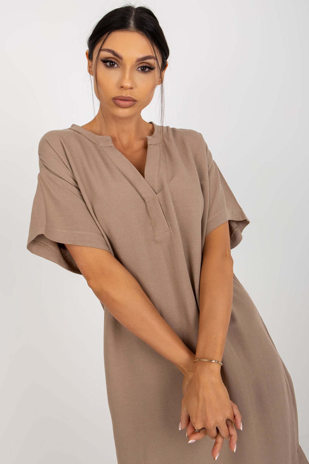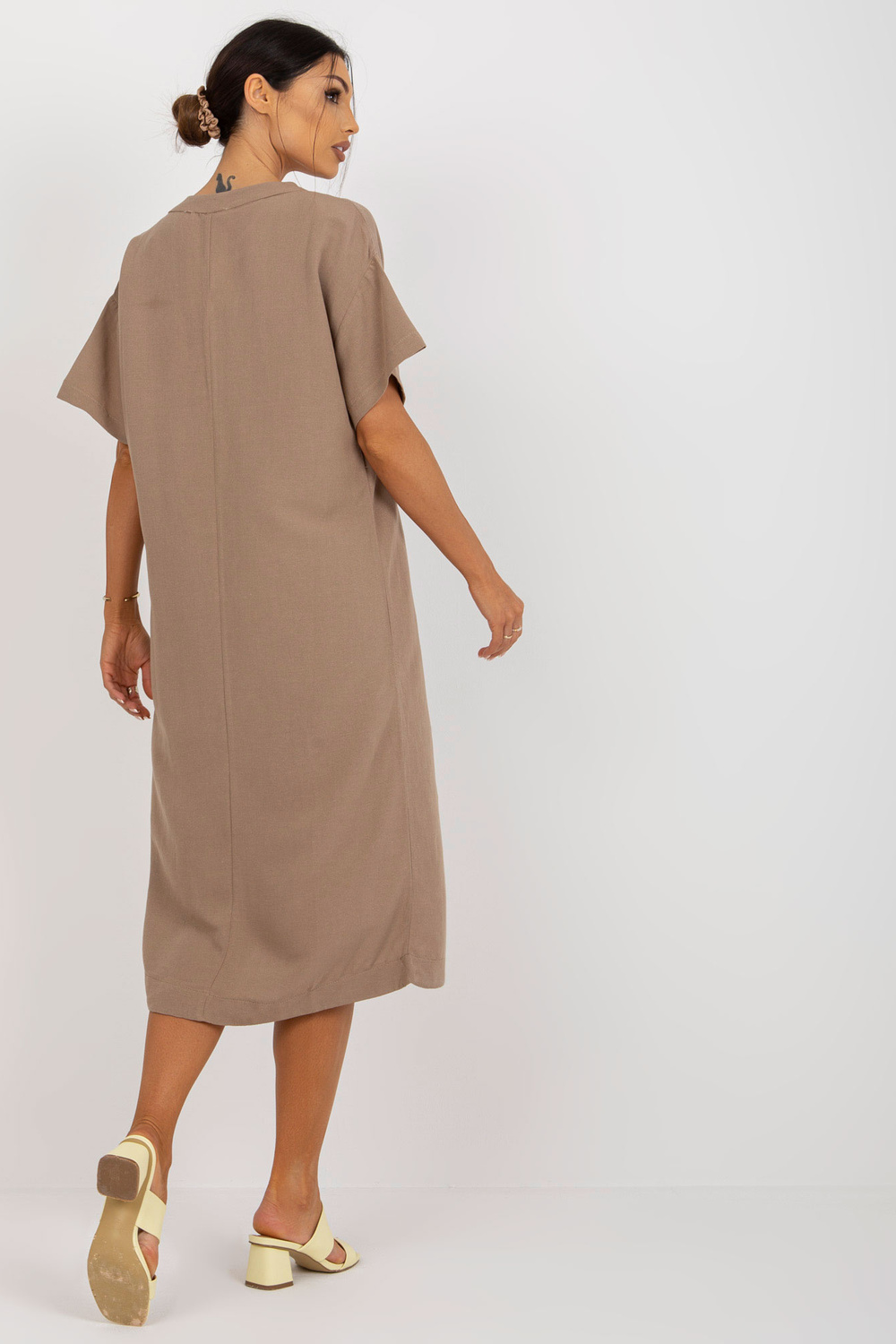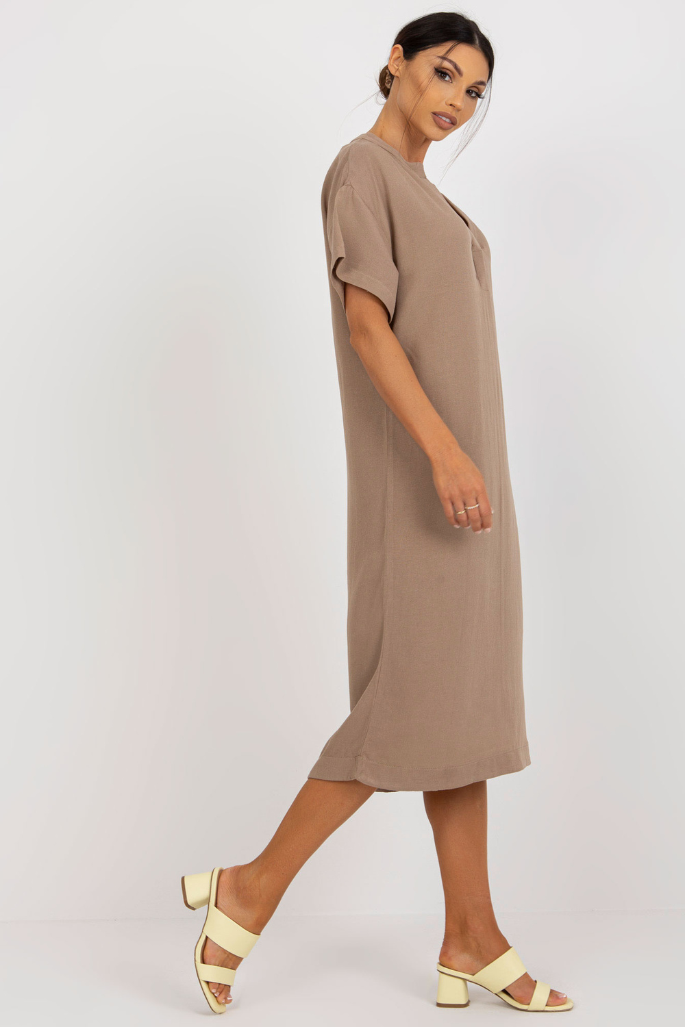 Tamsiai smėlio spalvos marškinė suknelė trumpomis rankovėmis OCH BELLA.