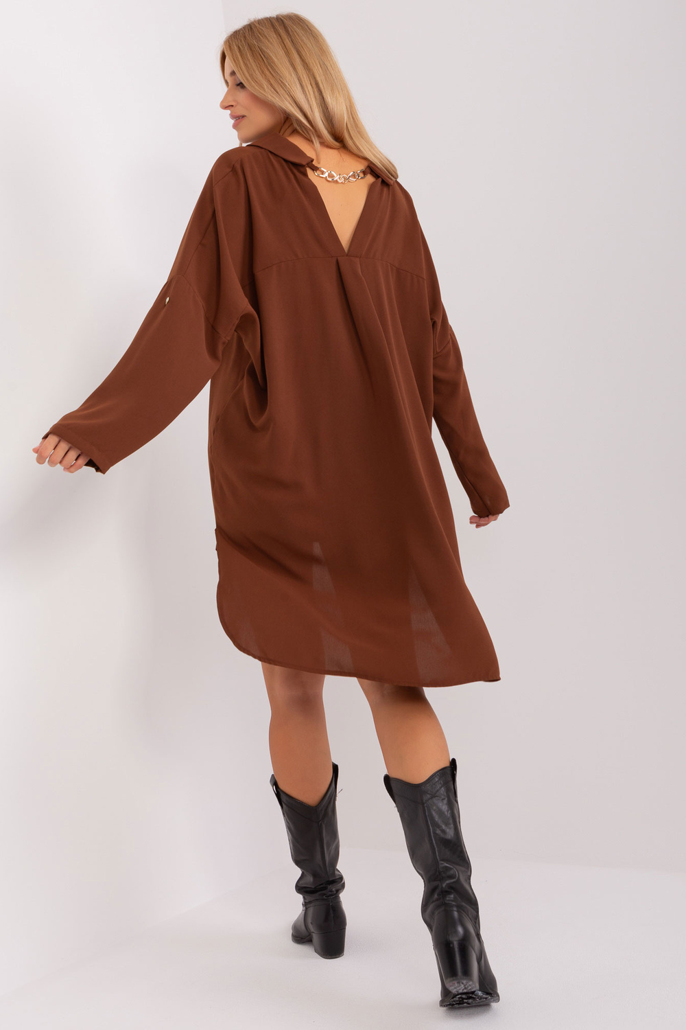 Suknelės matmenys vieno dydžio, matuojamas plokščias: plotis po pažastimis - 73 cm, visas ilgis - 95 cm, rankovių ilgis - 60 cm.