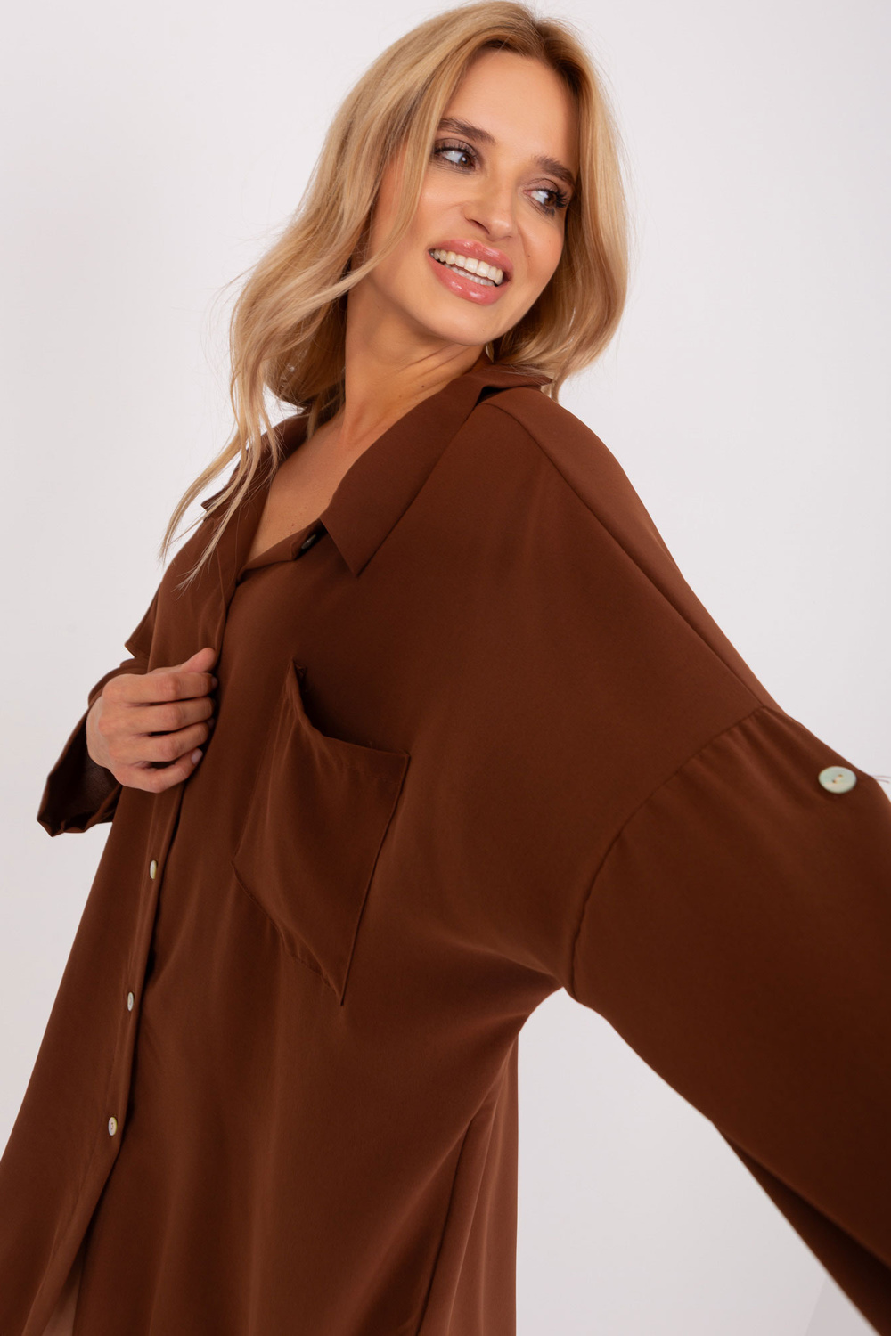 Modelis dėvi vieno dydžio dydį. Modelio išmatavimai: ūgis 175 cm, krūtinė 90 cm, juosmuo 66 cm, klubai 94 cm.