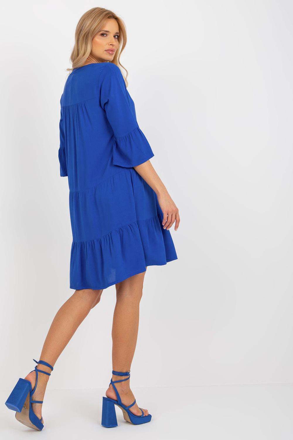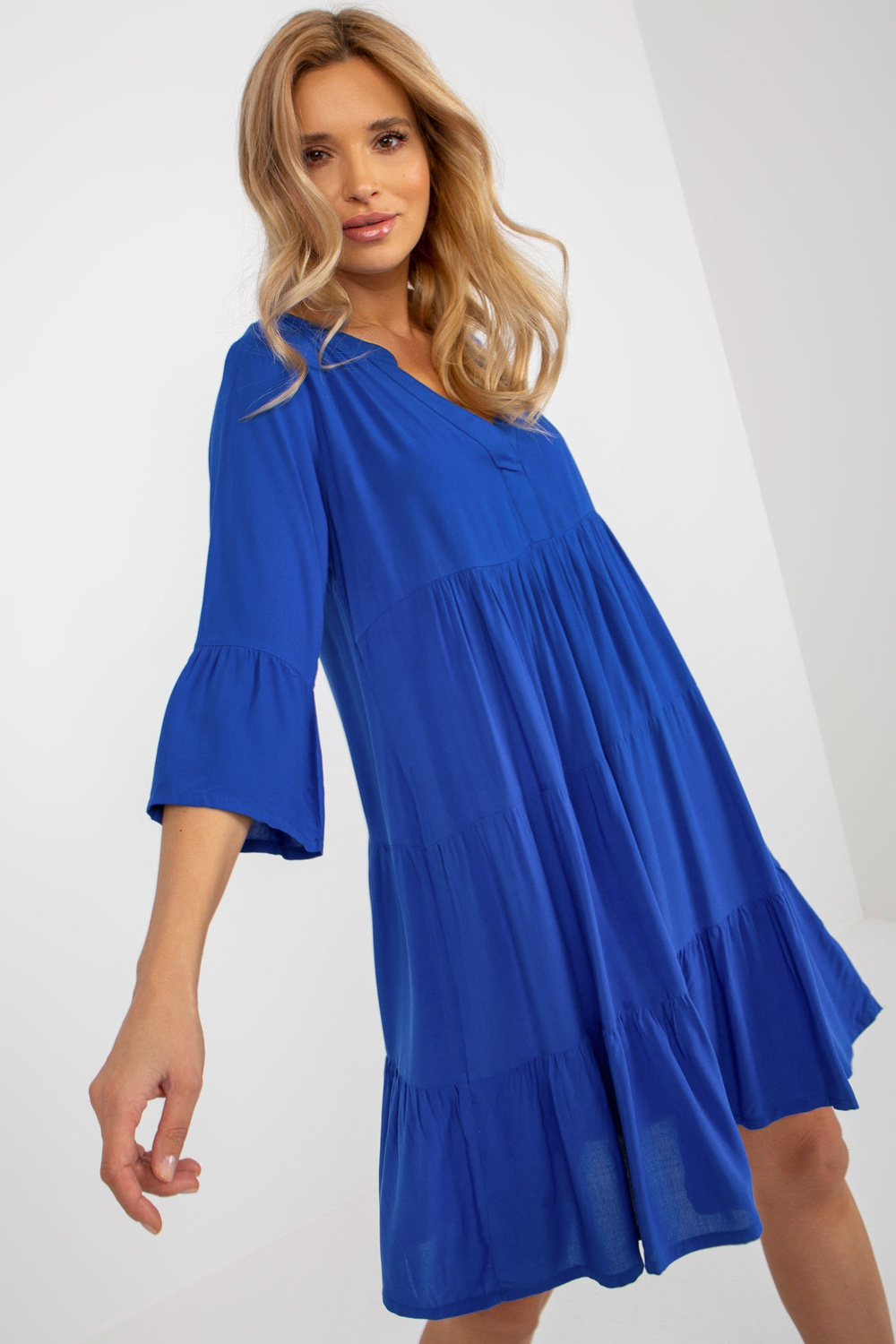 Laisva kobalto suknelė su plaukuotumu ir V iškirpte SUBLEVEL